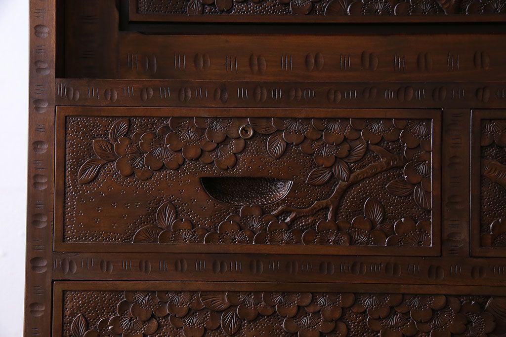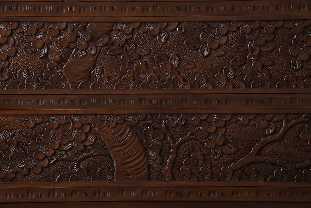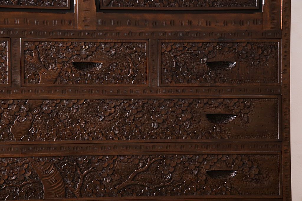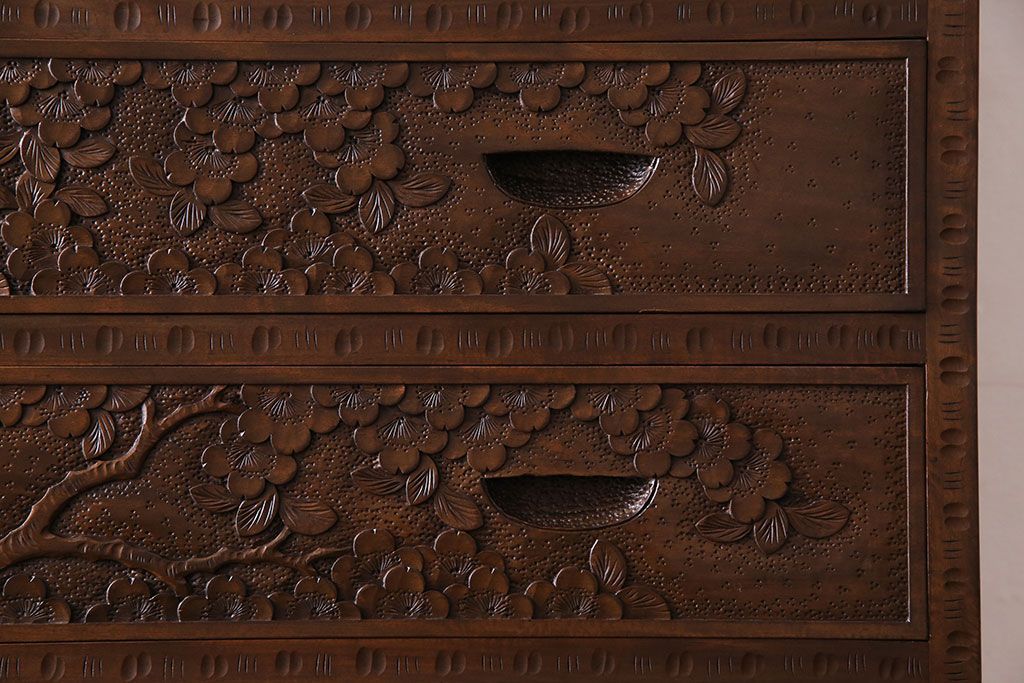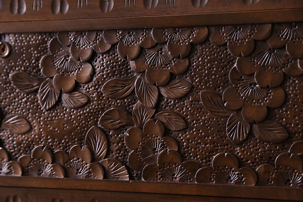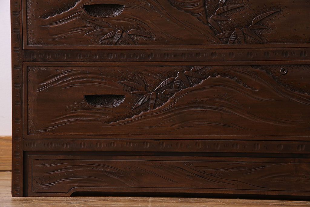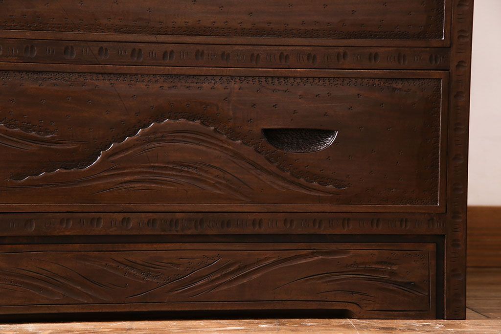 中古 伝統工芸 軽井沢彫り 高級感あふれる大振りな衣装箪笥(収納棚、洋服タンス)