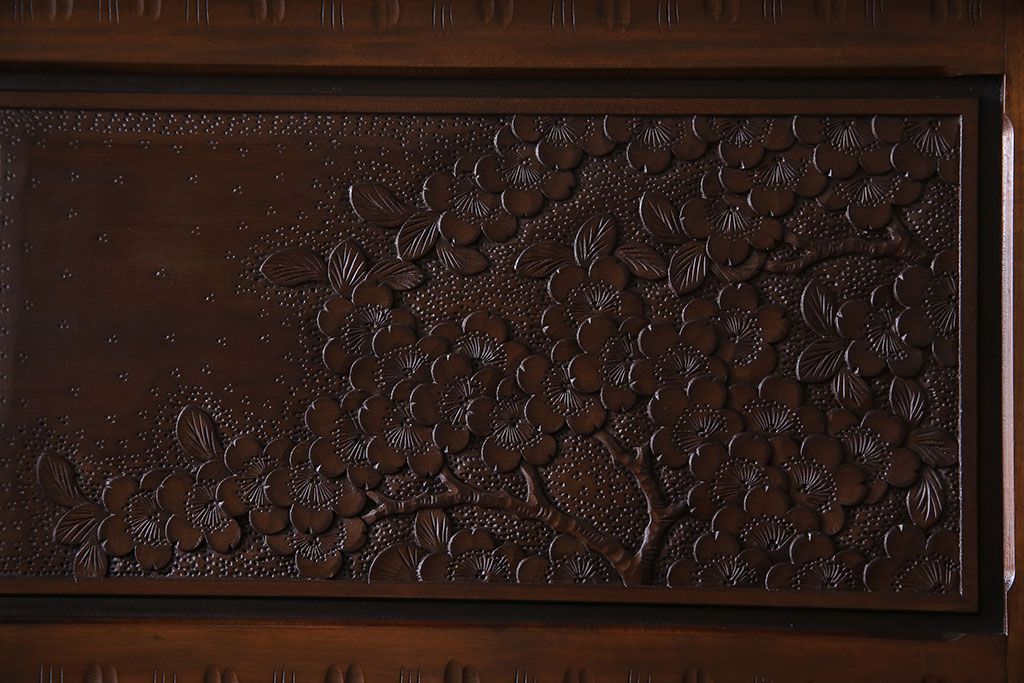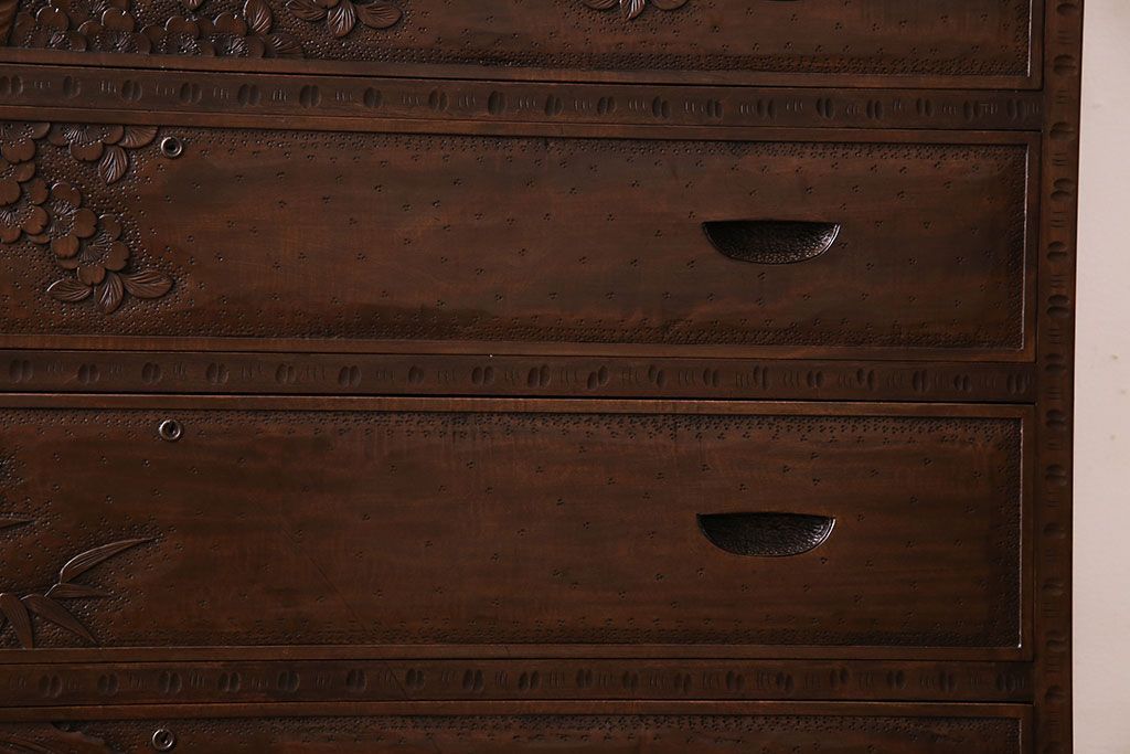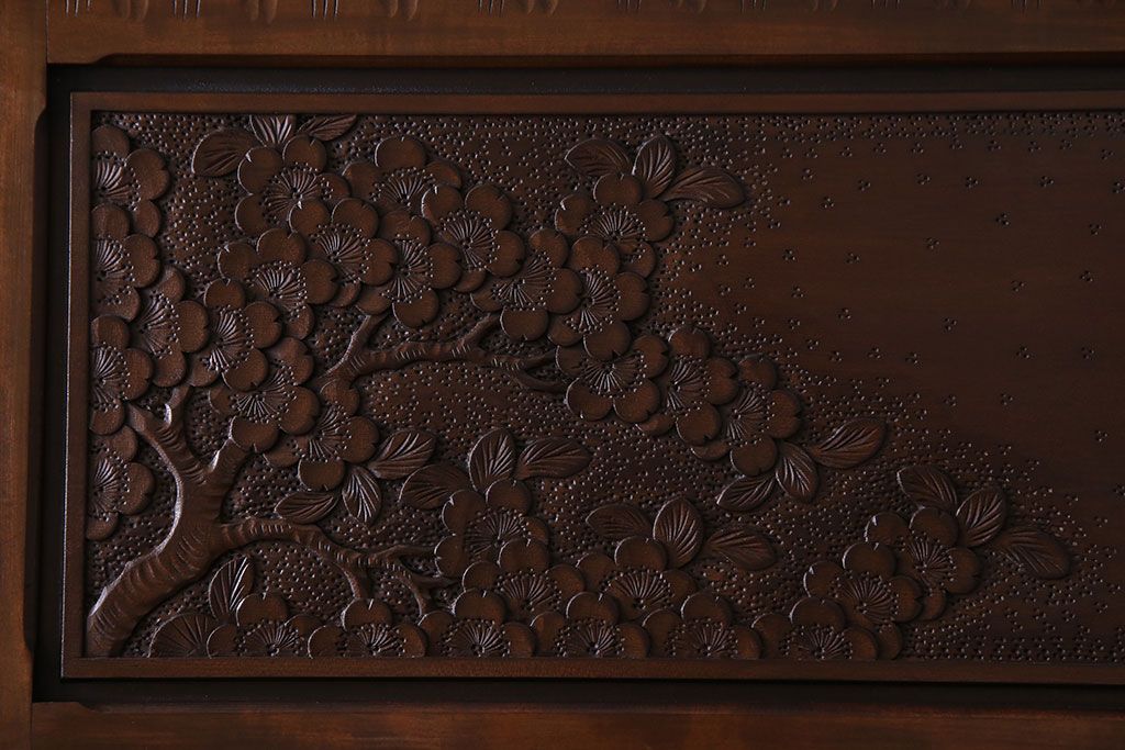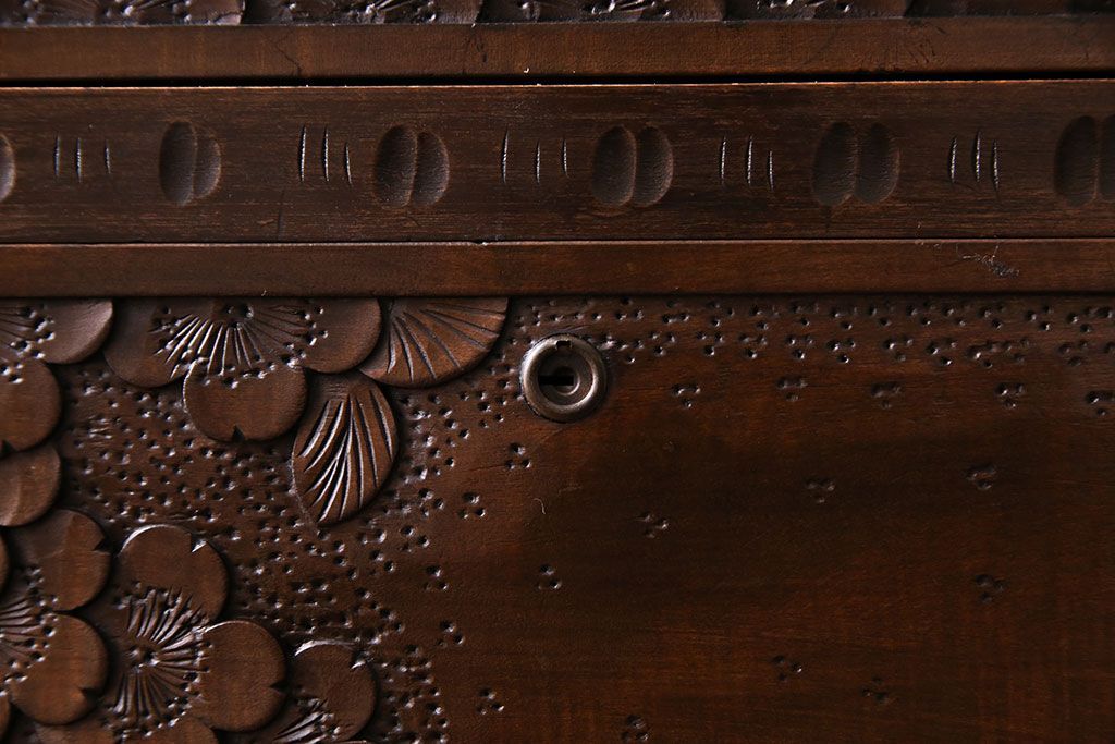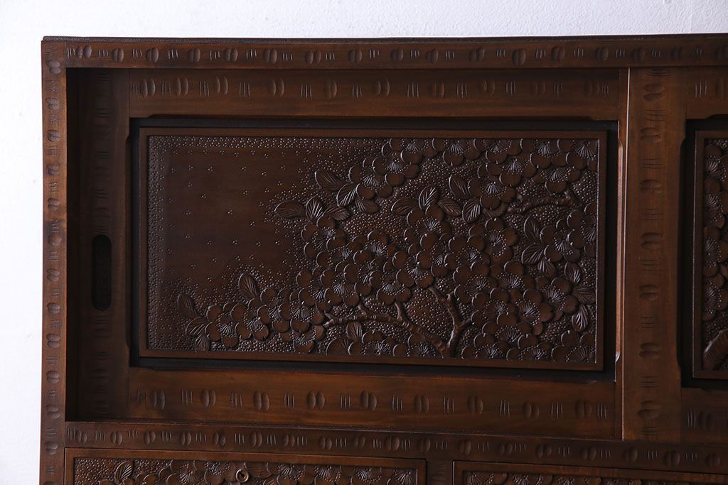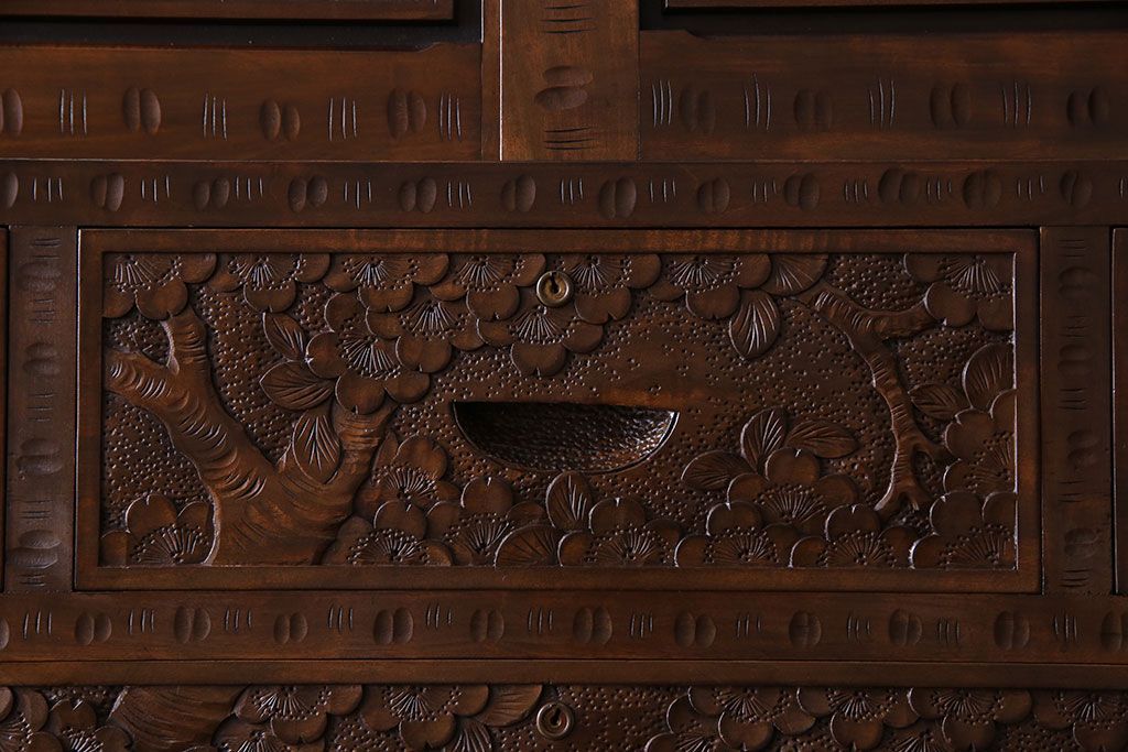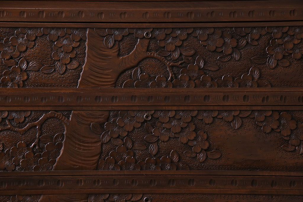 中古 伝統工芸 軽井沢彫り 高級感あふれる大振りな衣装箪笥(収納棚、洋服タンス)