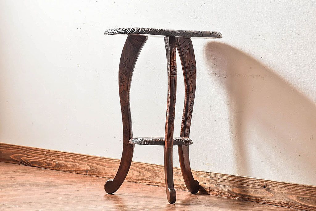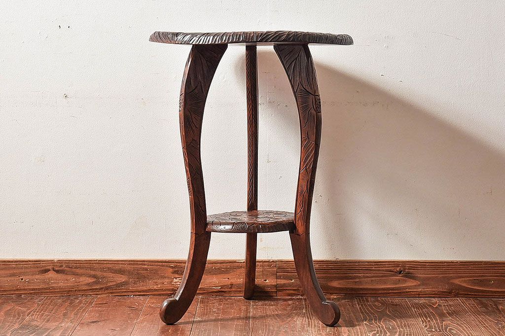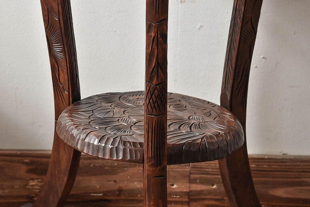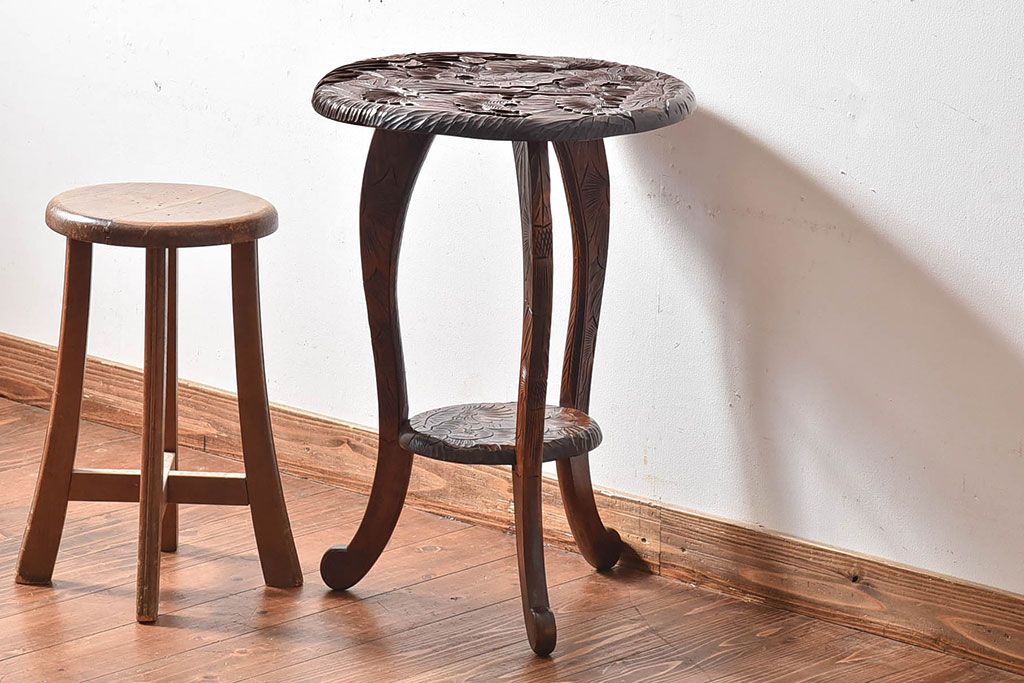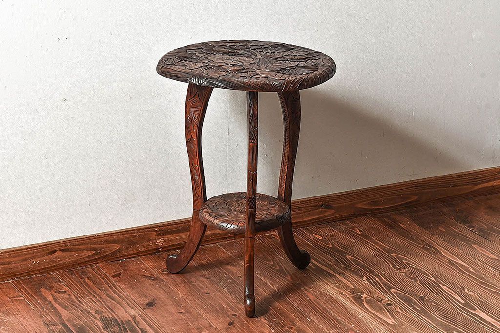 アンティーク雑貨 中古 日光彫りが目を引くサイドテーブル(コーヒーテーブル)