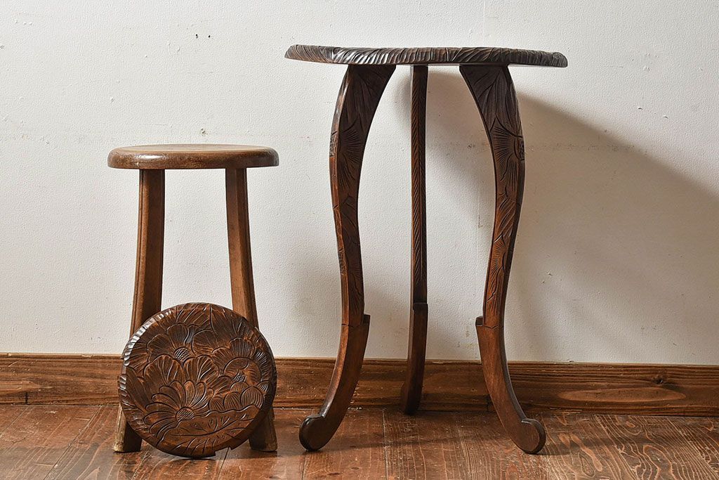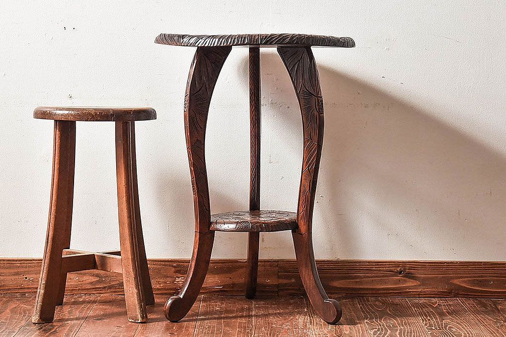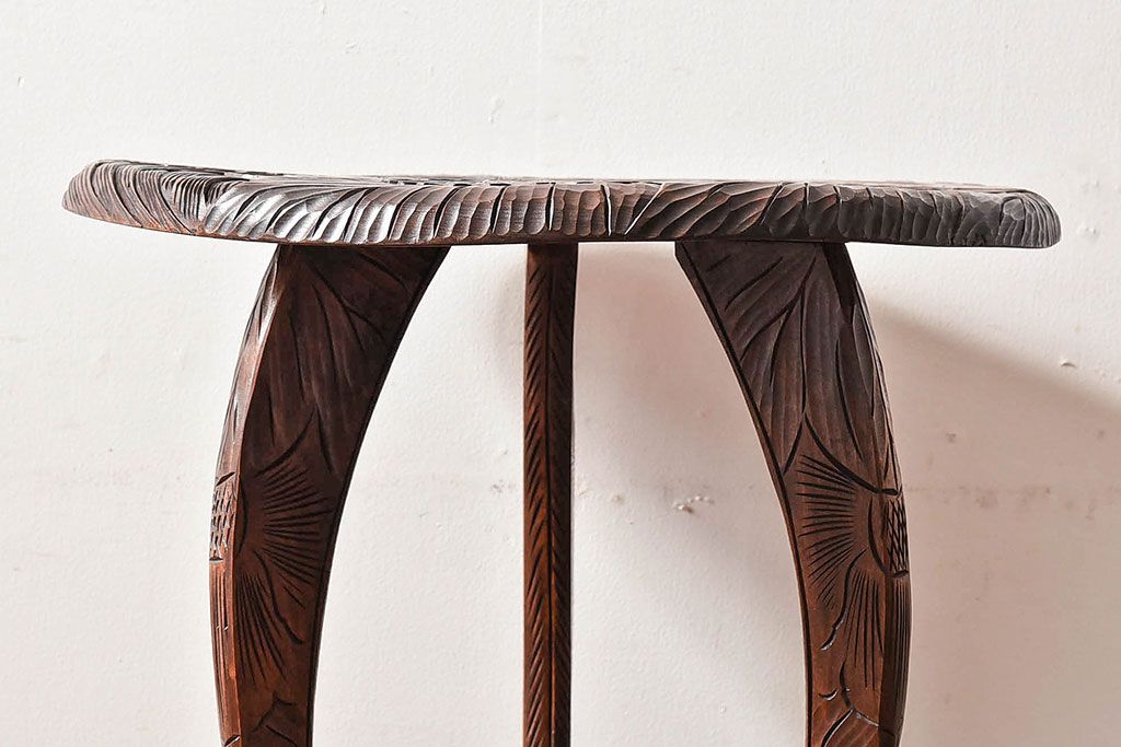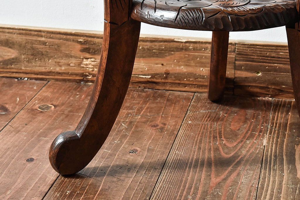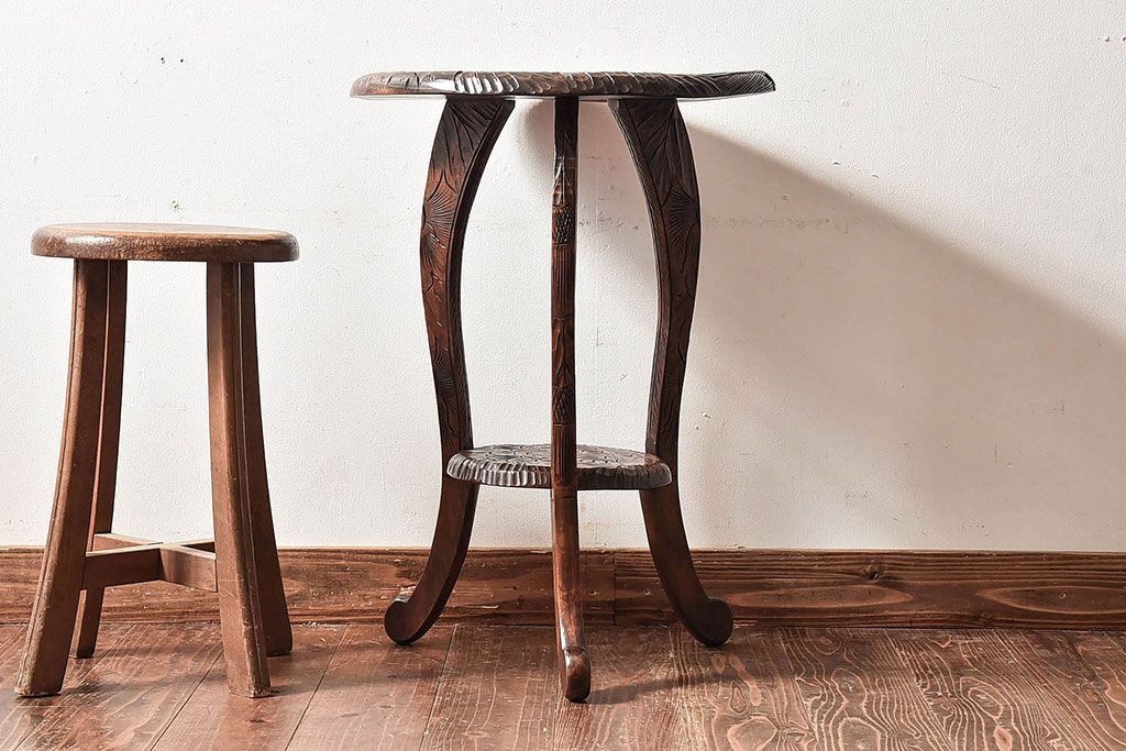 アンティーク雑貨 中古 日光彫りが目を引くサイドテーブル(コーヒーテーブル)