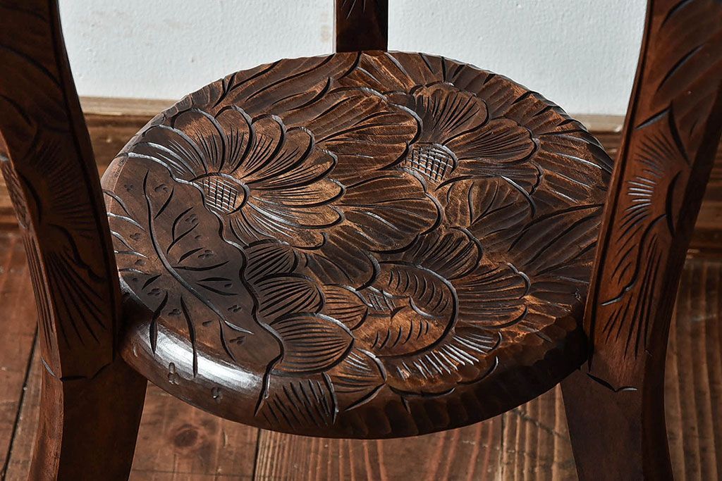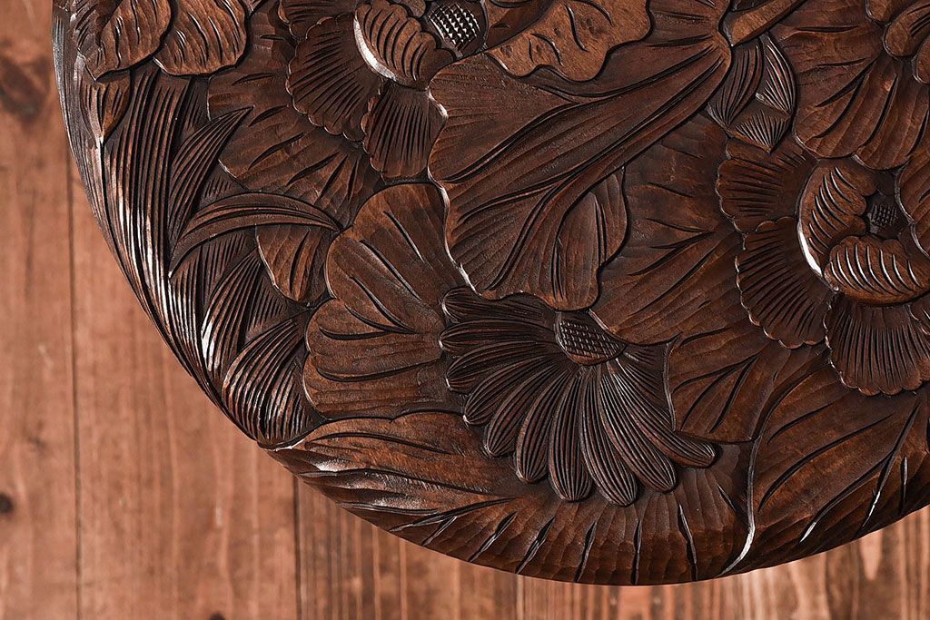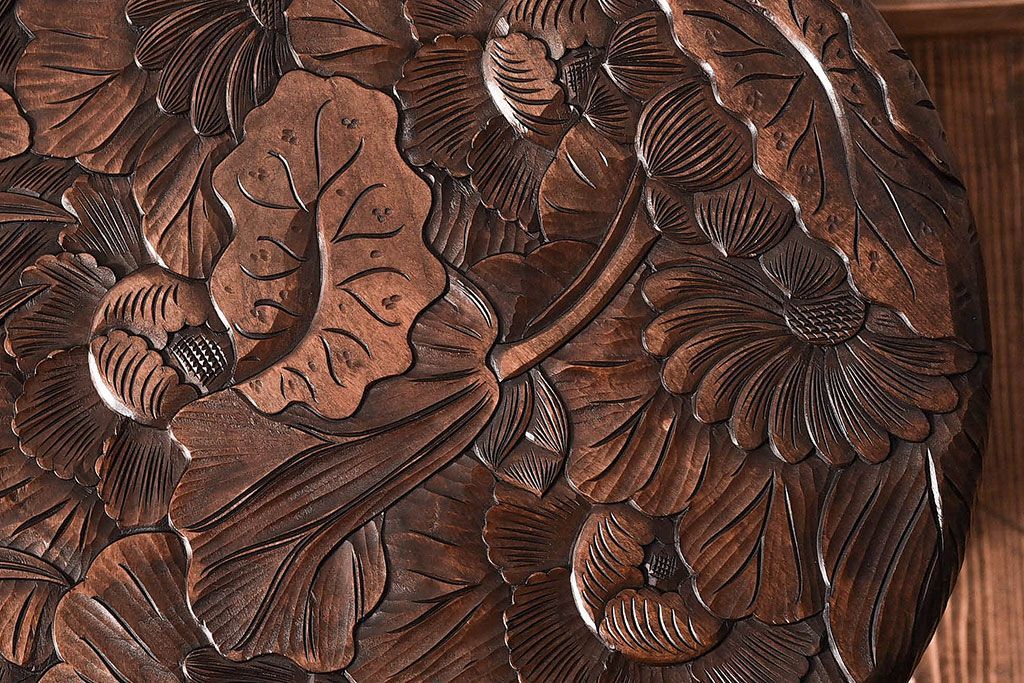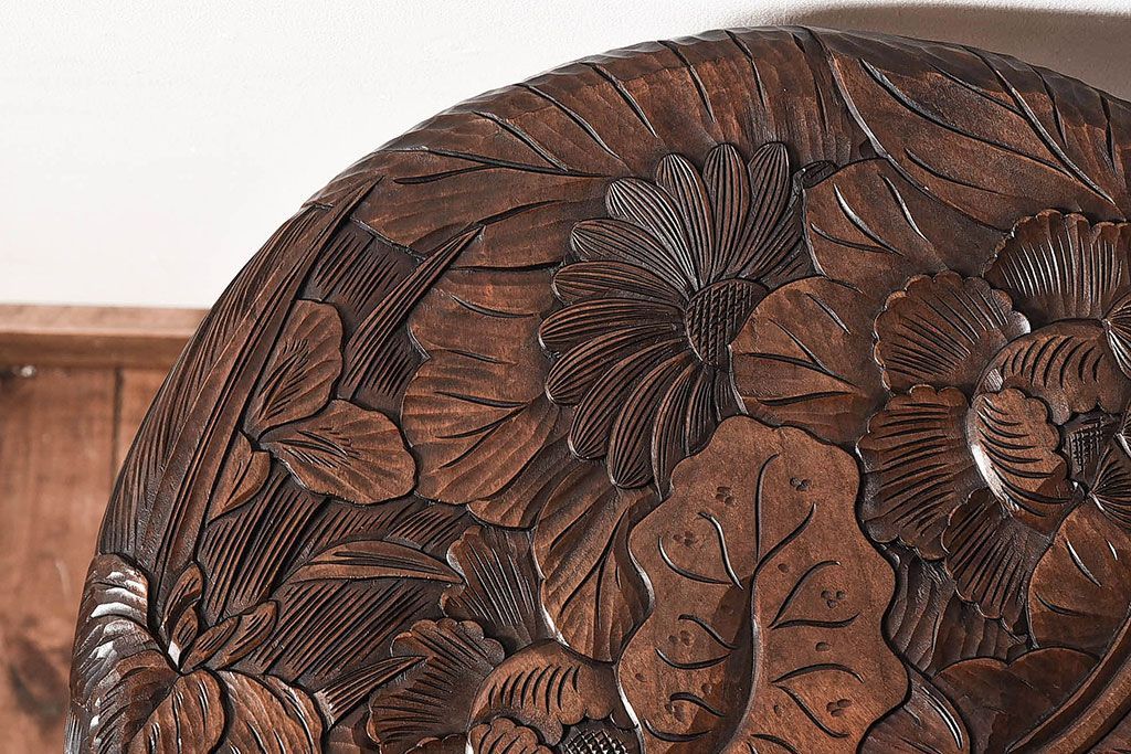 美しい花柄の彫刻が目を引く
