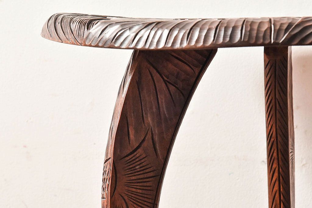 中古 日光彫りが目を引くサイドテーブル(コーヒーテーブル)です。