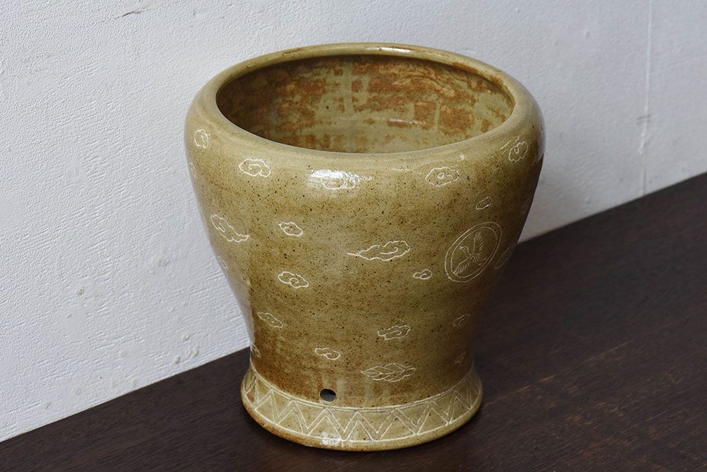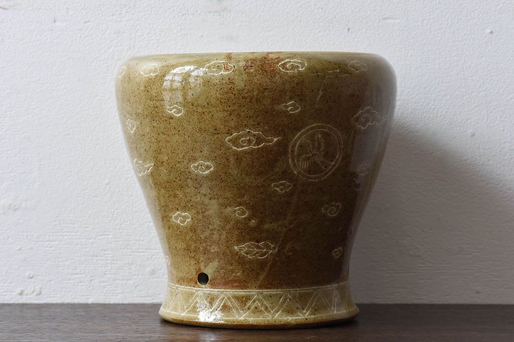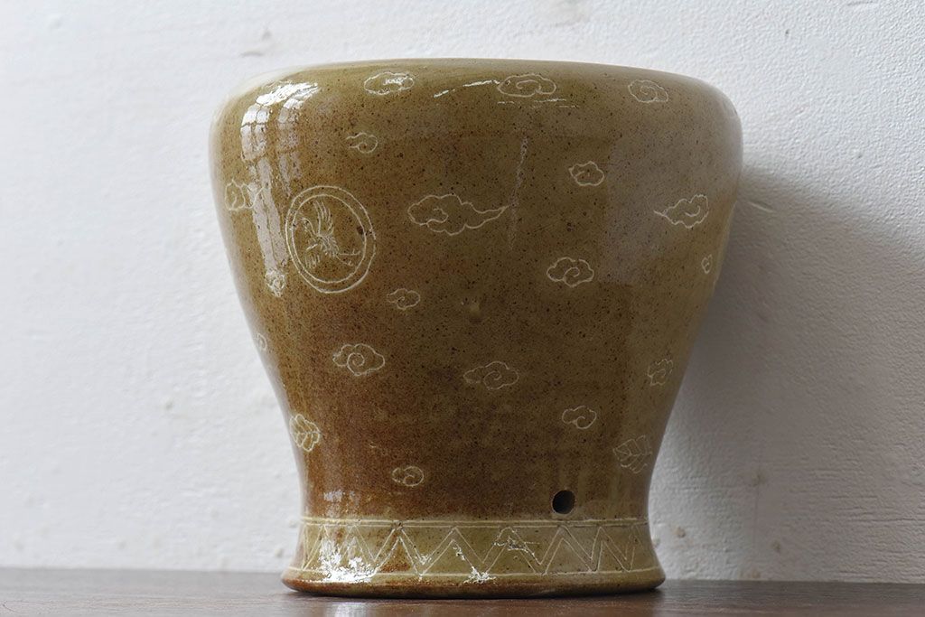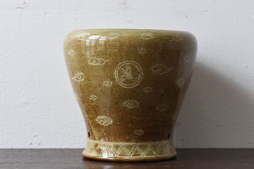 アンティーク雑貨 アンティーク 明治大正期 雲鶴紋瓶掛火鉢(茶道具)