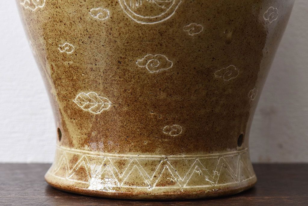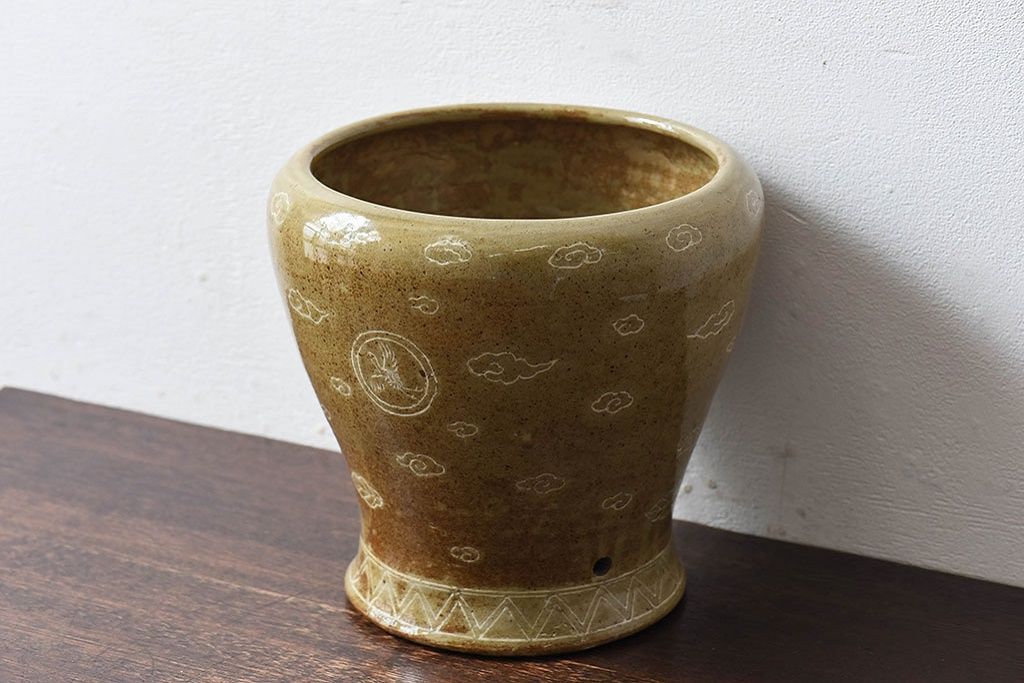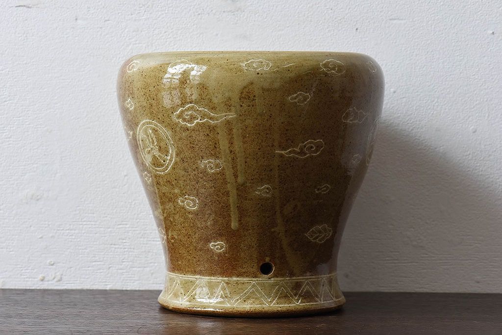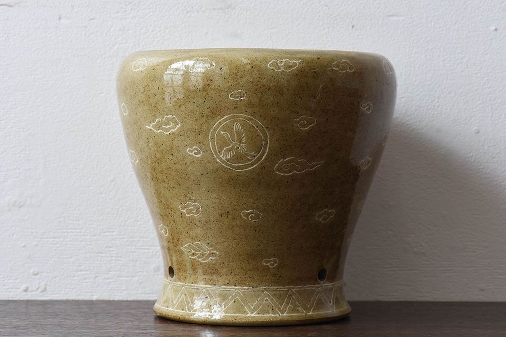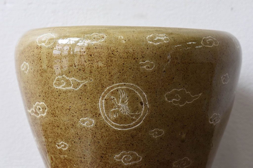 アンティーク雑貨 アンティーク 明治大正期 雲鶴紋瓶掛火鉢(茶道具)