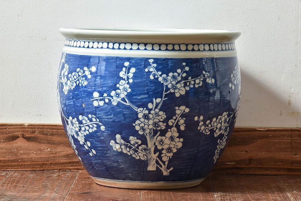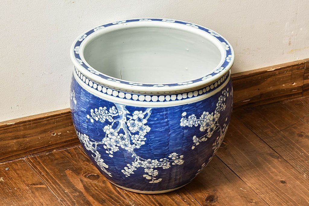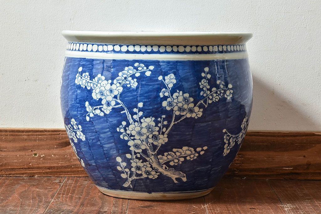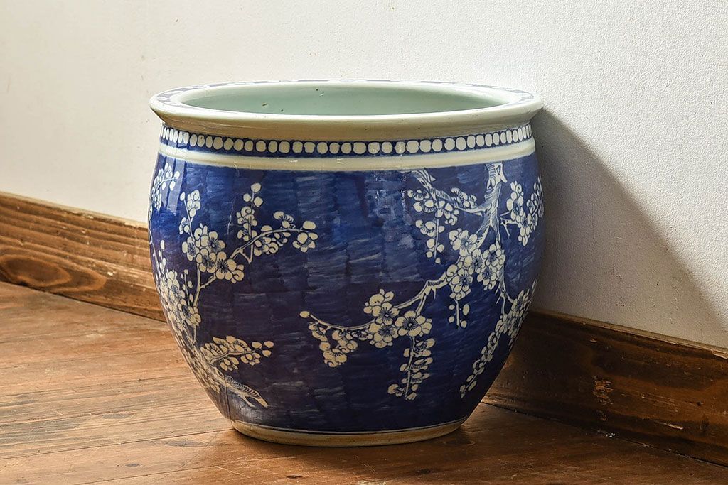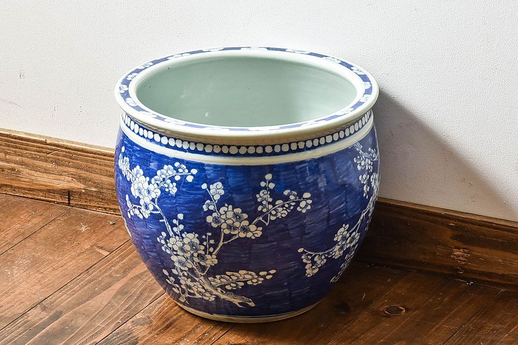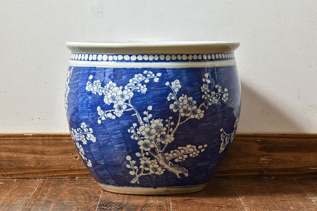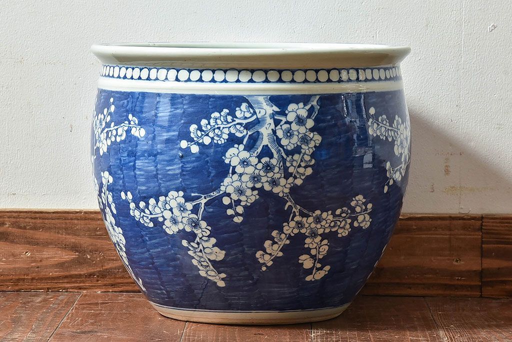 アンティーク雑貨 アンティーク 大正昭和期 梅花文水鉢(火鉢)