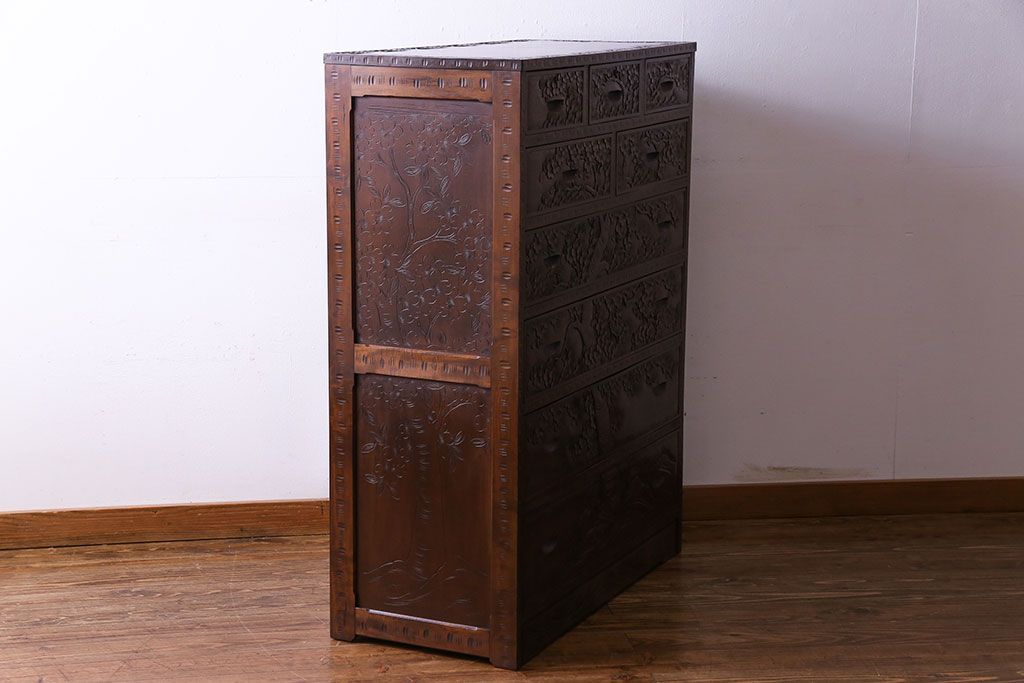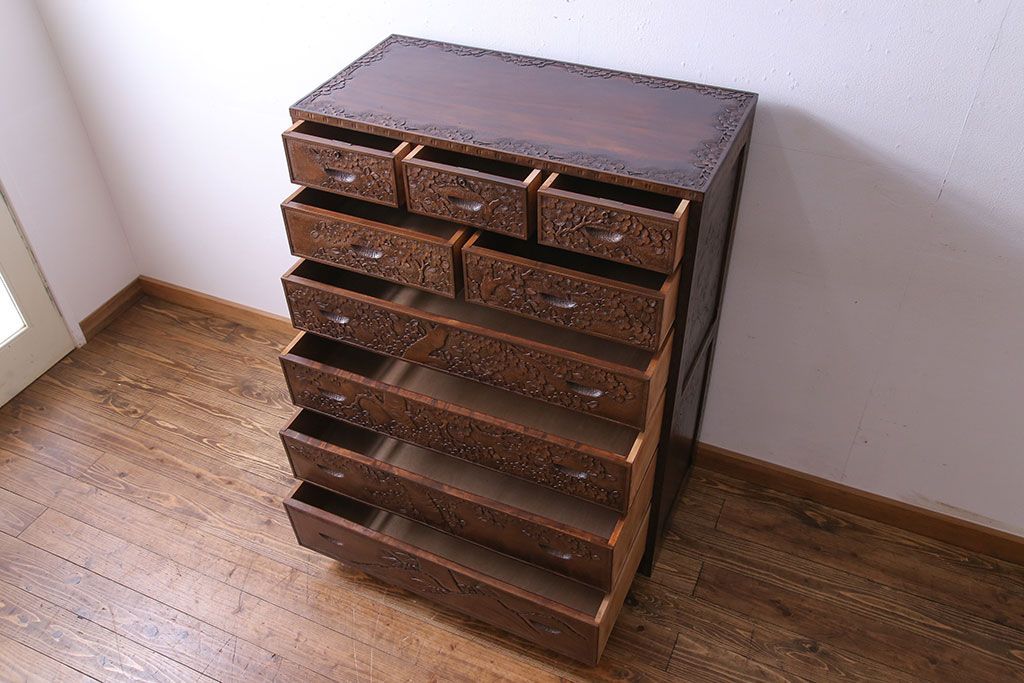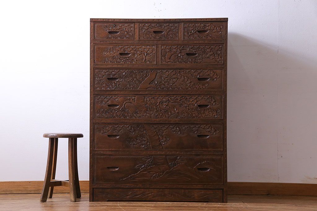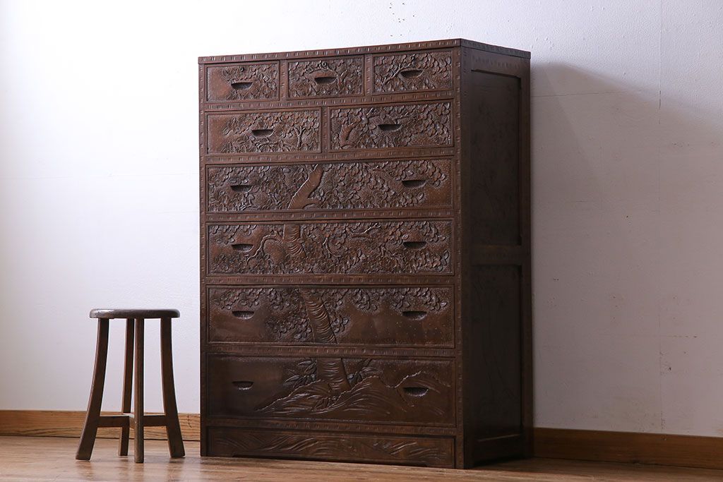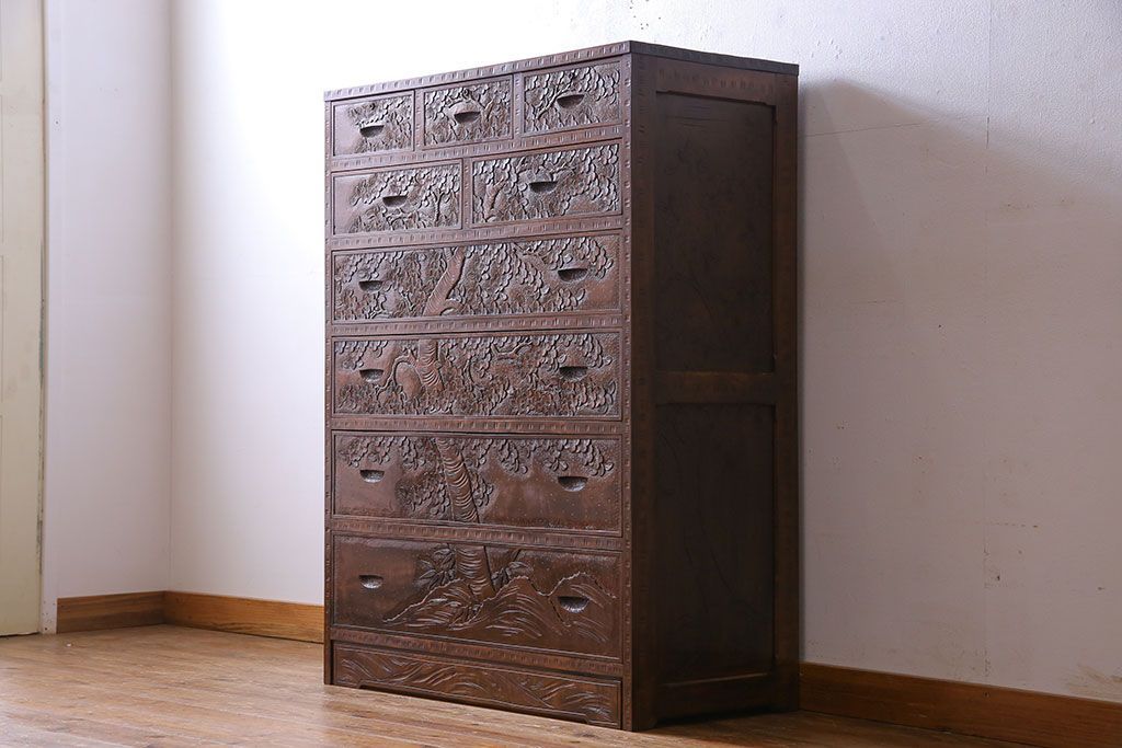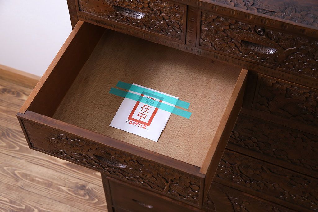 中古 伝統工芸軽井沢彫り 上質な洋服タンス(衣装箪笥、収納棚)