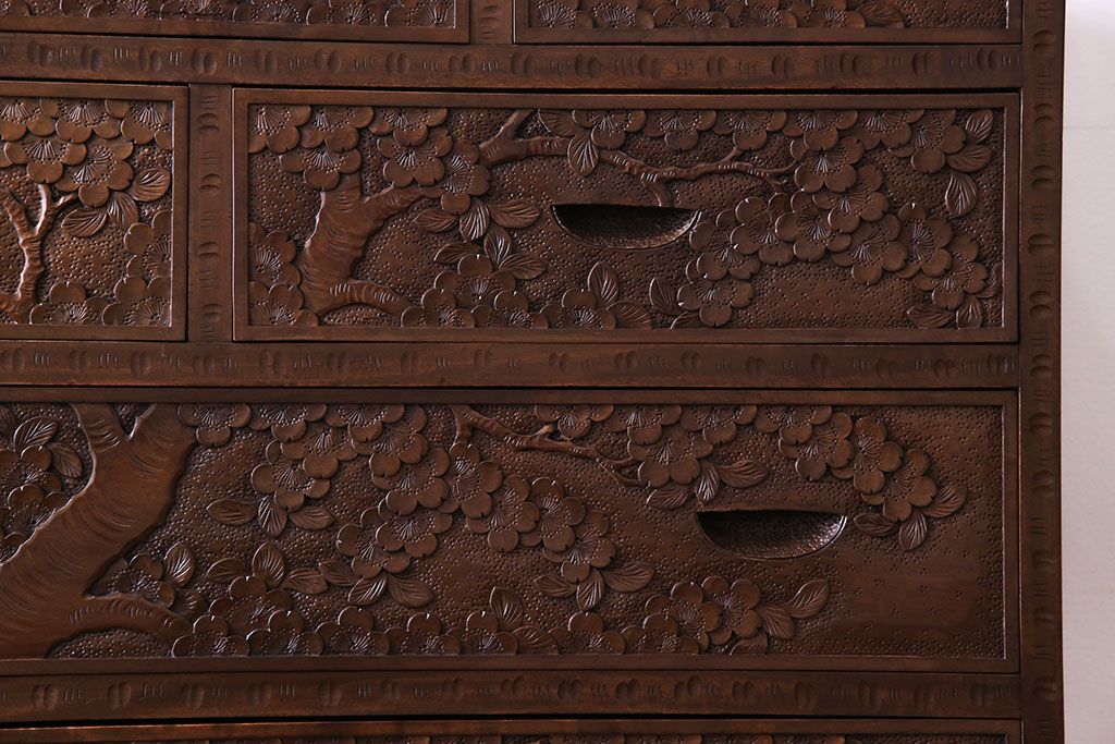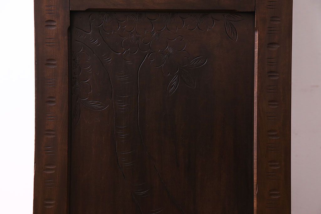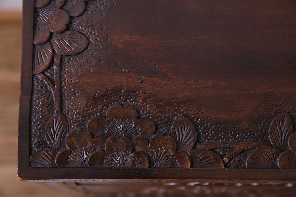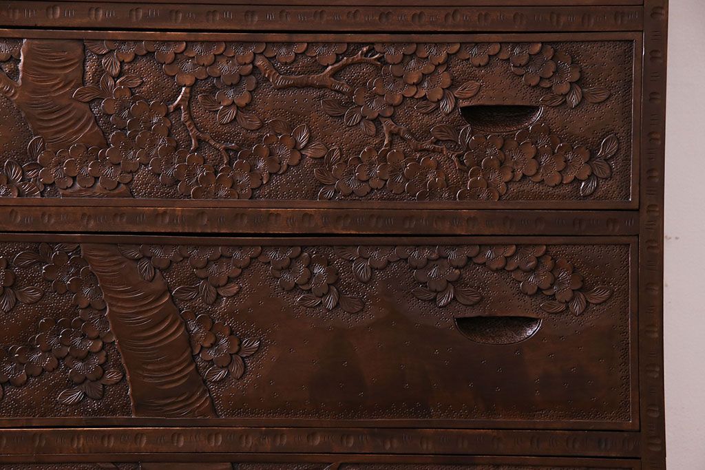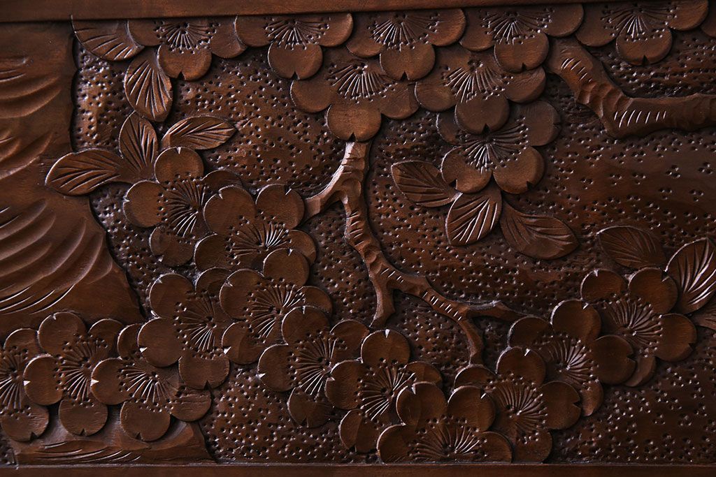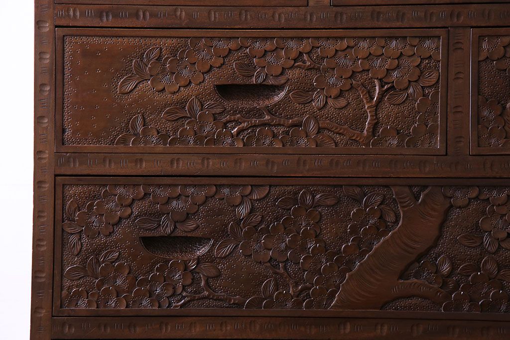 軽井沢彫り特有の美しい桜の彫刻が目を引く洋服タンスです。