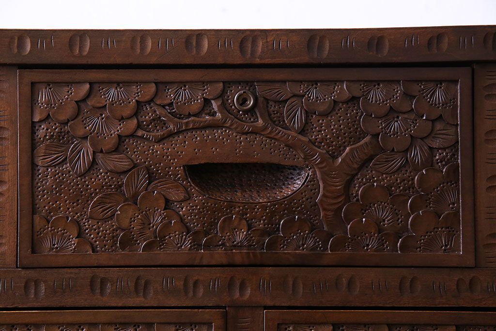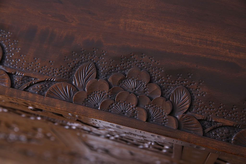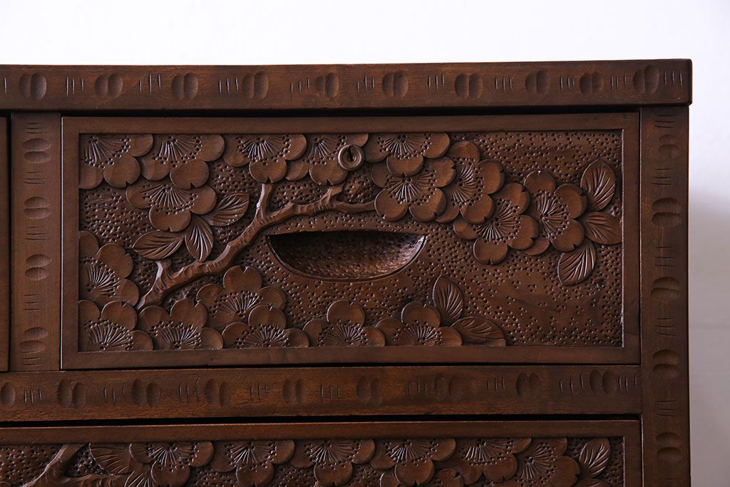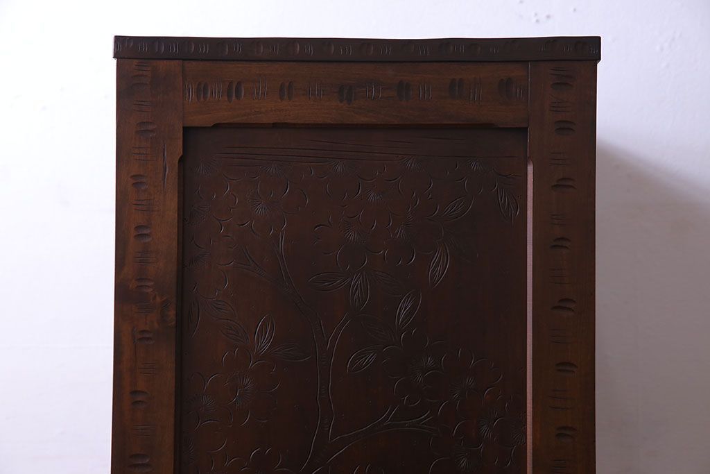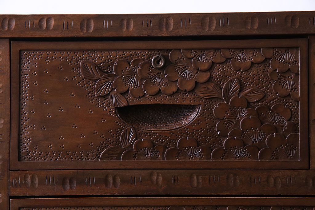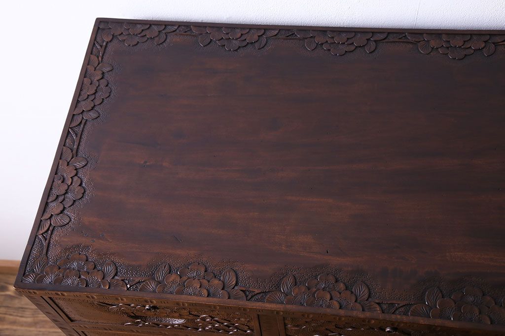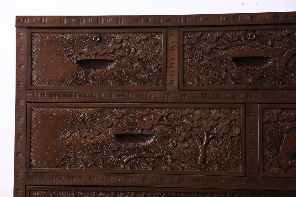 軽井沢彫り特有の美しい桜の彫刻が目を引く洋服タンスです。