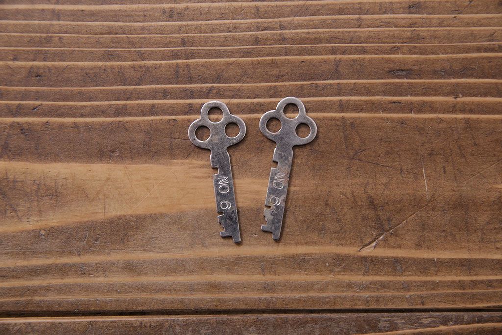 鍵は付属します。画像にありますように、袋に入れお付けします。スムーズに動くように調整していますが、あくまでも古いものや中古品ですので、長期の使用保証は出来かねます。ご購入後不具合が発生した場合は、当店でサポートさせていただきますので、お気軽にご相談くださいませ。