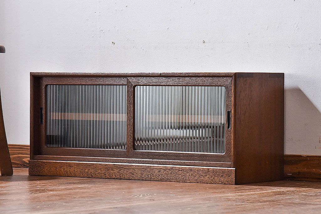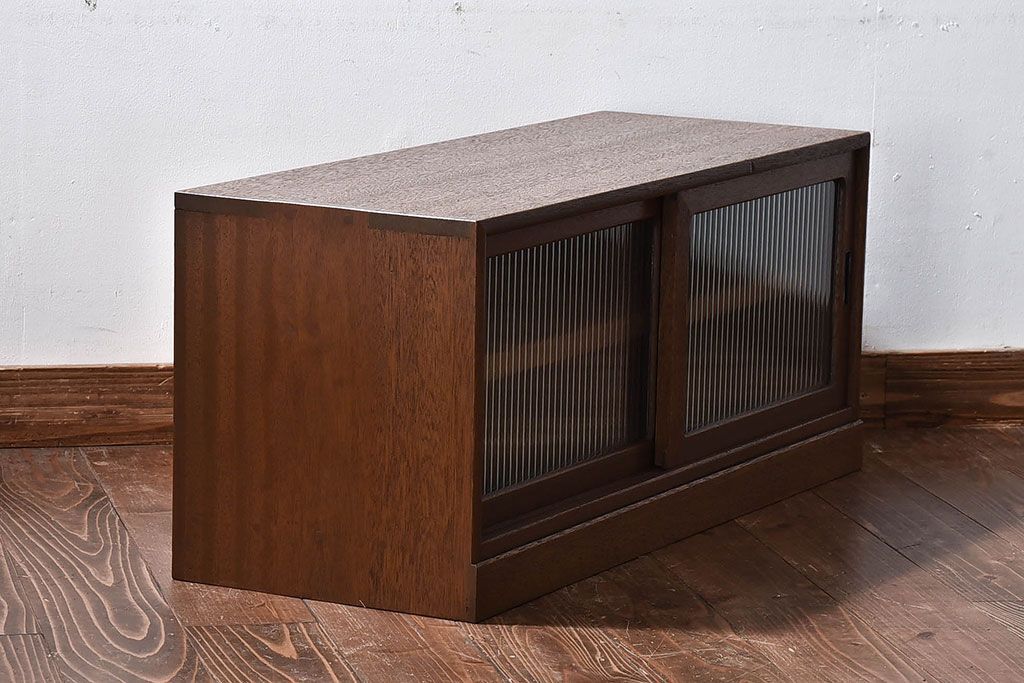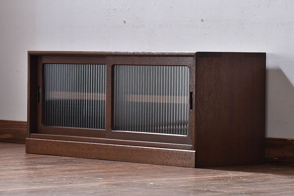和製アンティーク モールガラス入り 古材の質感が味わい深いローボード(戸棚、収納棚)です。