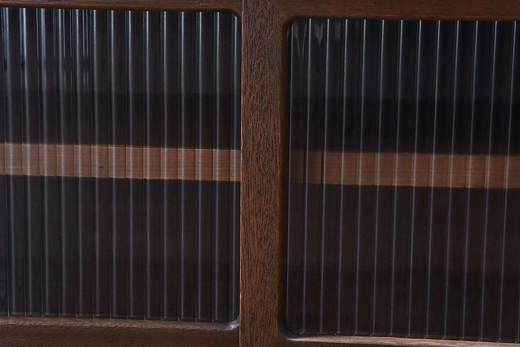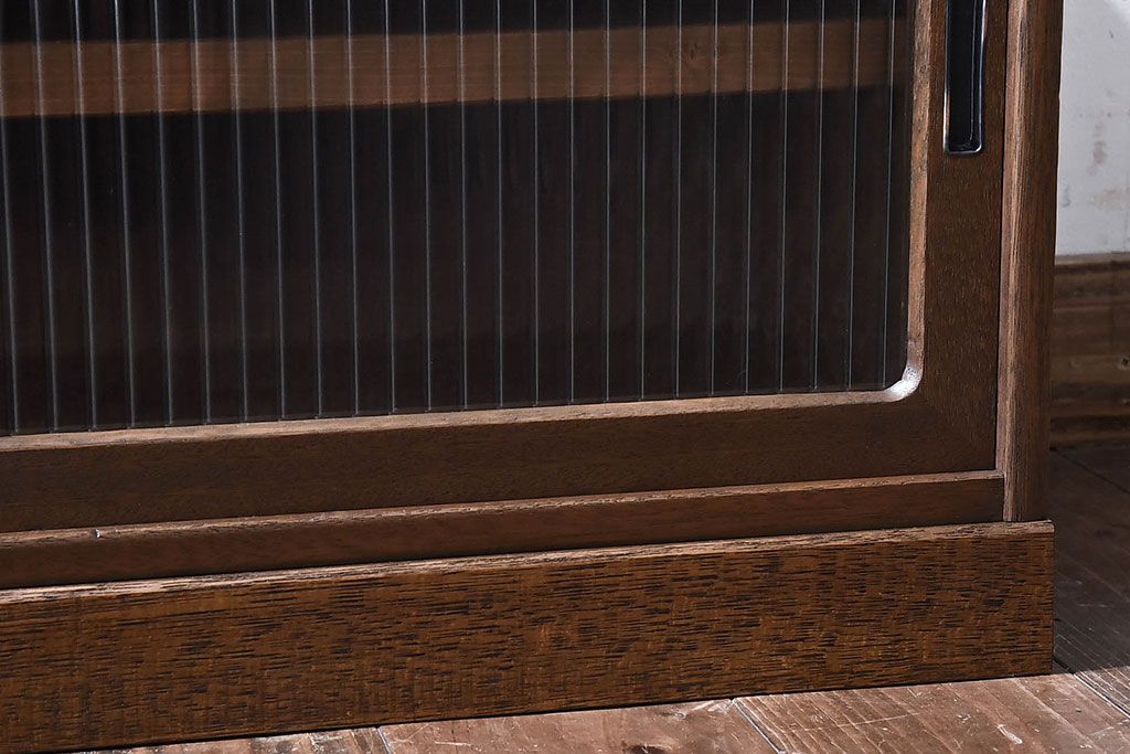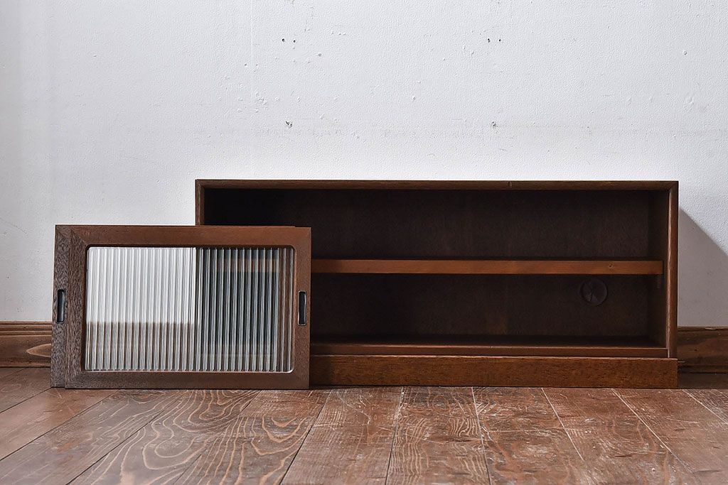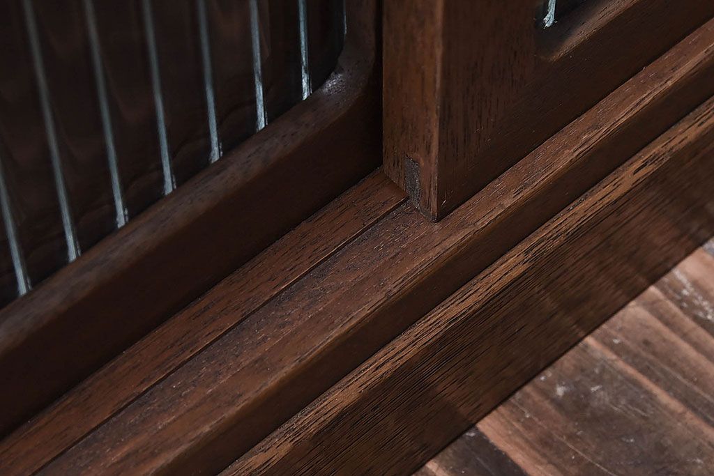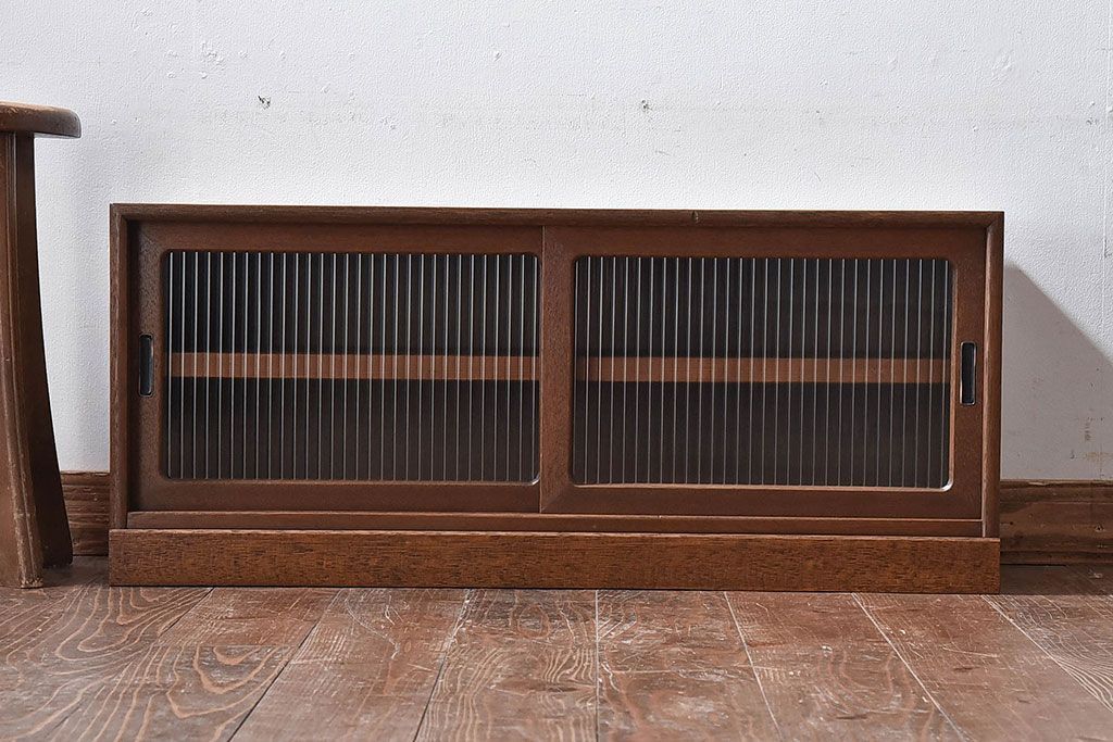 アンティーク家具 和製アンティーク モールガラス入り 古材の質感が味わい深いローボード(戸棚、収納棚)