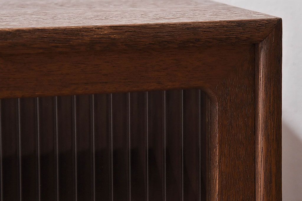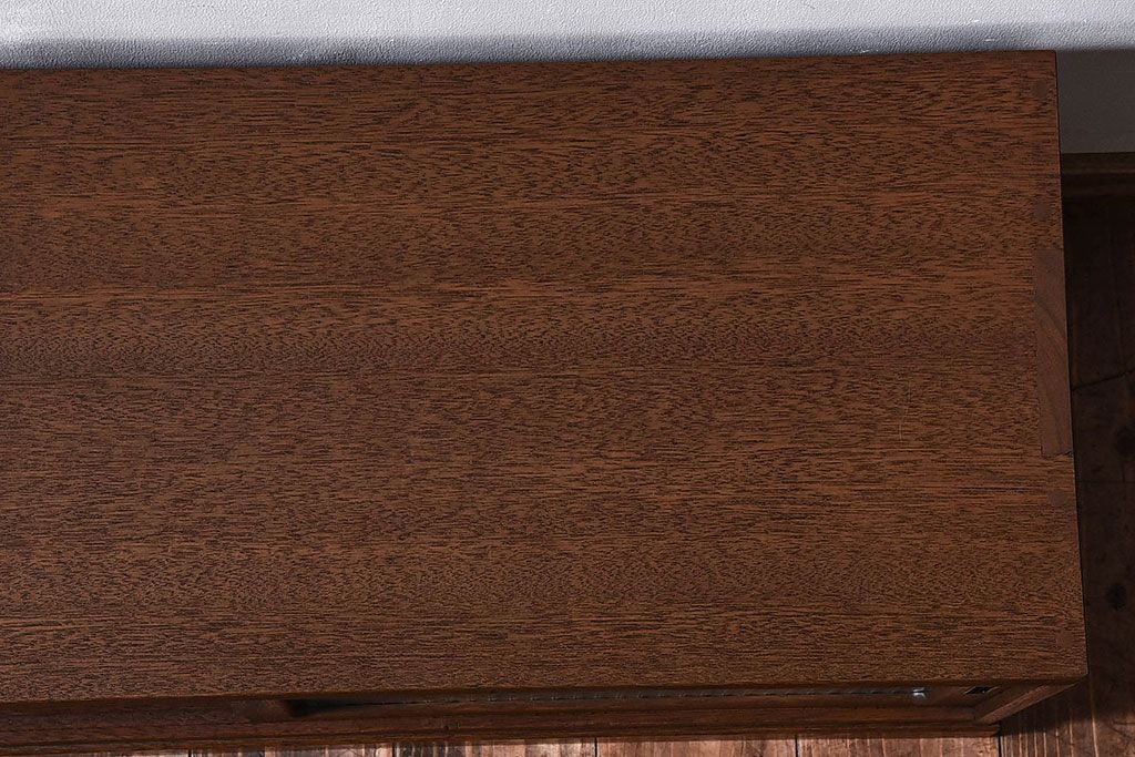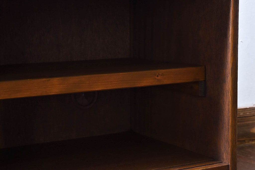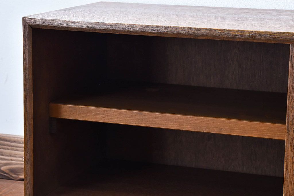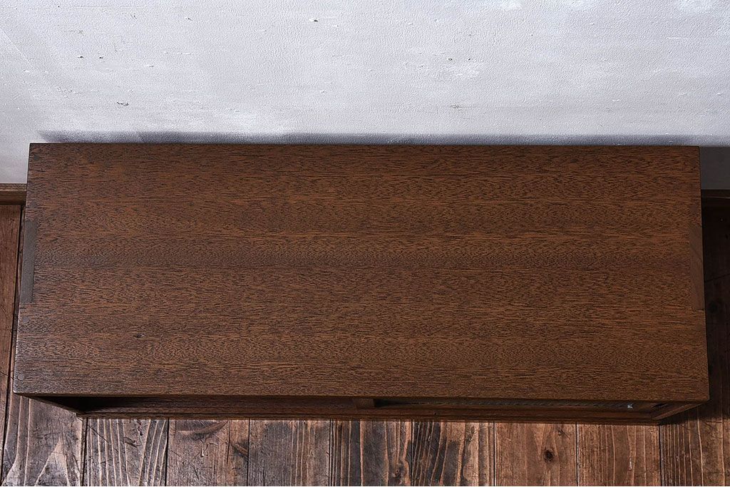 アンティーク家具 和製アンティーク モールガラス入り 古材の質感が味わい深いローボード(戸棚、収納棚)