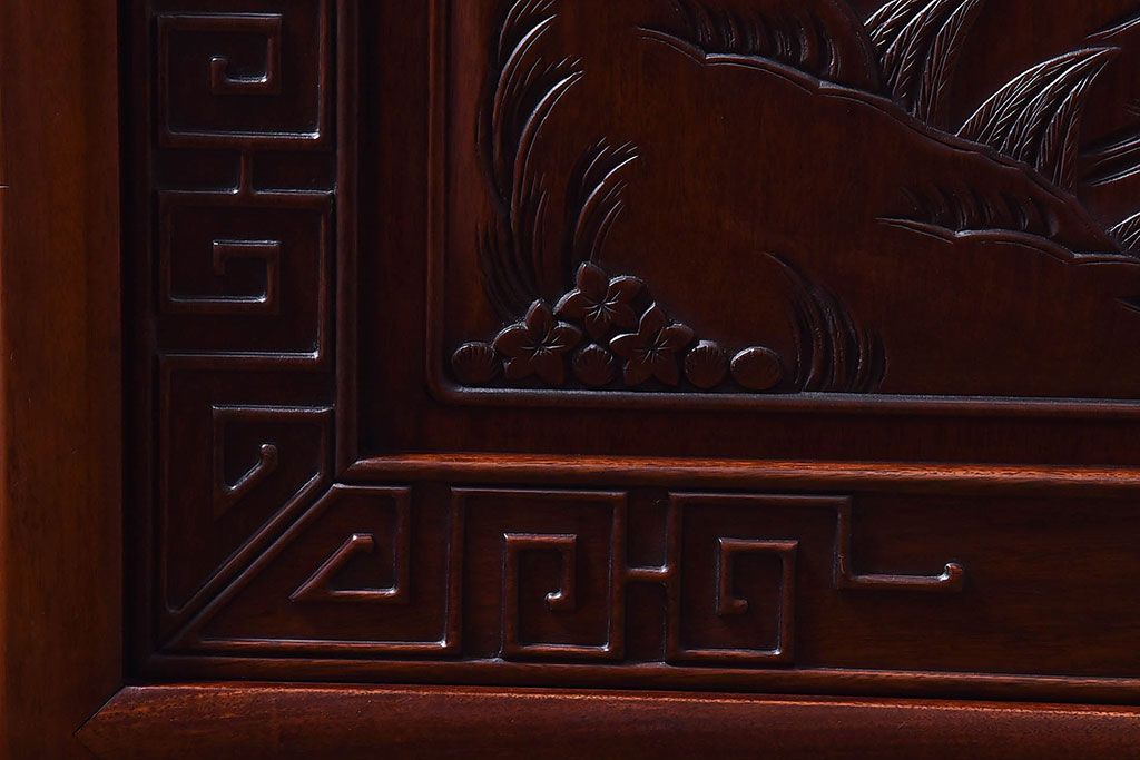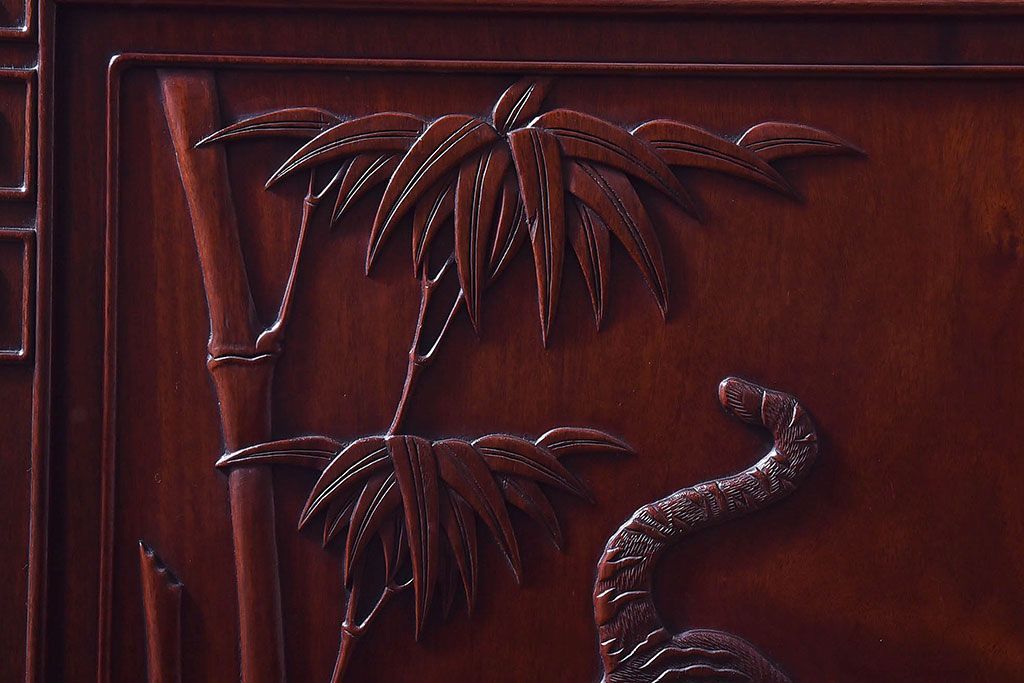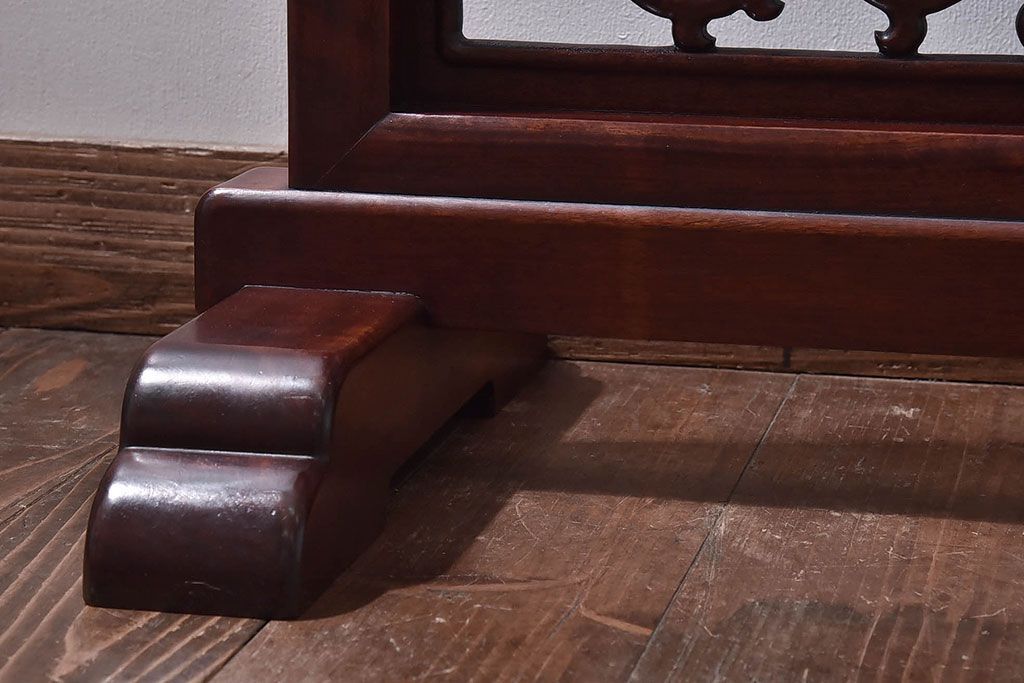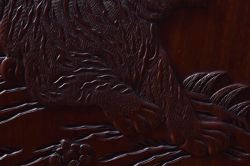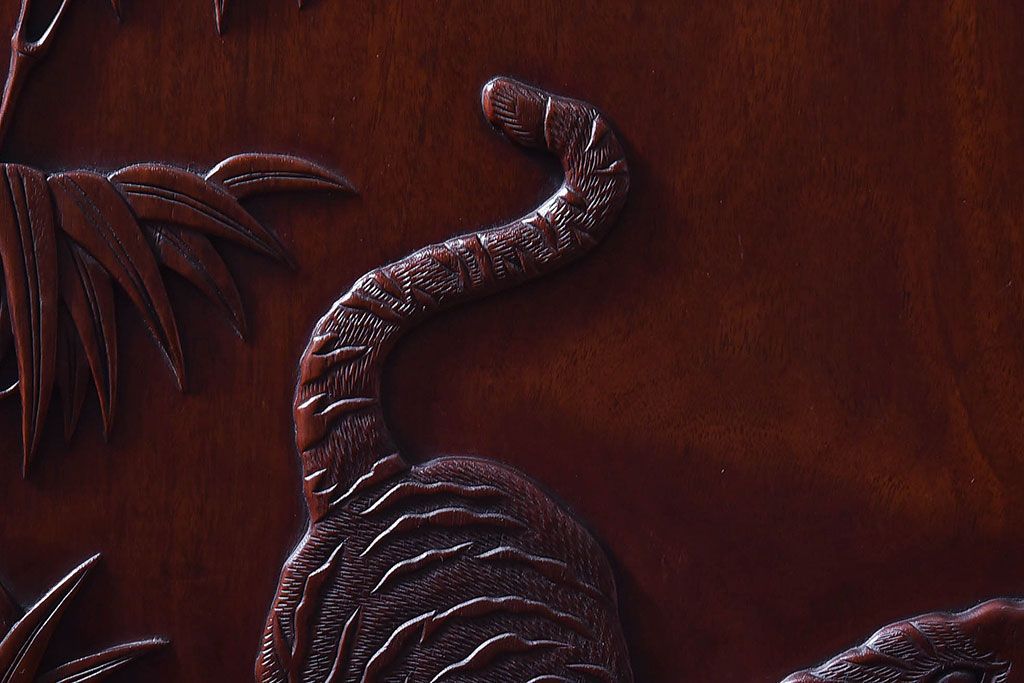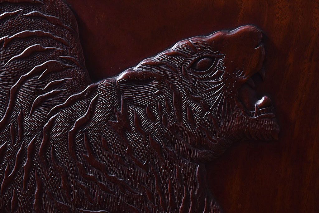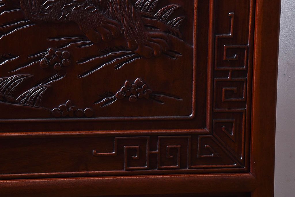 アンティーク雑貨 中国 虎の図 漆塗りが美しい上質な唐木の衝立(パーテーション)