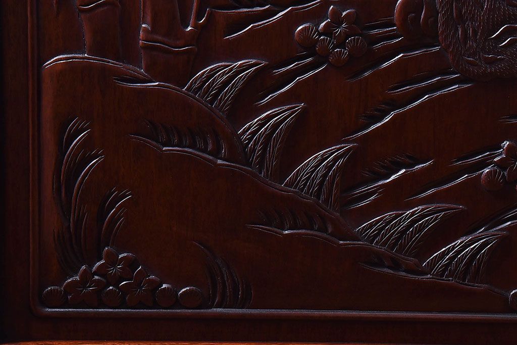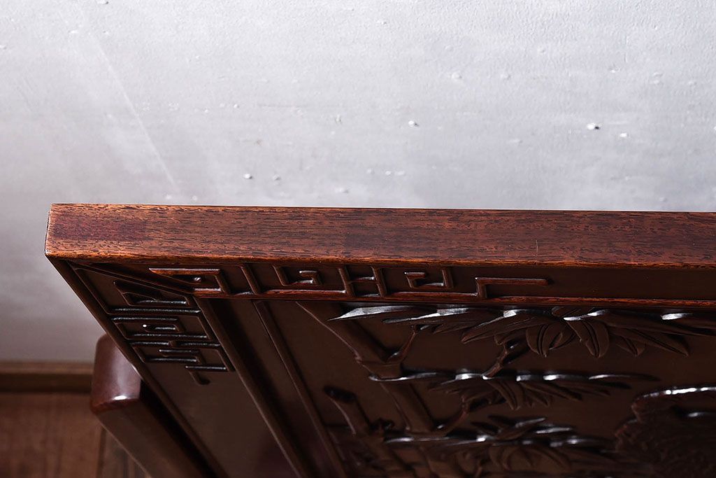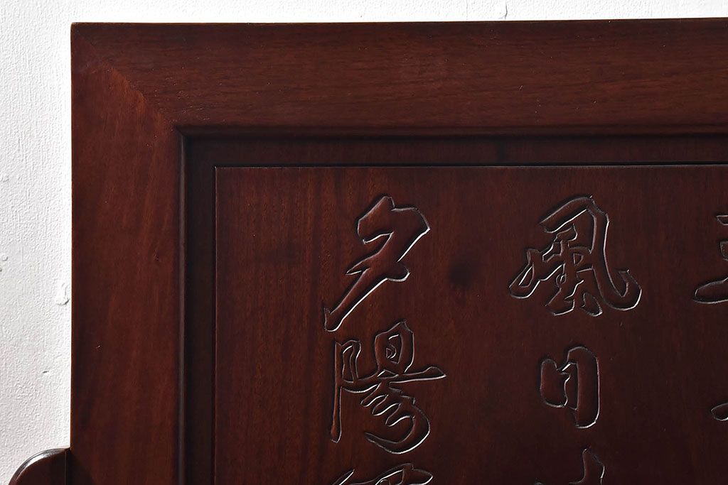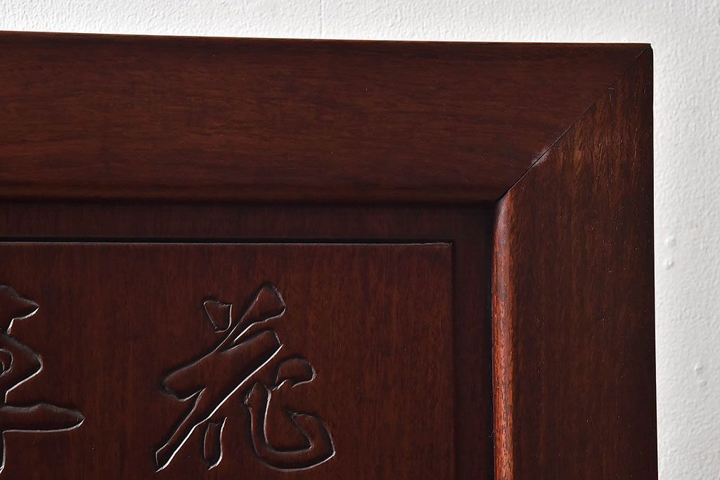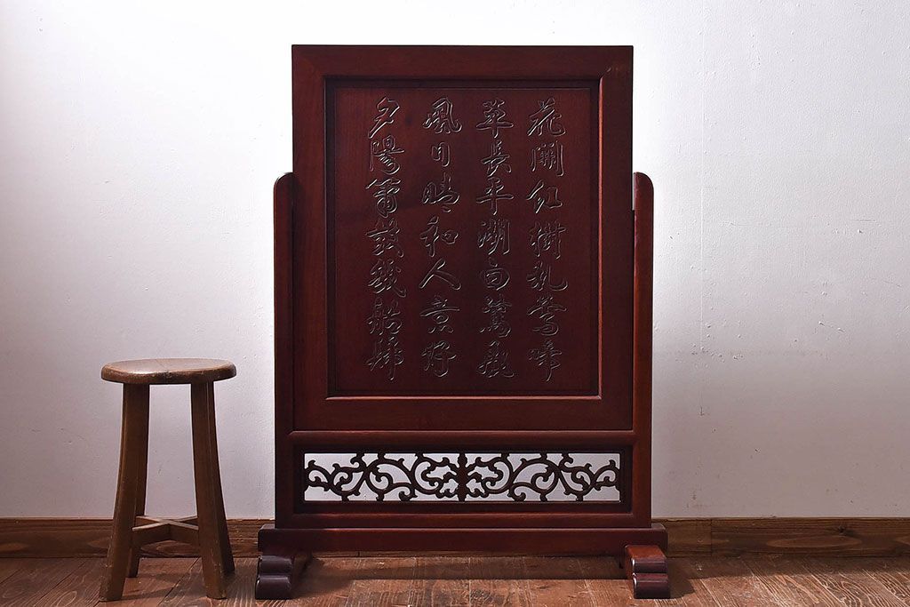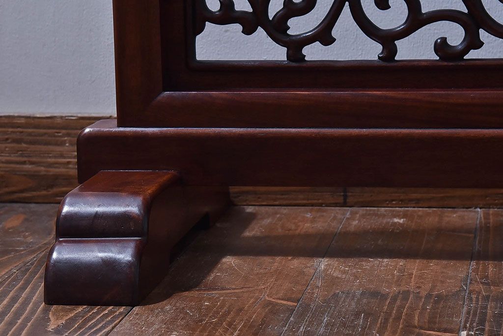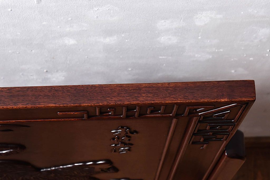 アンティーク雑貨 中国 虎の図 漆塗りが美しい上質な唐木の衝立(パーテーション)