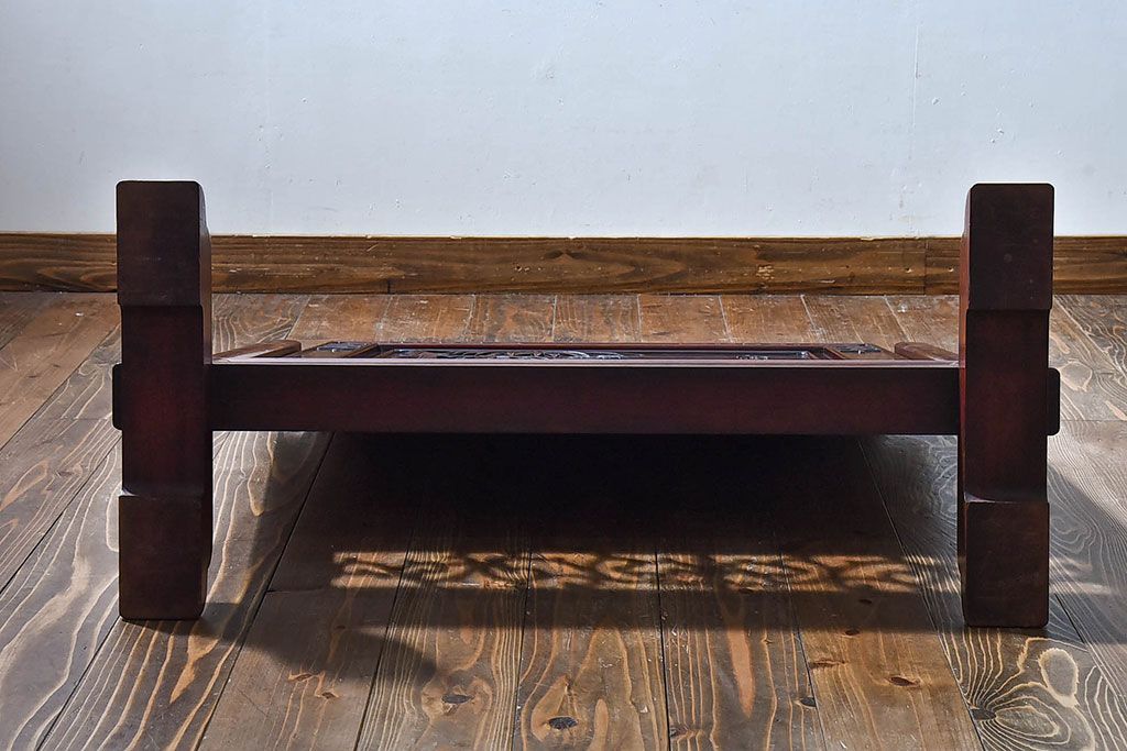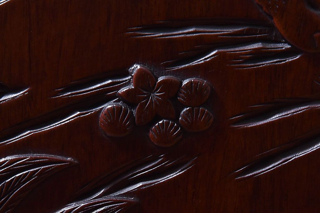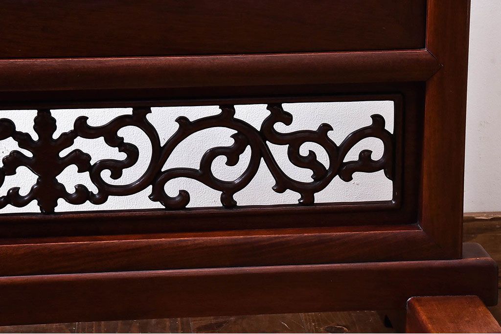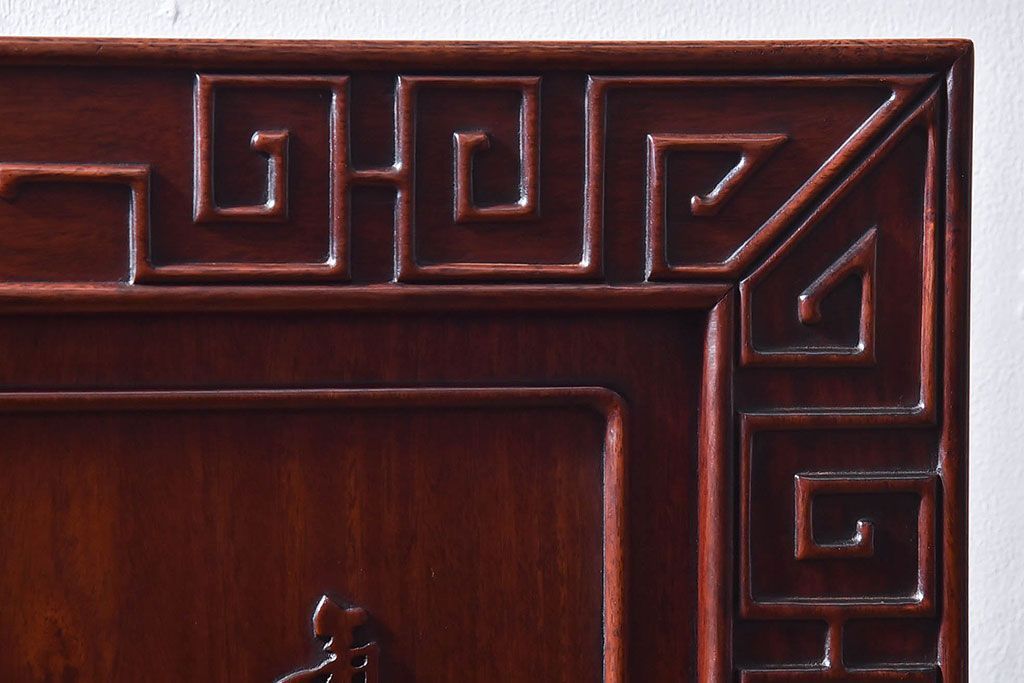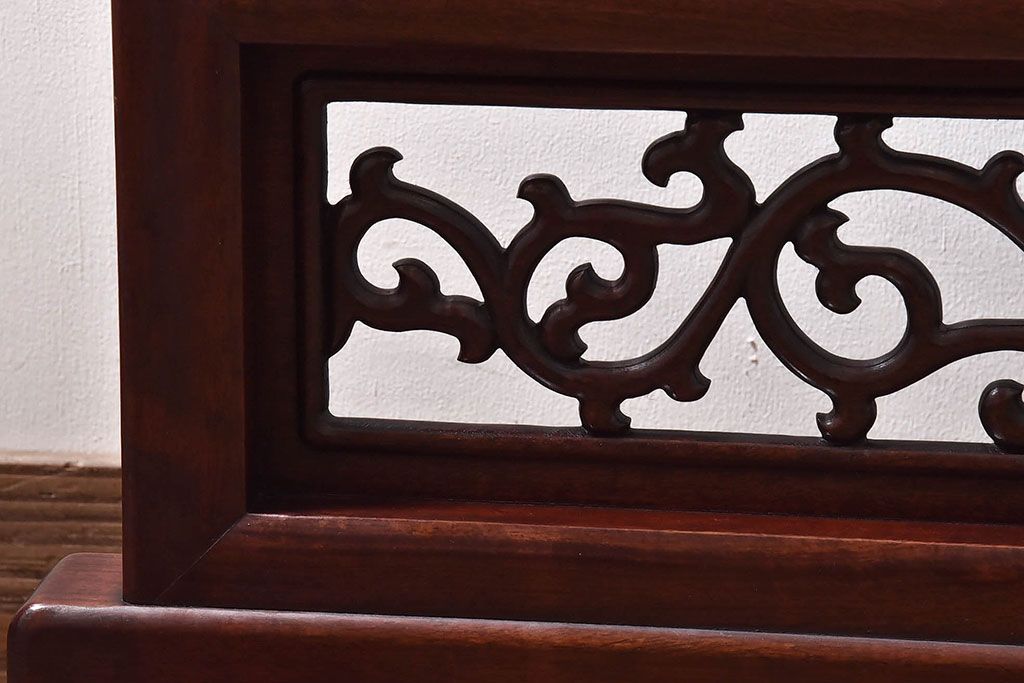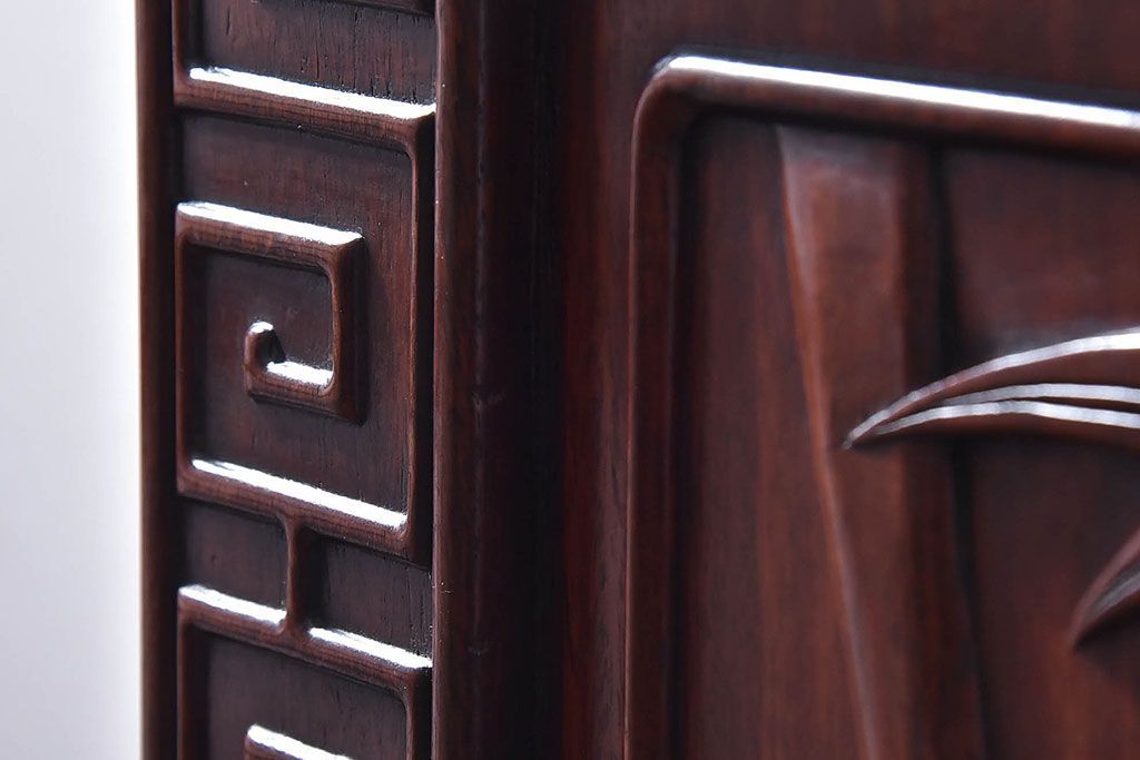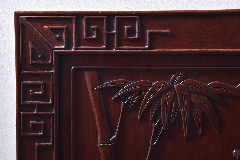 アンティーク雑貨 中国 虎の図 漆塗りが美しい上質な唐木の衝立(パーテーション)