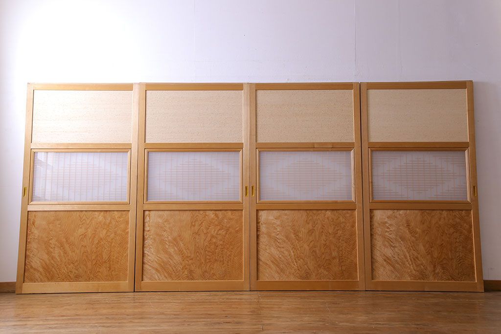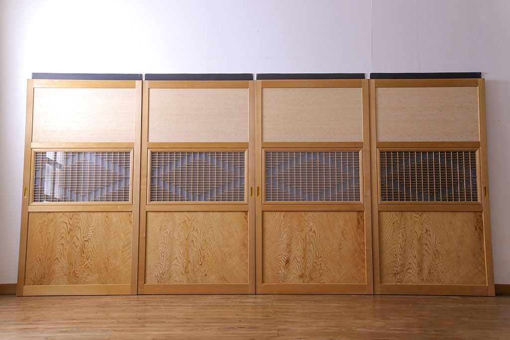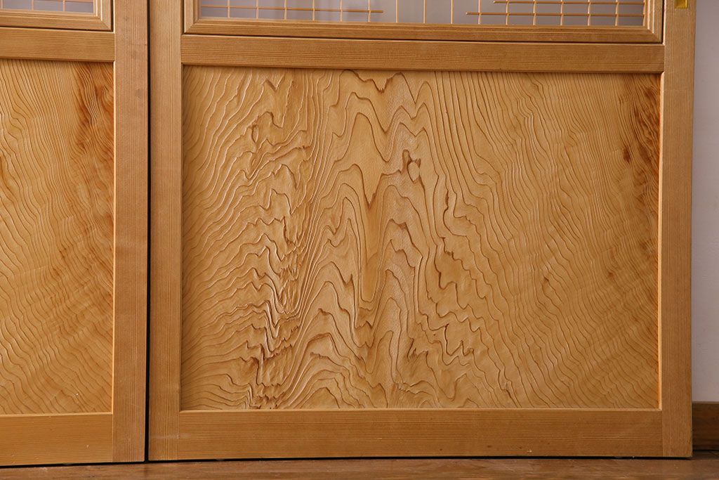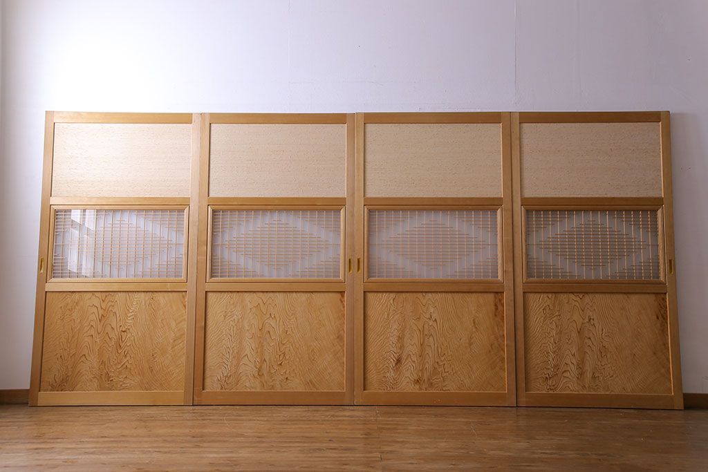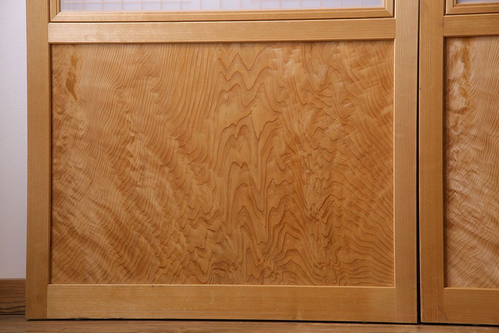 昭和期 美品 杉材の木目が存在感を放つ上質な組子帯戸(ガラス帯戸、引き戸、建具)4枚セット