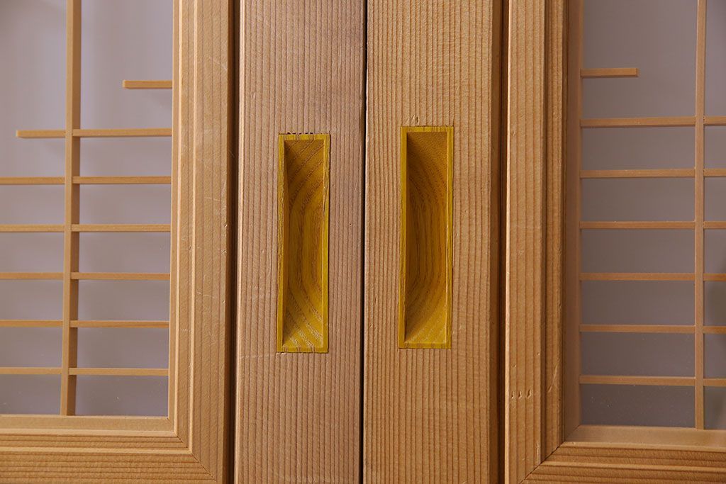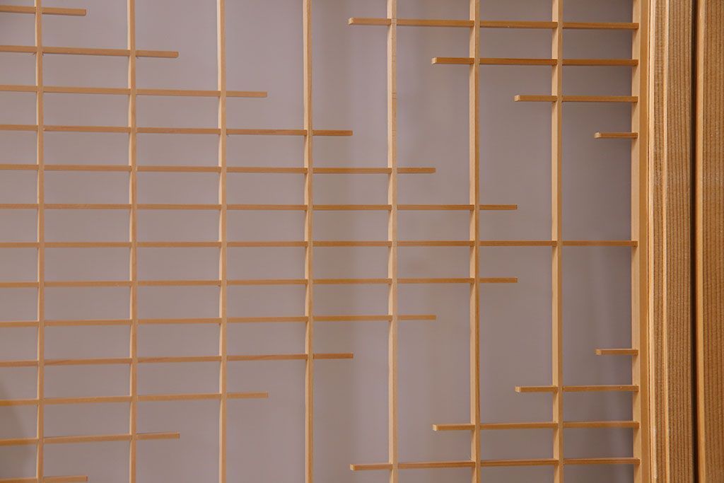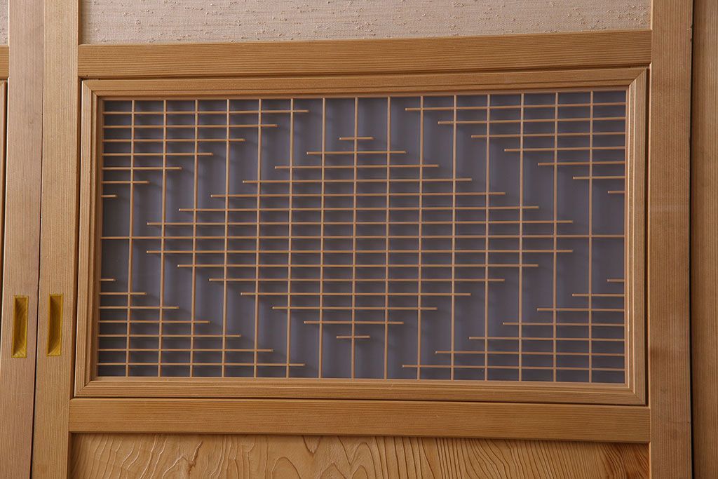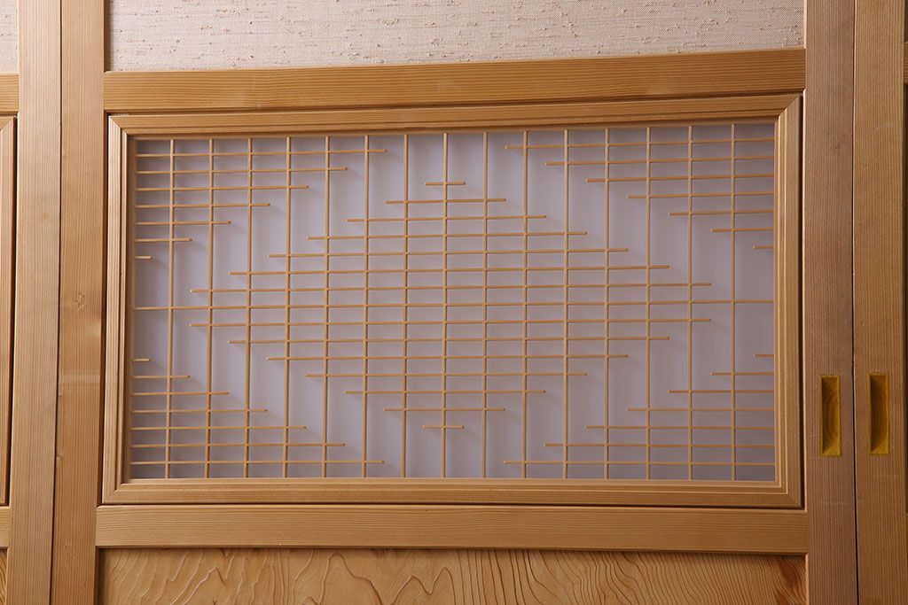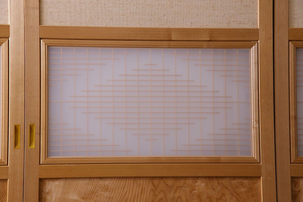 昭和期 美品 杉材の木目が存在感を放つ上質な組子帯戸(ガラス帯戸、引き戸、建具)4枚セット