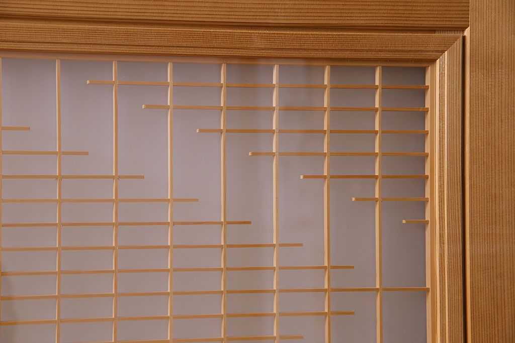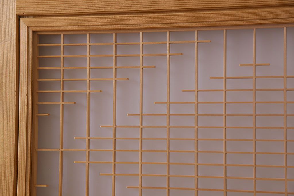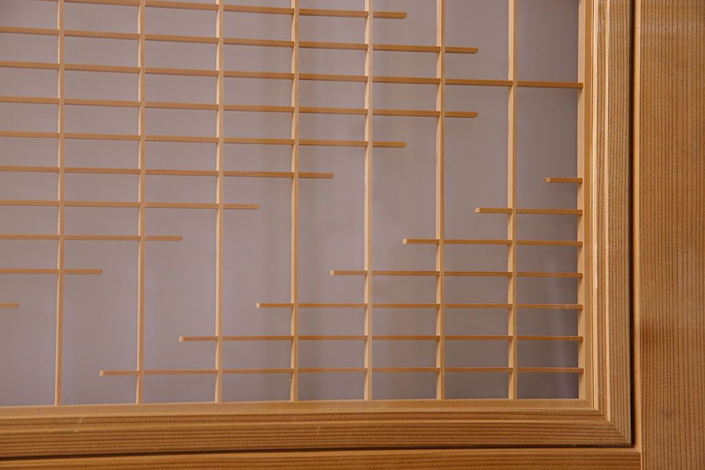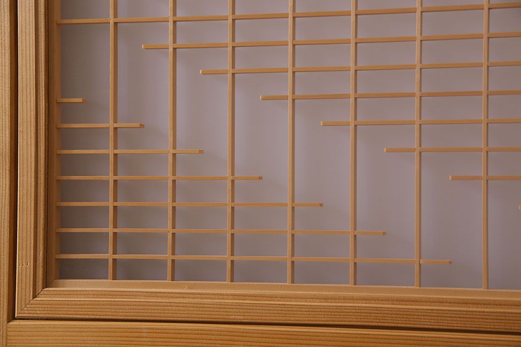 昭和期 美品 杉材の木目が存在感を放つ上質な組子帯戸(ガラス帯戸、引き戸、建具)4枚セットです。
