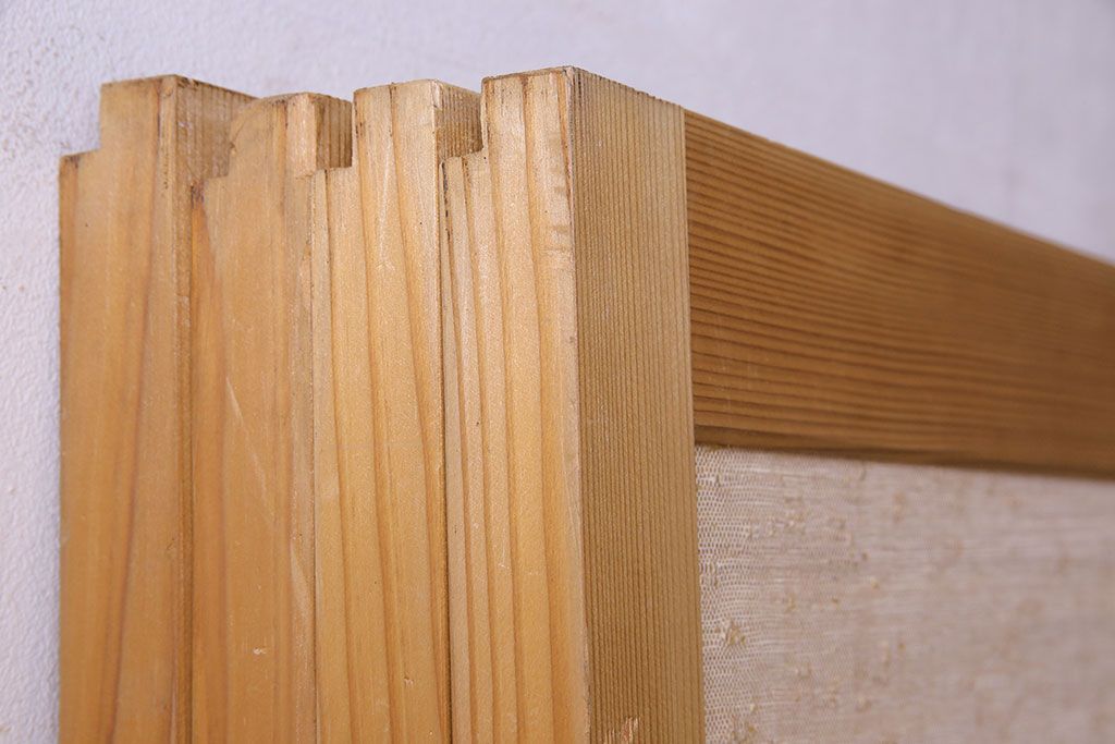 1枚目の組子帯戸4枚のうち、左端のみ計測致しましたので、そちらをご参考ください。