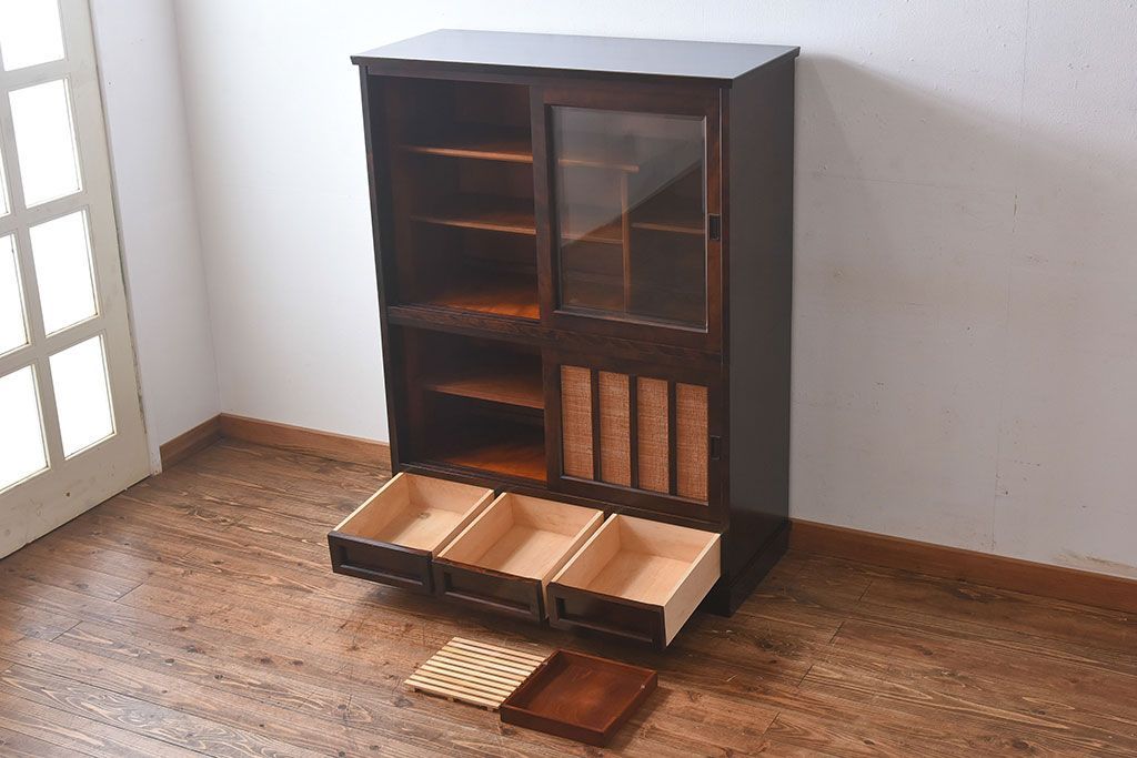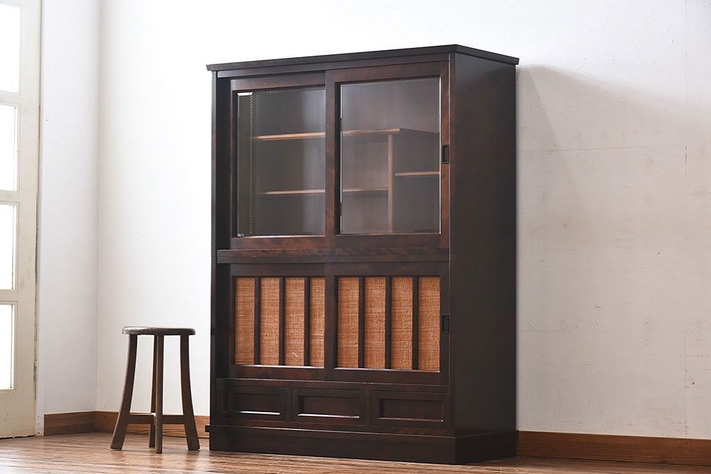 ラフジュ工房> 和箪笥 > 中古 北海道民芸家具 滑らかな質感が美しい和モダンな茶棚(収納棚、戸棚)
