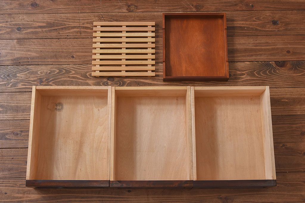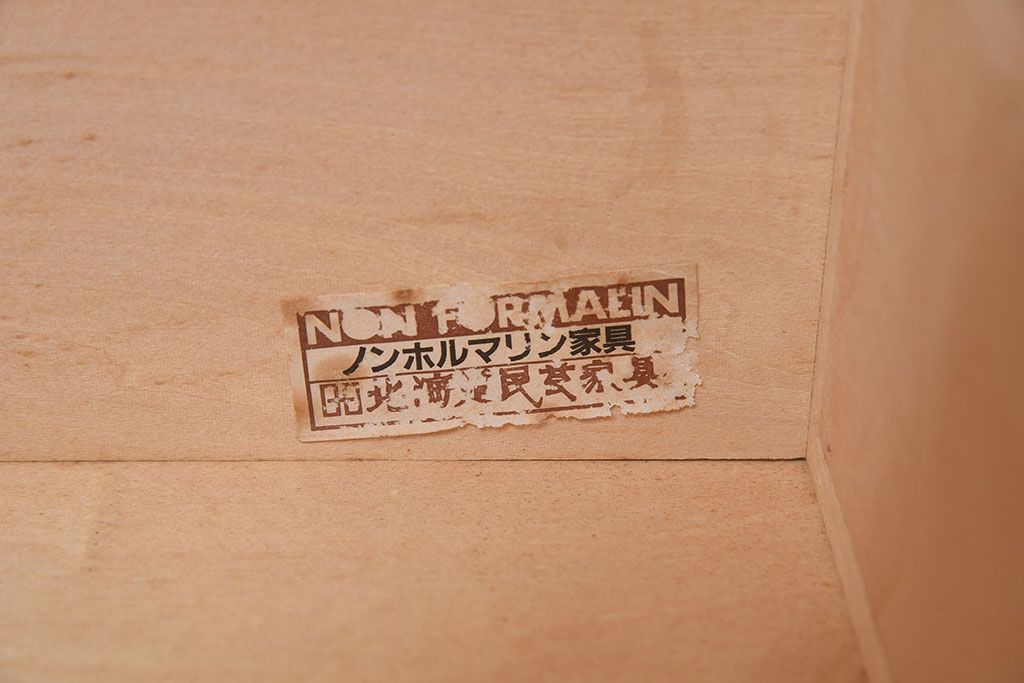 中古 北海道民芸家具 滑らかな質感が美しい和モダンな茶棚(収納棚、戸棚)