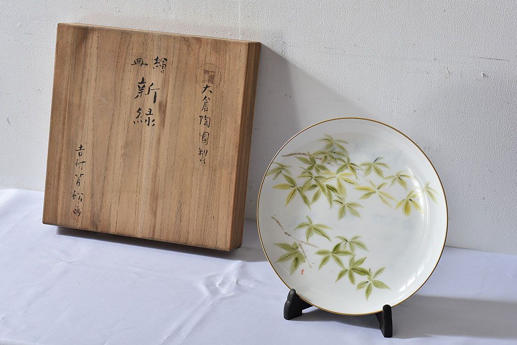 和製アンティーク 戦前 オールド大倉 吉村芳松画 絵皿「新緑」