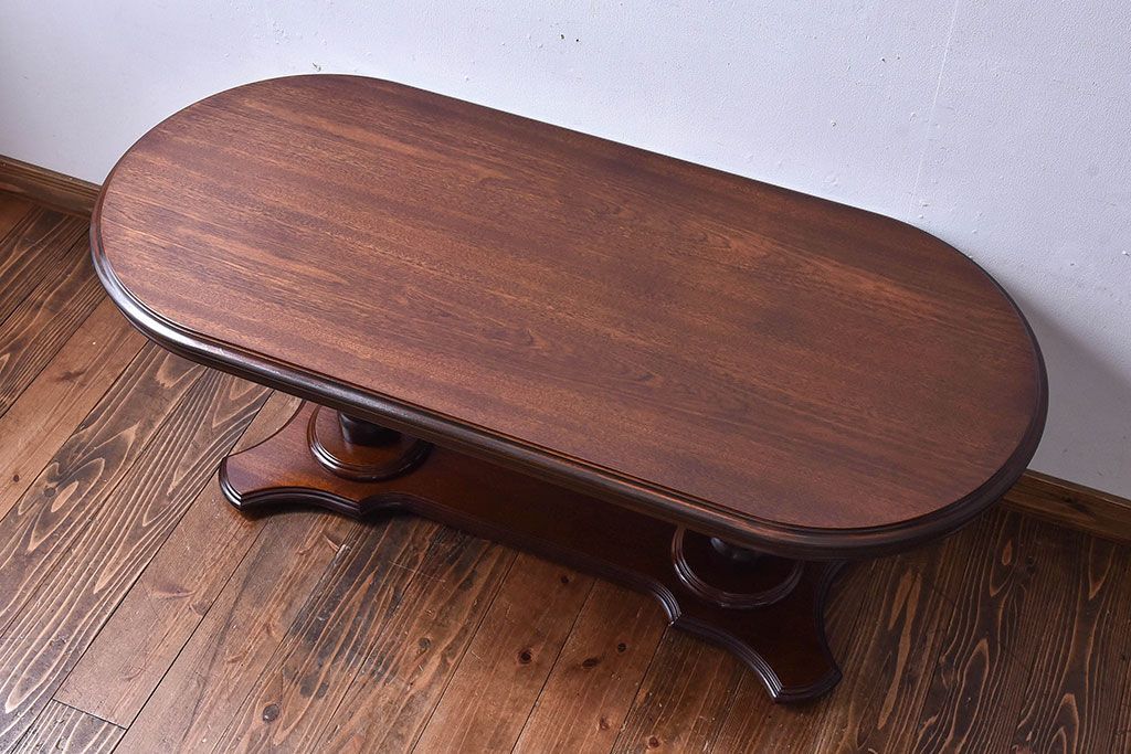 イギリスビンテージ マホガニー材 経年による褐色が美しいセンターテーブル(リビングテーブル)です。