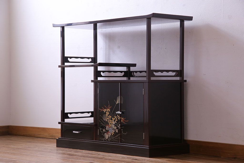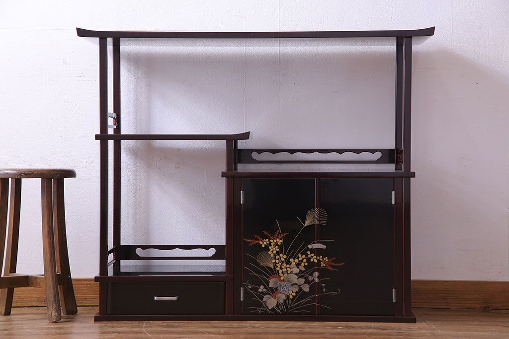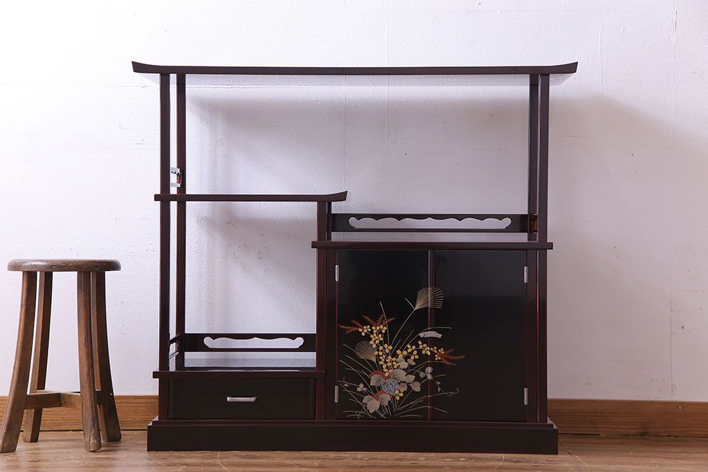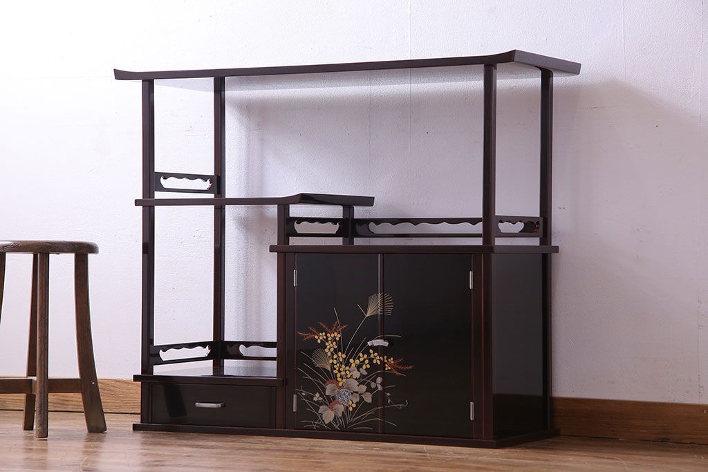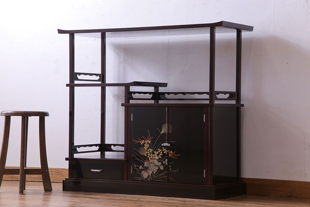 中古 民芸家具 高級品 螺鈿と蒔絵が施された上質な飾り棚(定価約98万円)