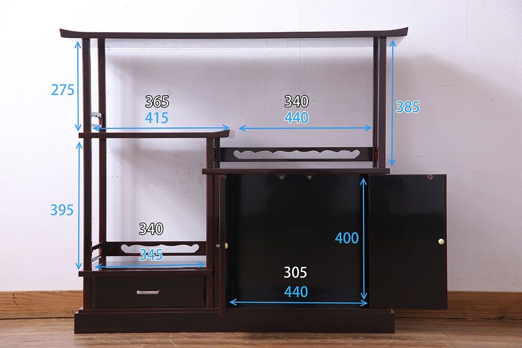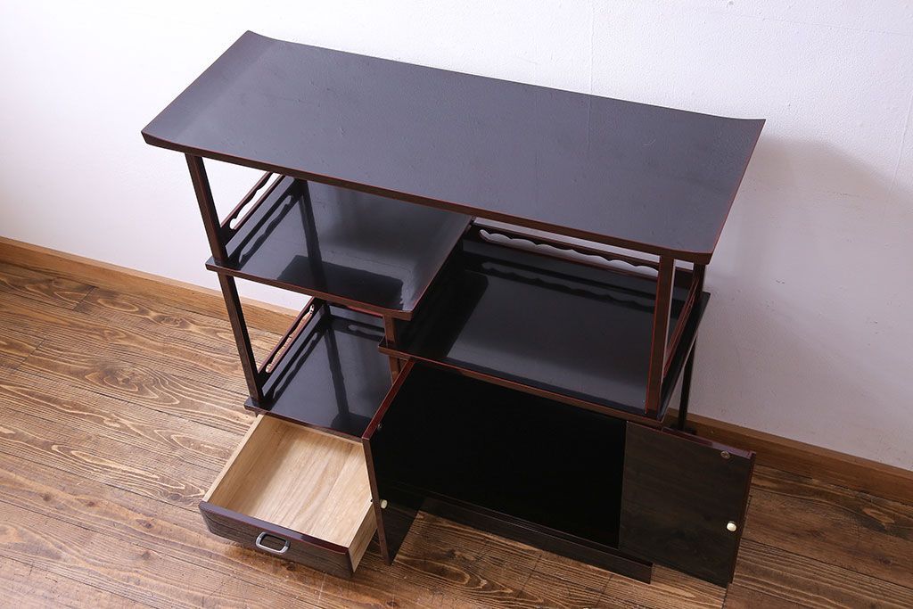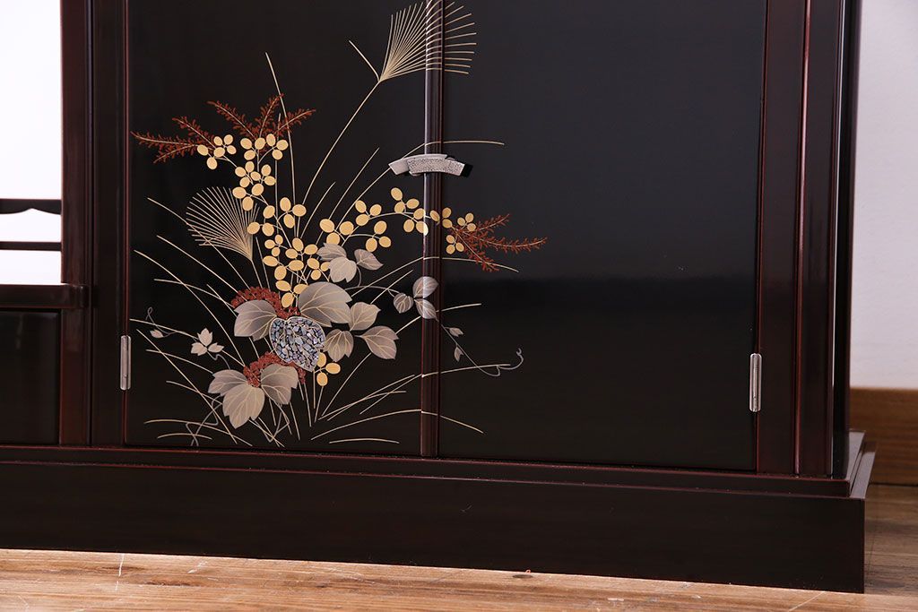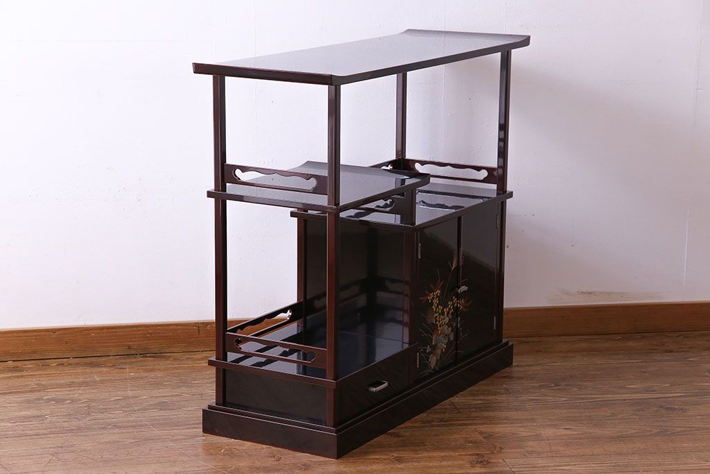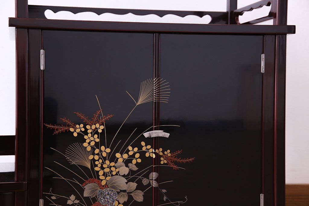 中古 民芸家具 高級品 螺鈿と蒔絵が施された上質な飾り棚(定価約98万円)