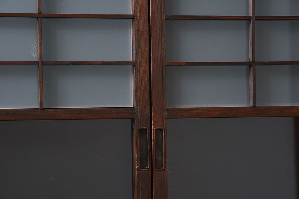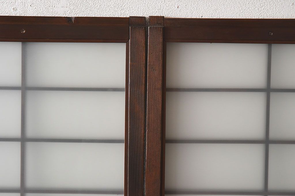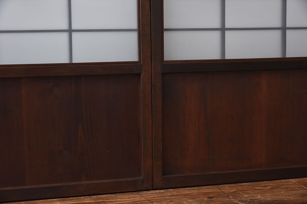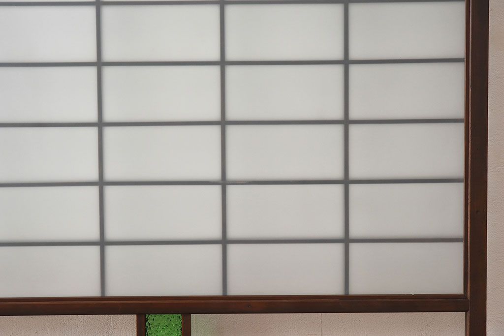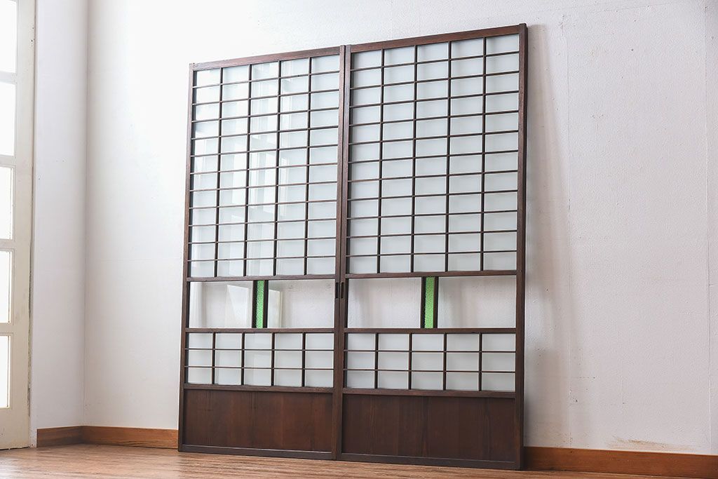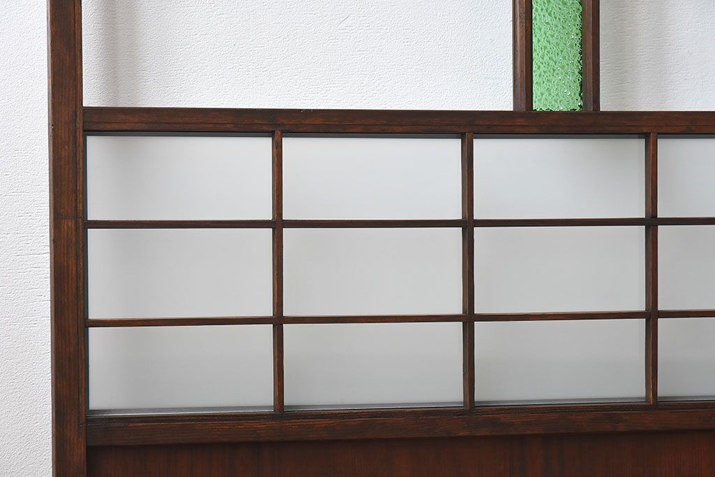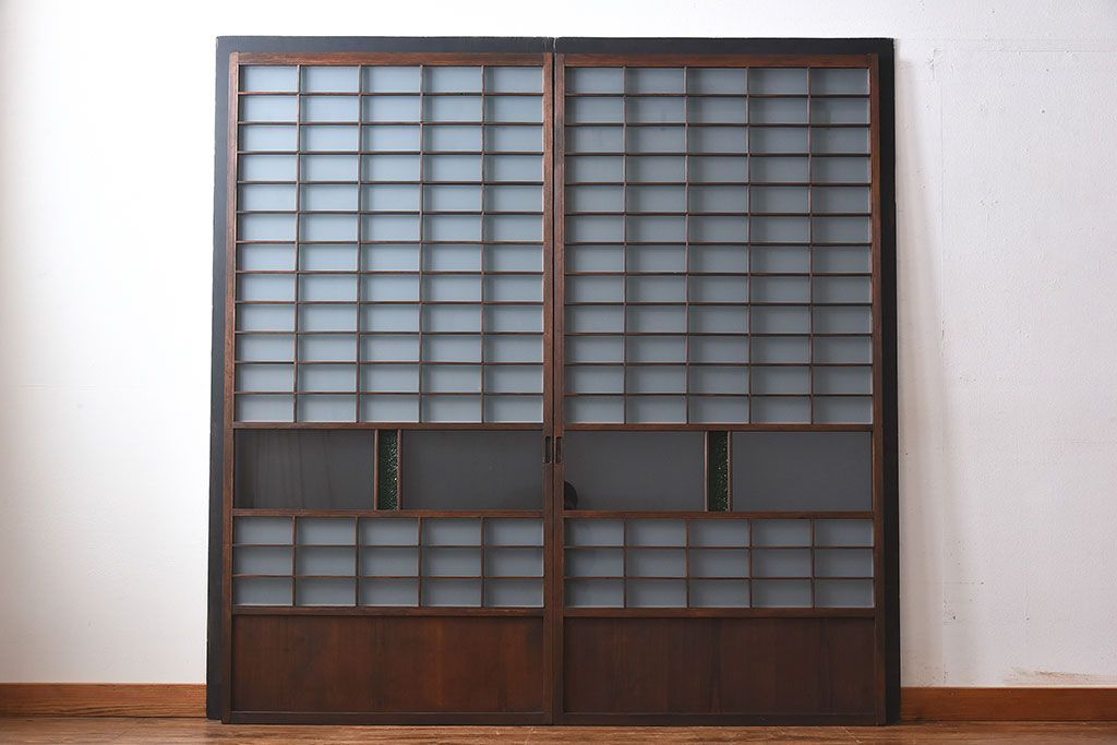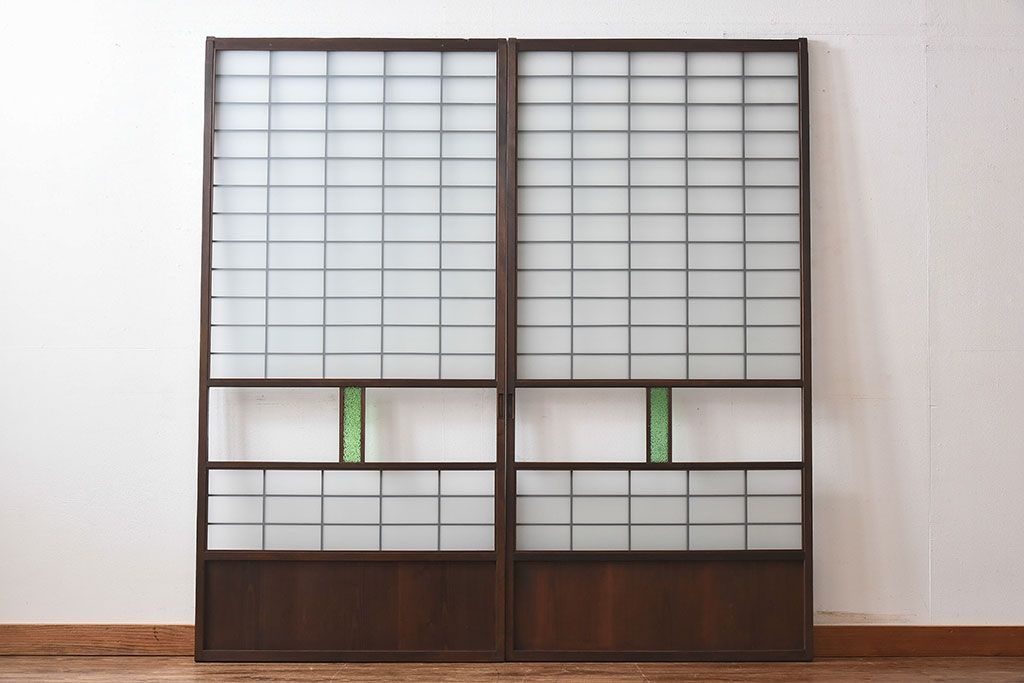 和製アンティーク 色ガラスがおしゃれなガラス障子戸(格子戸、引き戸、建具)2枚セット