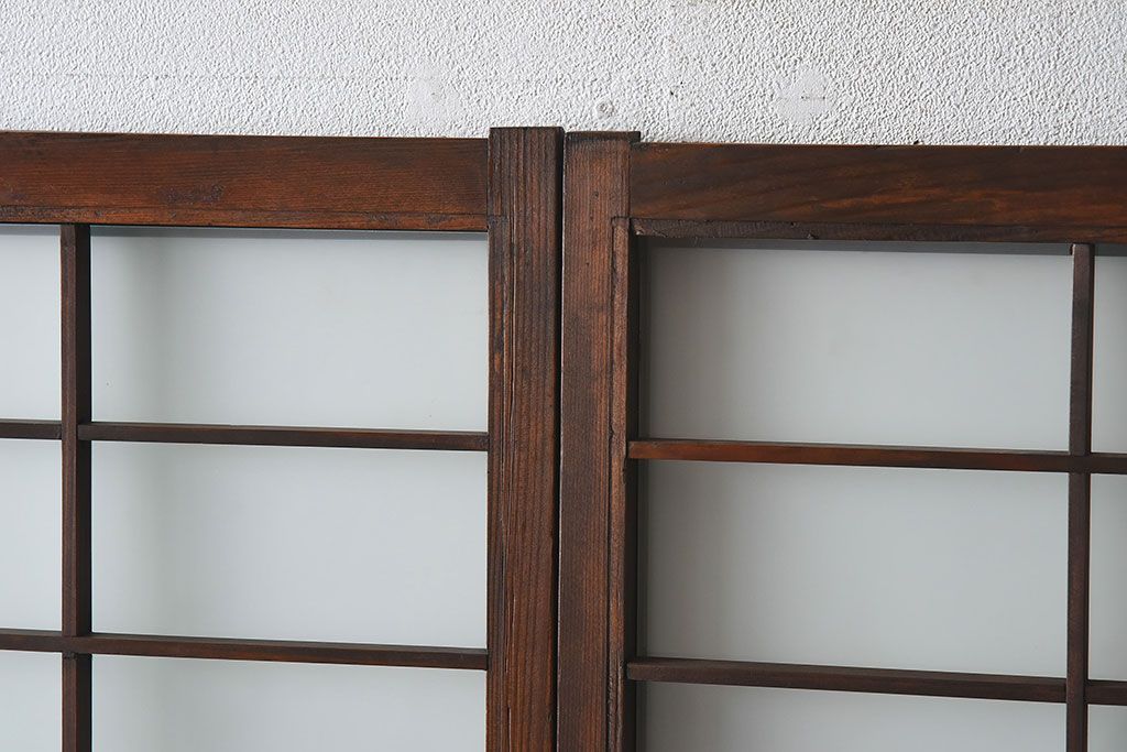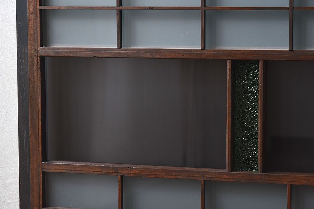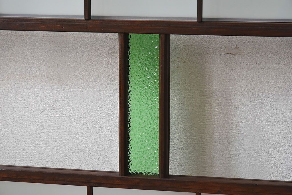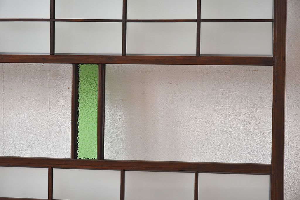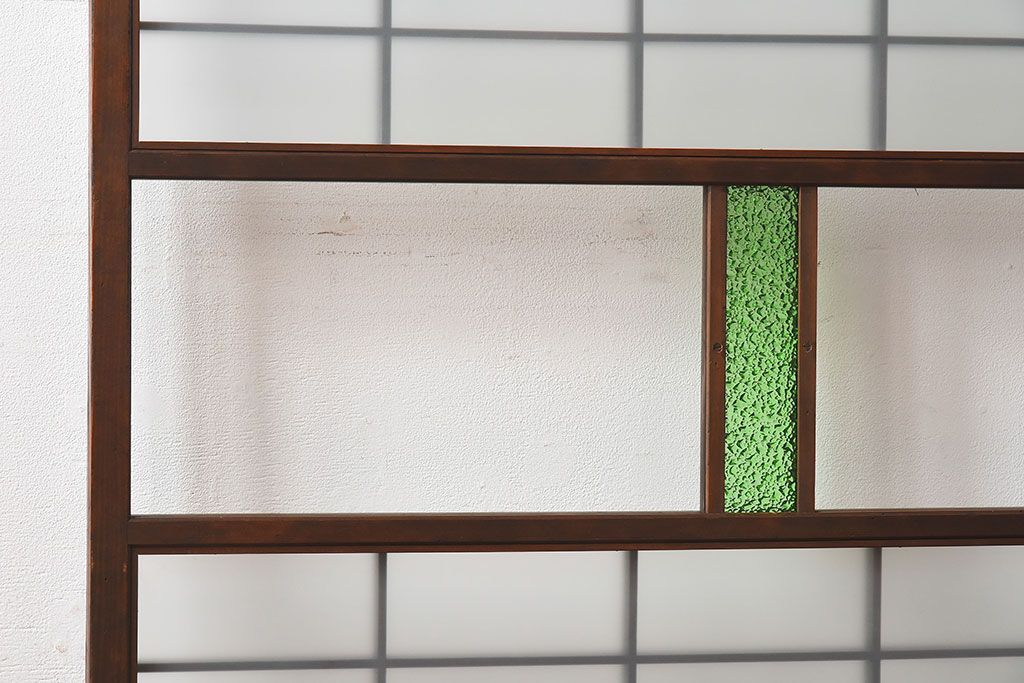和製アンティーク 色ガラスがおしゃれなガラス障子戸(格子戸、引き戸、建具)2枚セットです。