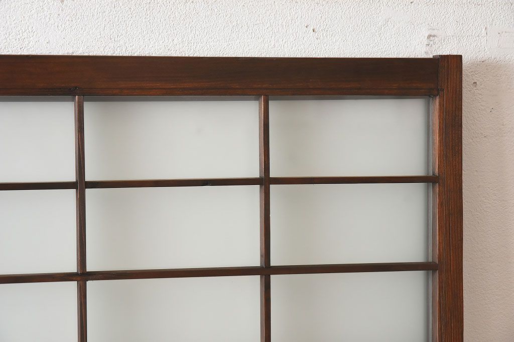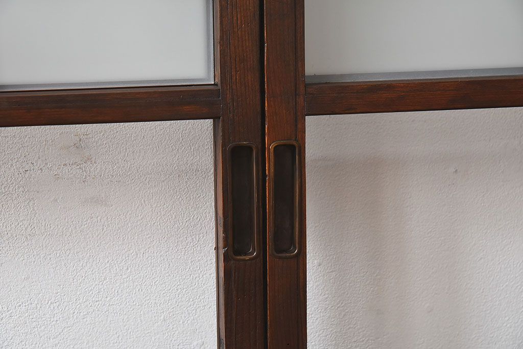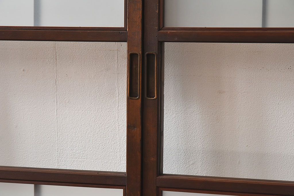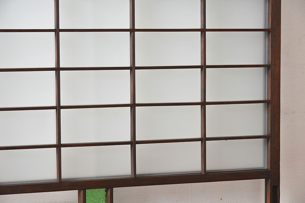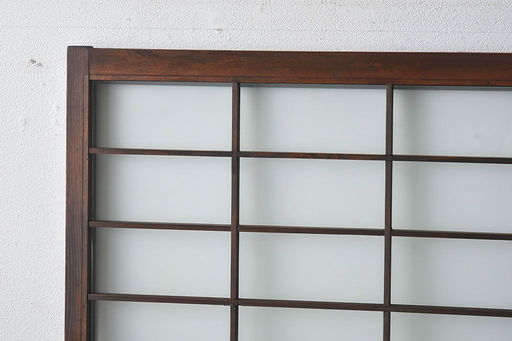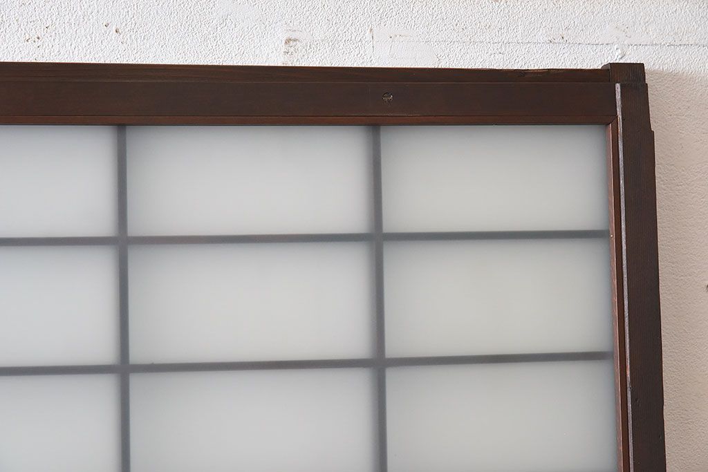 和製アンティーク 色ガラスがおしゃれなガラス障子戸(格子戸、引き戸、建具)2枚セットです。