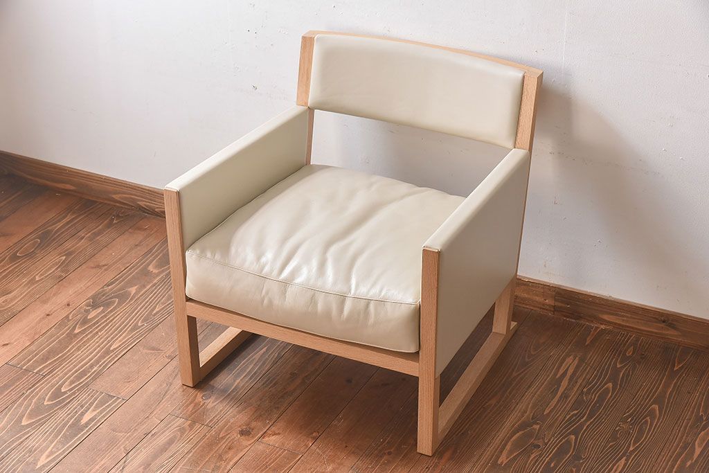 現代的な感覚と古典をテーマにモダンクラシックな家具をデザインするB&B Italia社のアームチェアです。B&B Italiaの代表的なデザイナーであるアントニオ・チッテリオが監修している「MAXALTO」のSimplice Collectionシリーズで、一切の無駄をそぎ落とした厳格なまでのシンプルなラインが美しい一品です。白のレザーと明るい木色が調和した、洗練された佇まいが素敵ですね。広めの座面と厚みのあるクッションがゆったりとした座り心地を演出してくれる、リラックスタイムにぴったりのお品です。