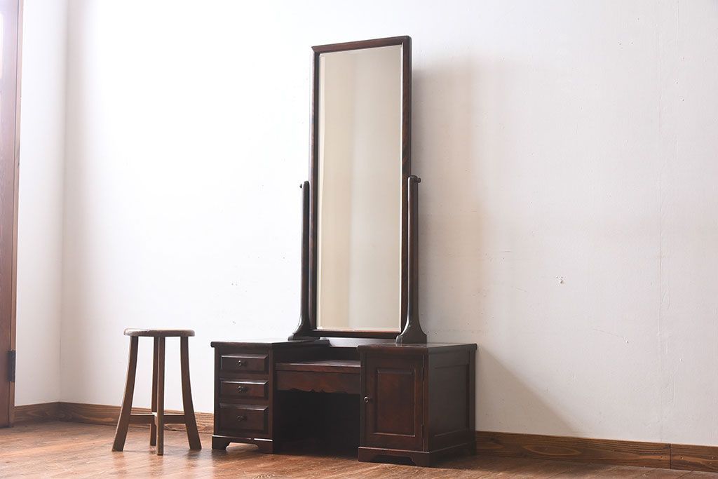 ラフジュ工房> 民芸家具 > アンティーク雑貨 中古 北海道民芸家具 ミラーの角度調節可能!上品な雰囲気漂うアンティークドレッサー(鏡台)