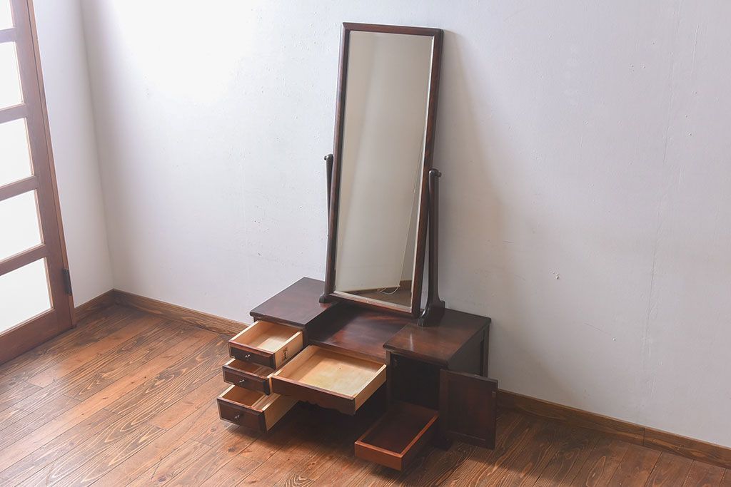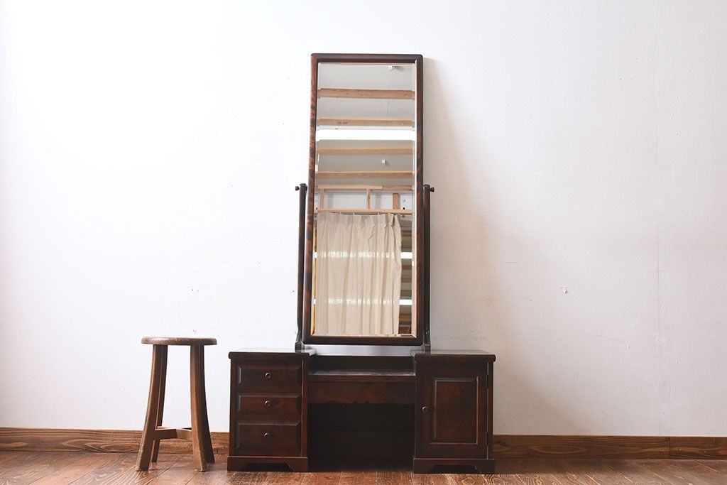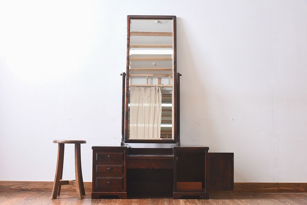 アンティーク雑貨 中古 北海道民芸家具 ミラーの角度調節可能!上品な雰囲気漂うアンティークドレッサー(鏡台)