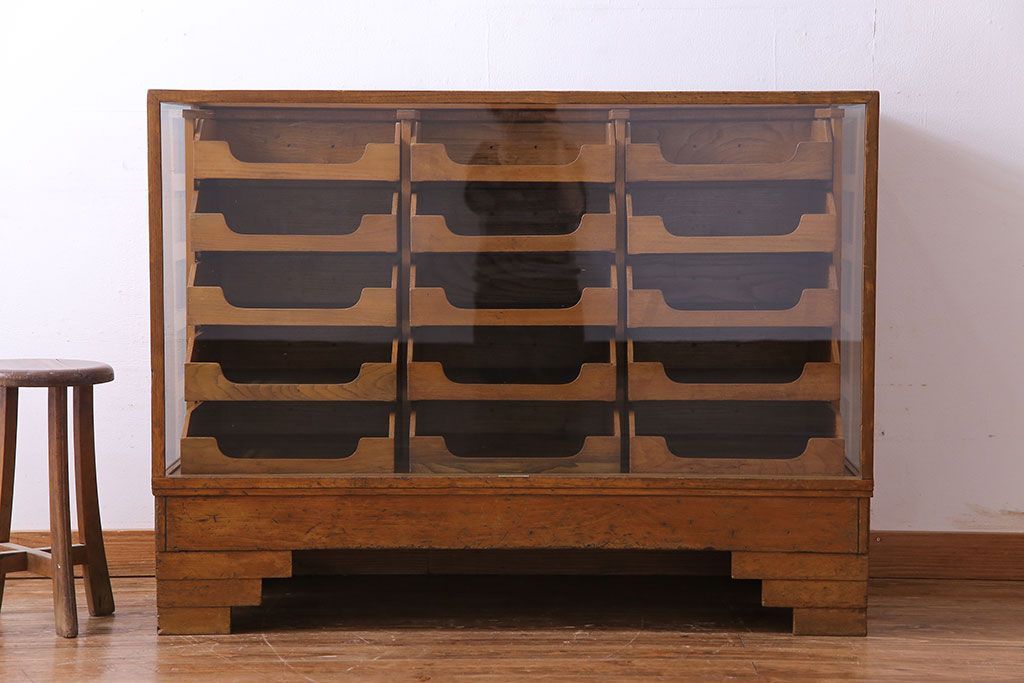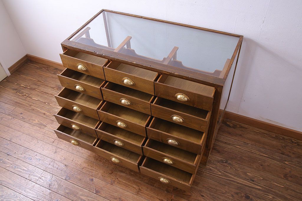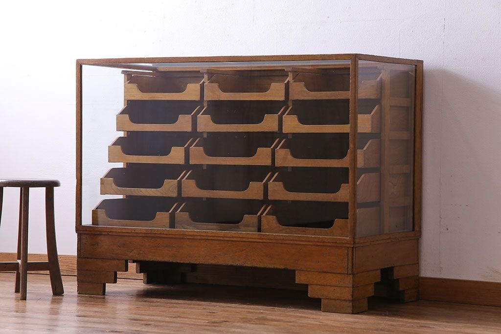 ラフジュ工房> 店舗什器 > ヴィンテージ家具 ビンテージ イギリス製 Dudley Co.Ltd HOLLWAY LONDON N7 味わい深い風合いのシャツケース(ガラスケース、ショーケース)