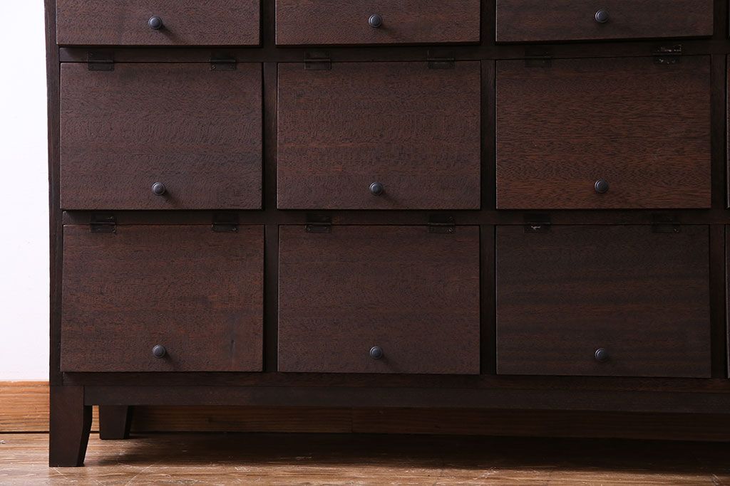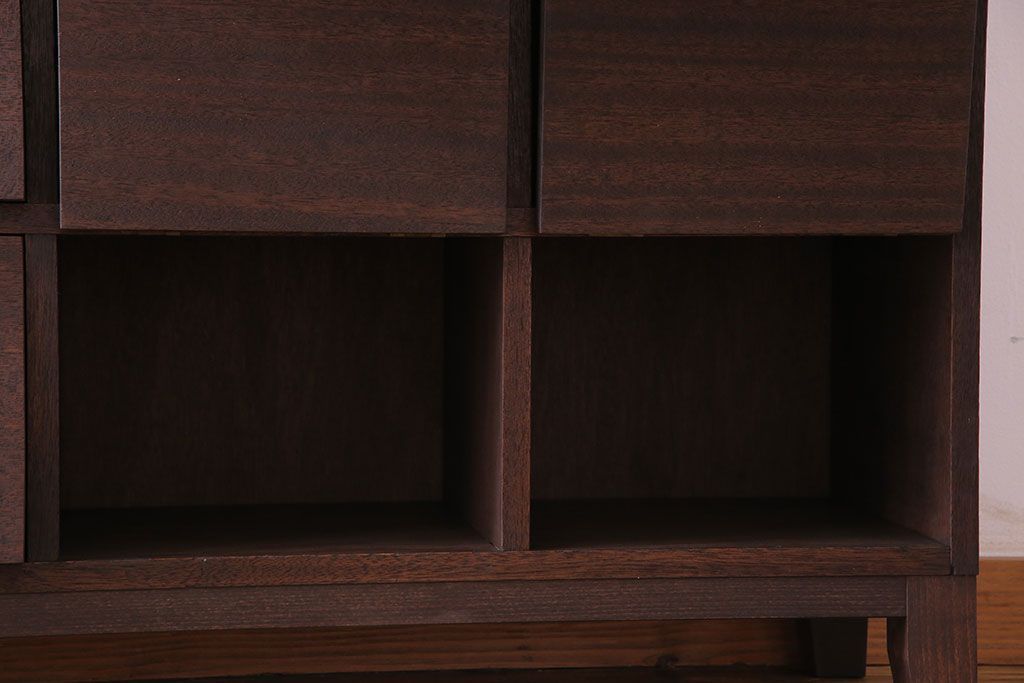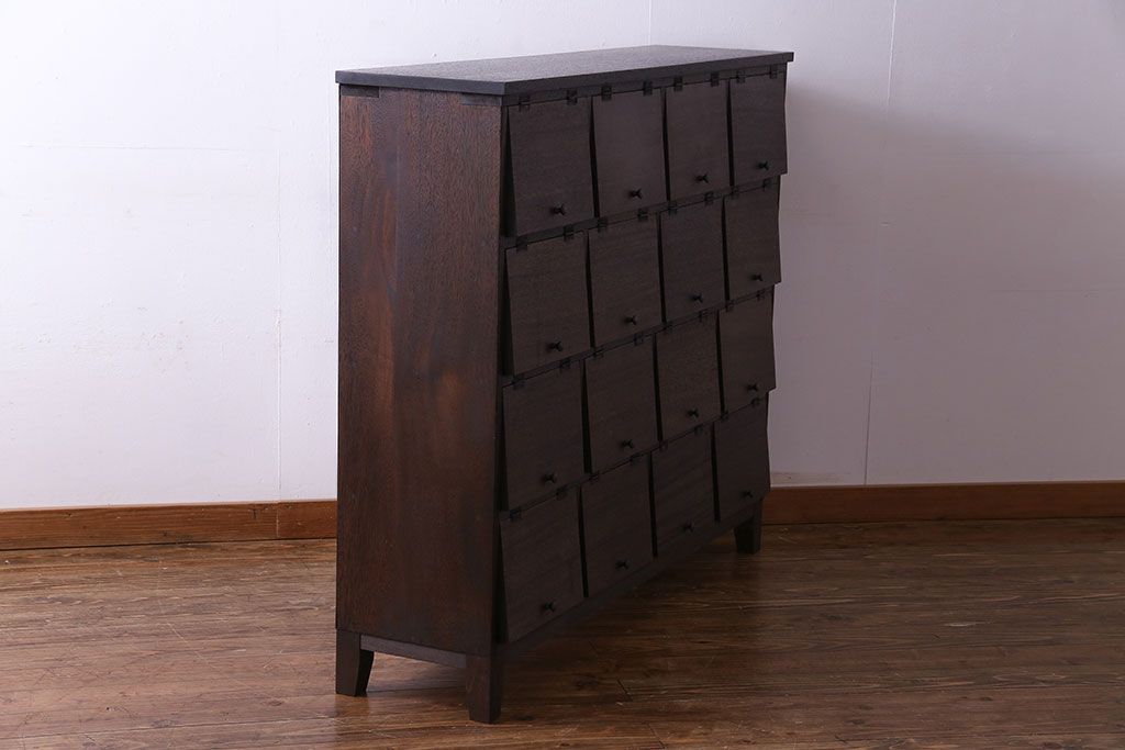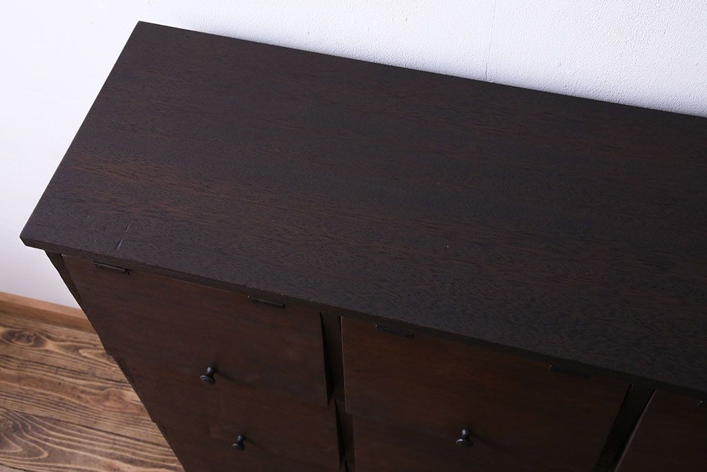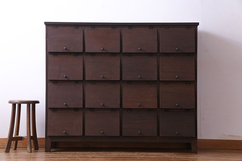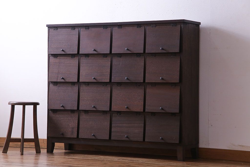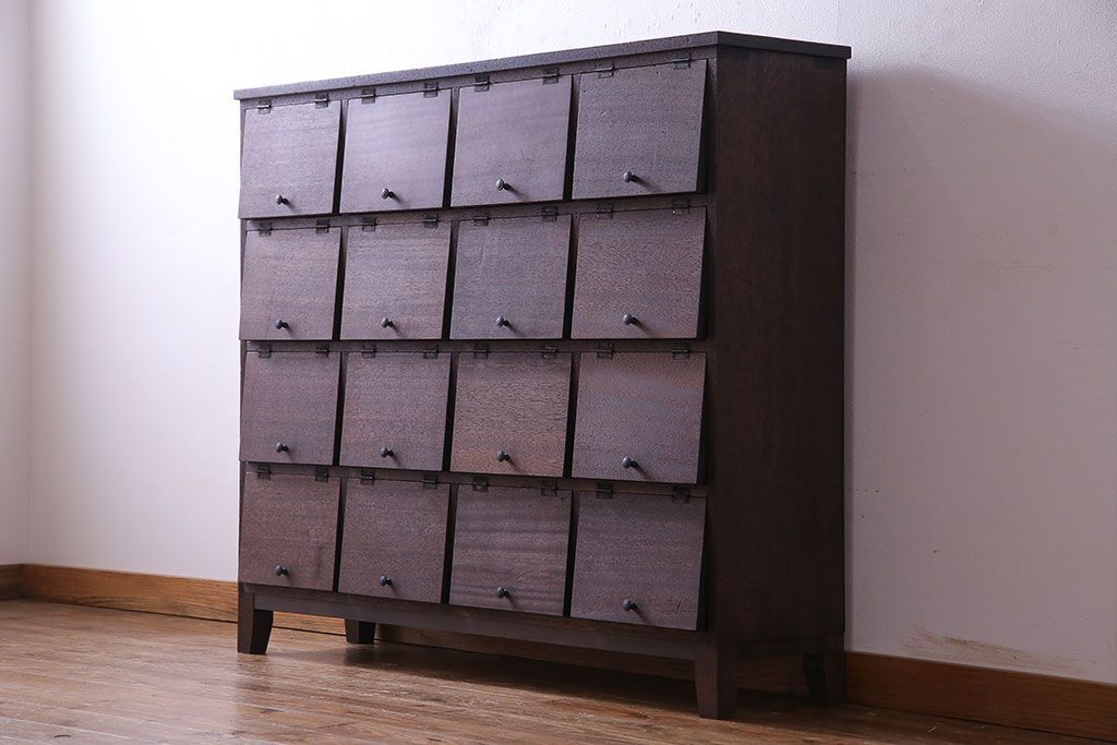 昭和レトロ 古材使用 4×4マス パタパタ扉付きのおしゃれなキャビネット(下駄箱、収納棚)です。