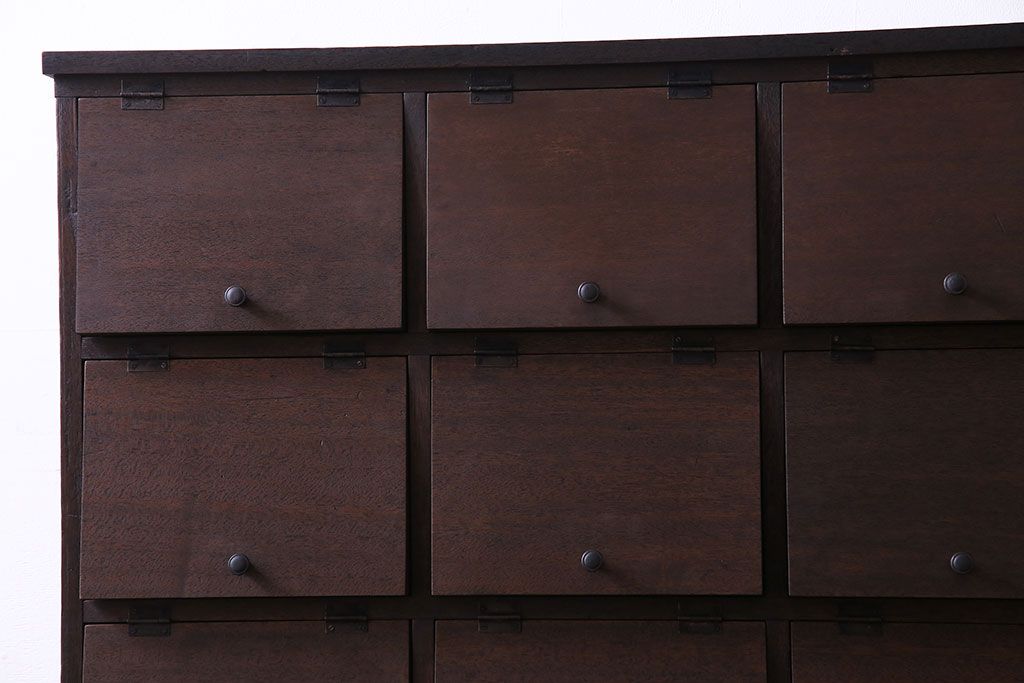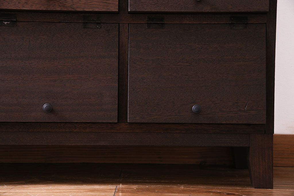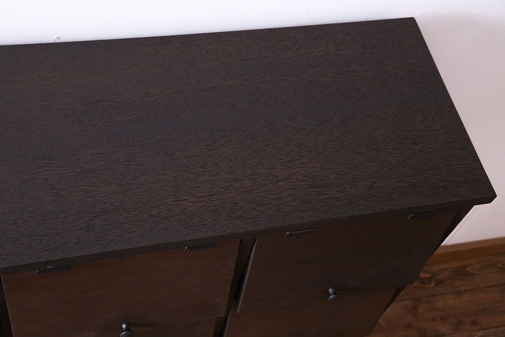 レトロ家具 昭和レトロ 古材使用 4×4マス パタパタ扉付きのおしゃれなキャビネット(下駄箱、収納棚)