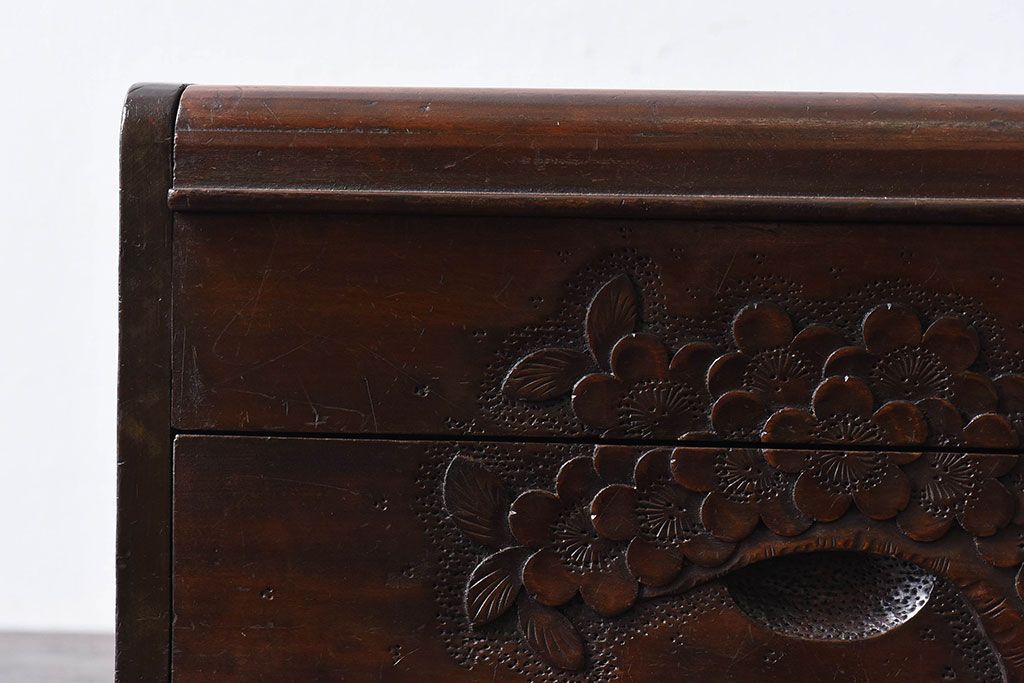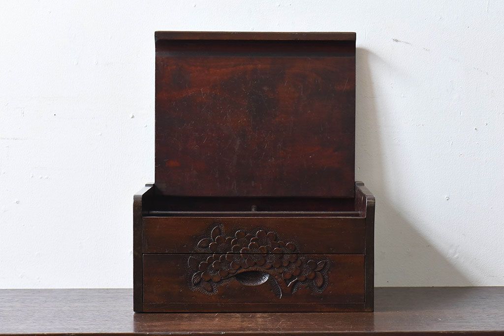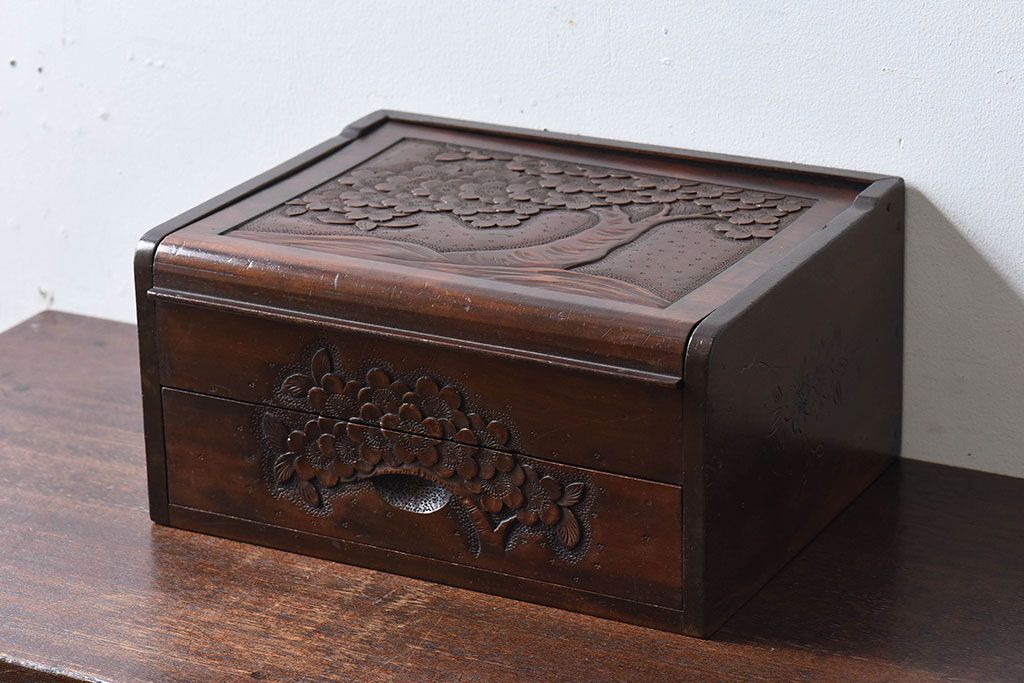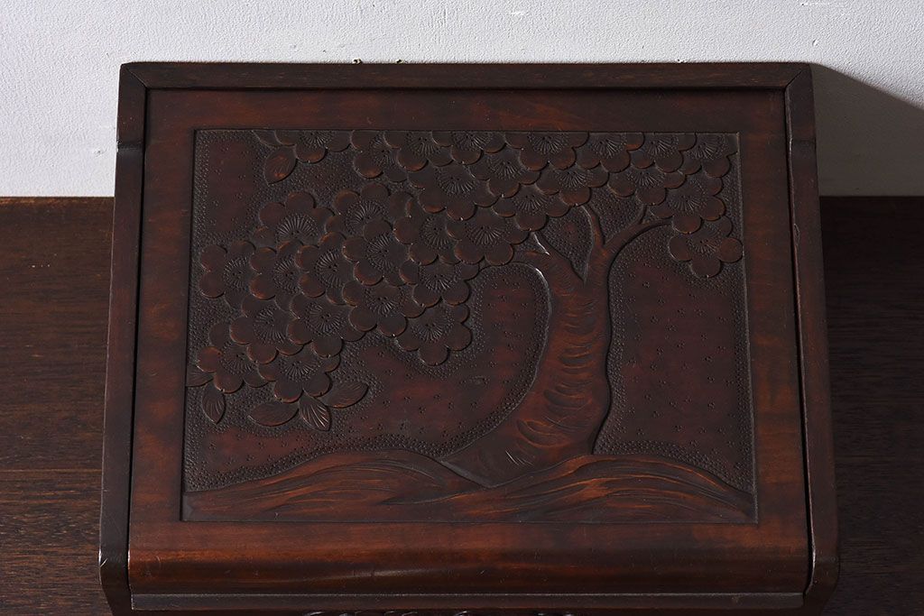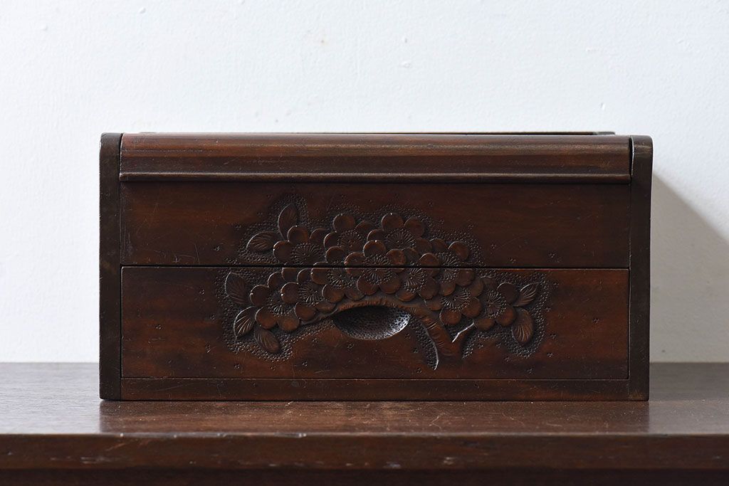 ヴィンテージ家具 ビンテージ 伝統工芸 軽井沢彫り シックな小物入れ(茶箱、木箱)
