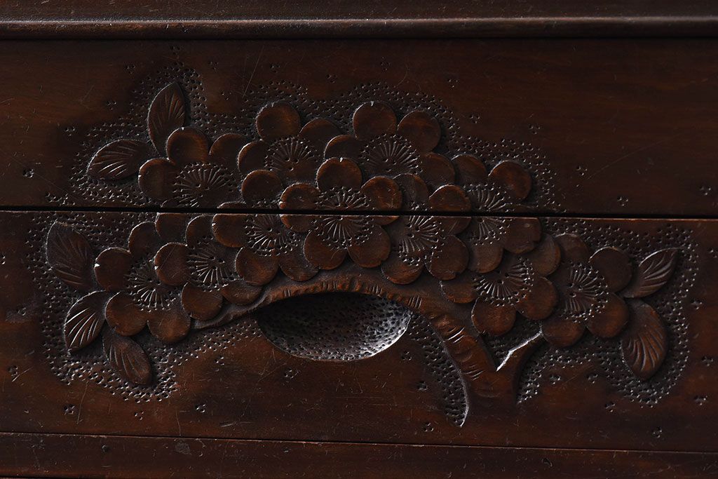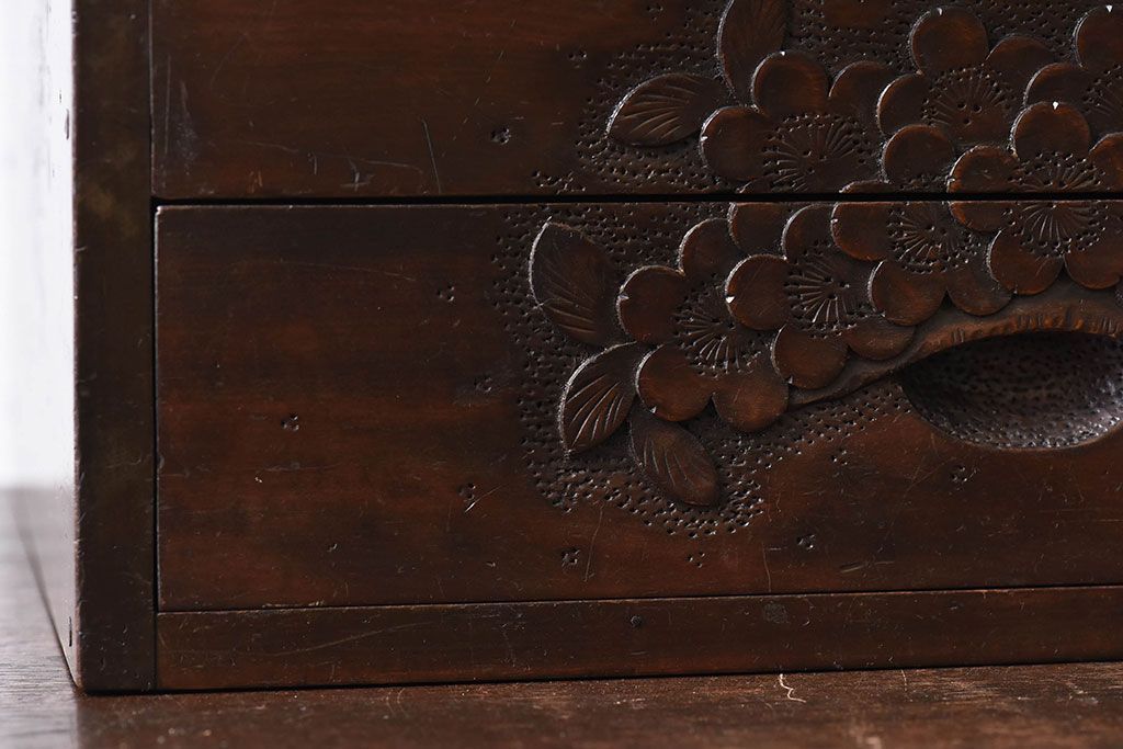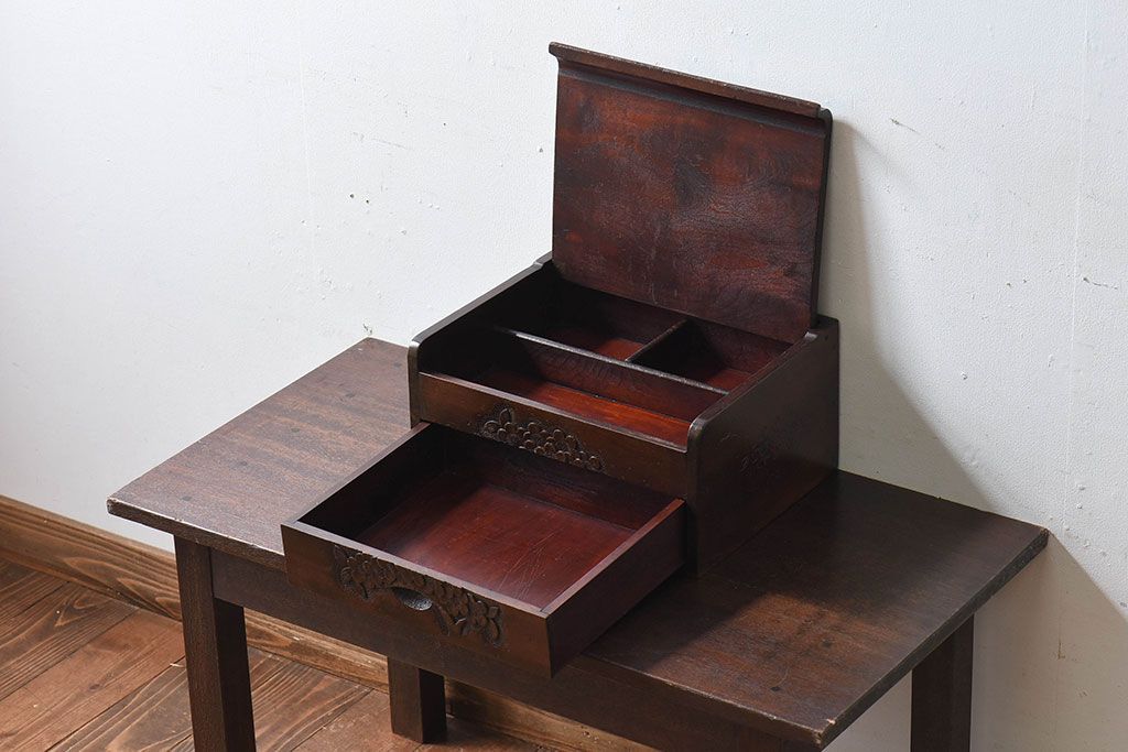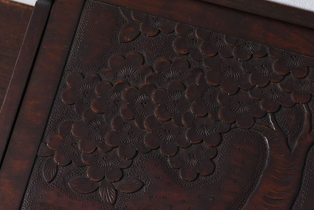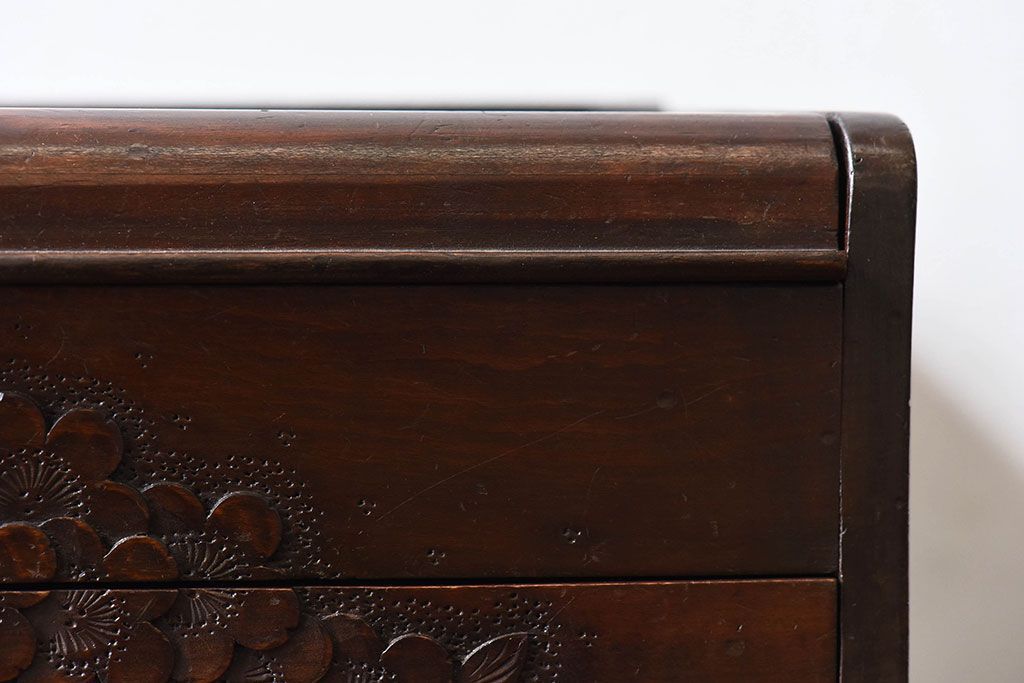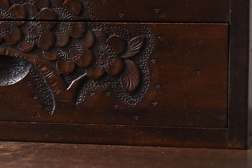 ヴィンテージ家具 ビンテージ 伝統工芸 軽井沢彫り シックな小物入れ(茶箱、木箱)