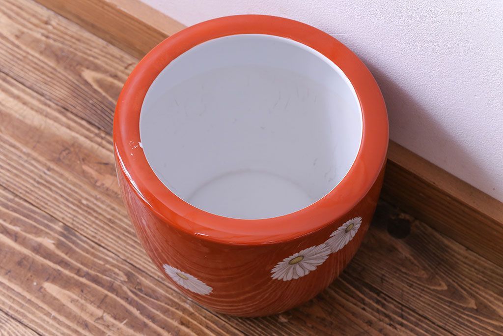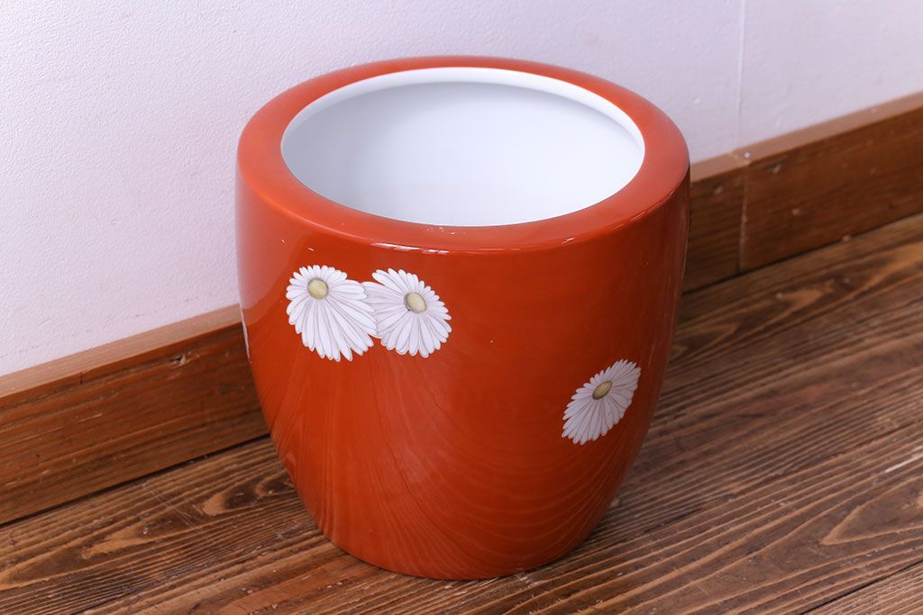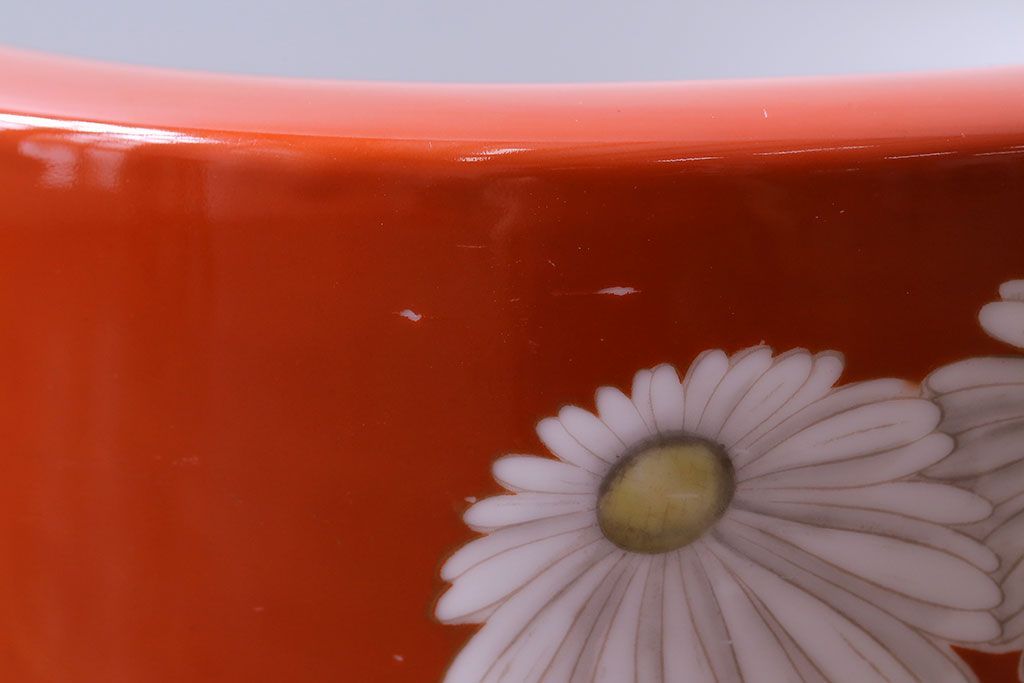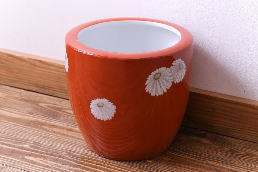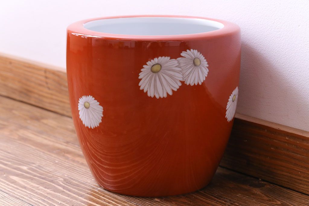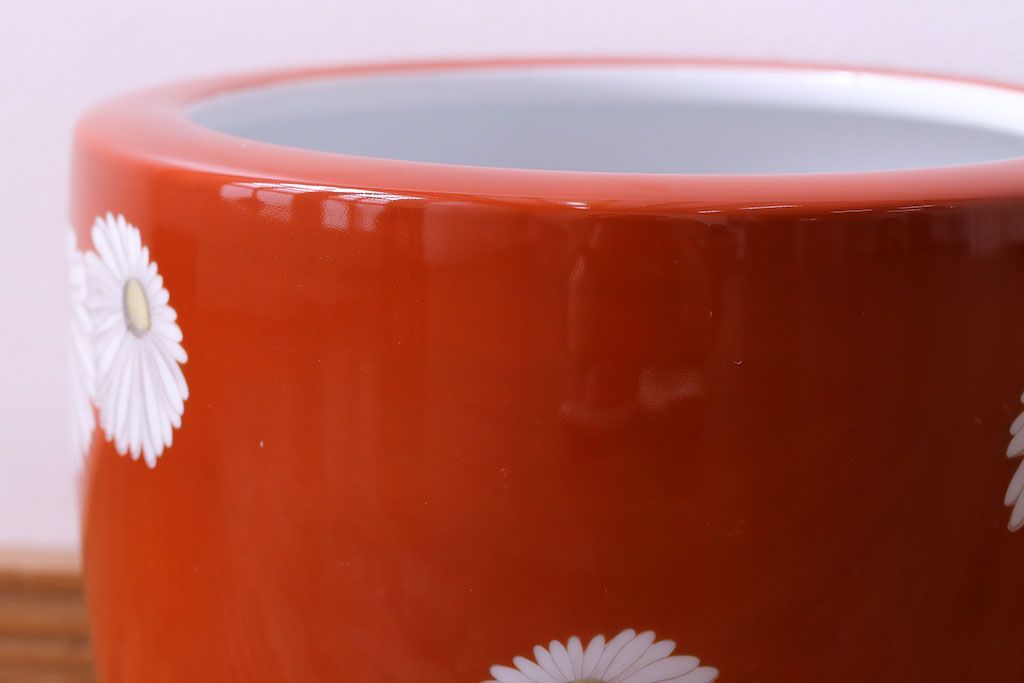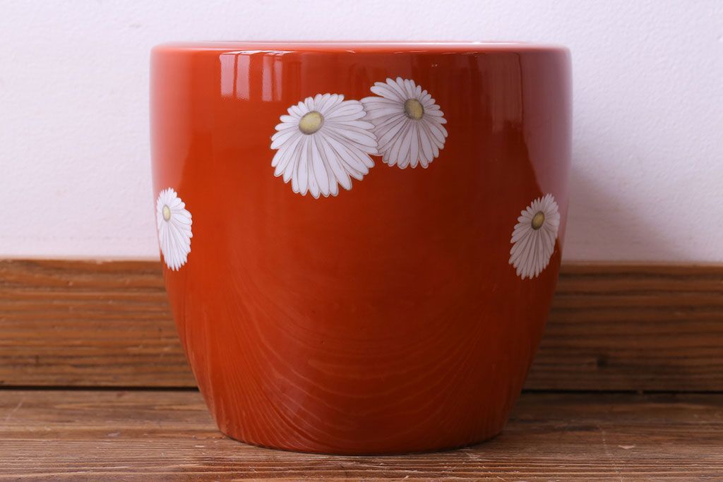 火鉢> 瀬戸火鉢 > アンティーク雑貨 オールドノリタケ(日陶) 朱色地白菊文様 レトロな壱型火鉢(手あぶり、鉢カバー)(2)