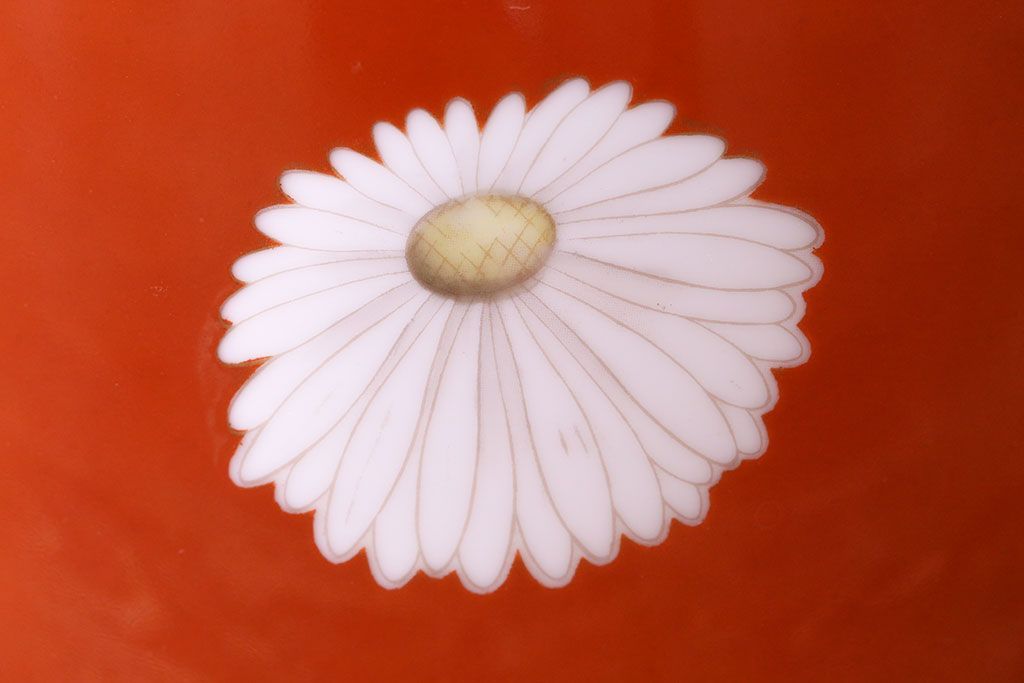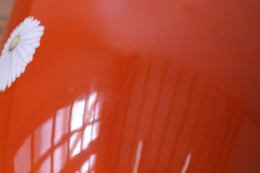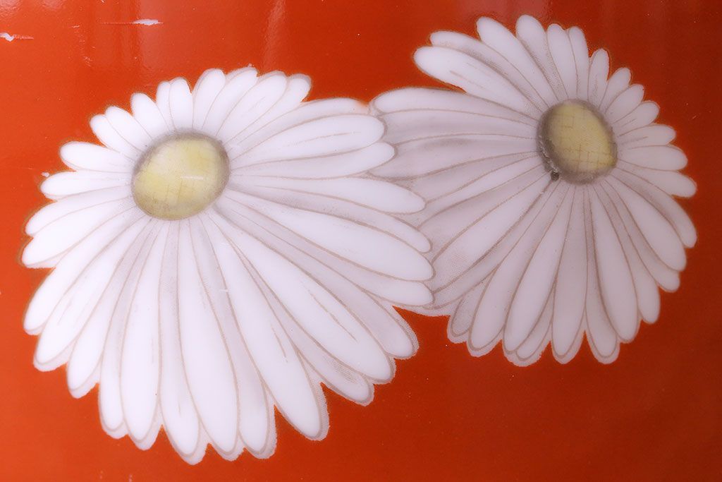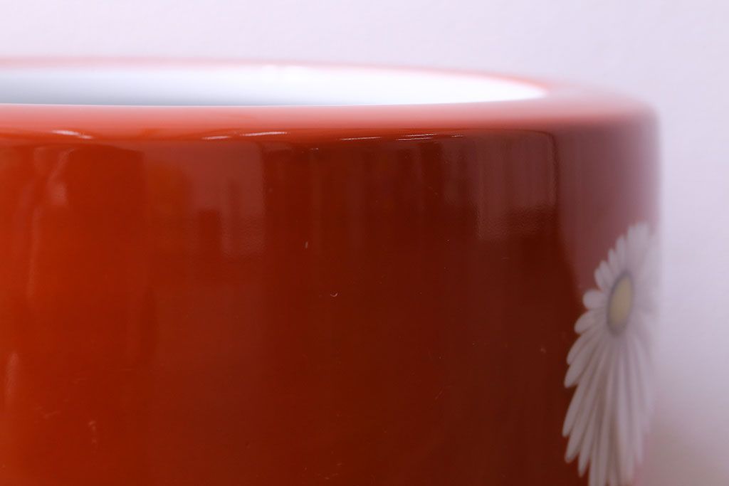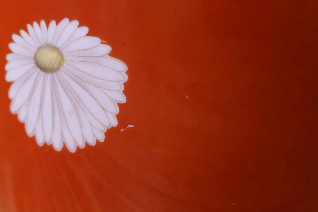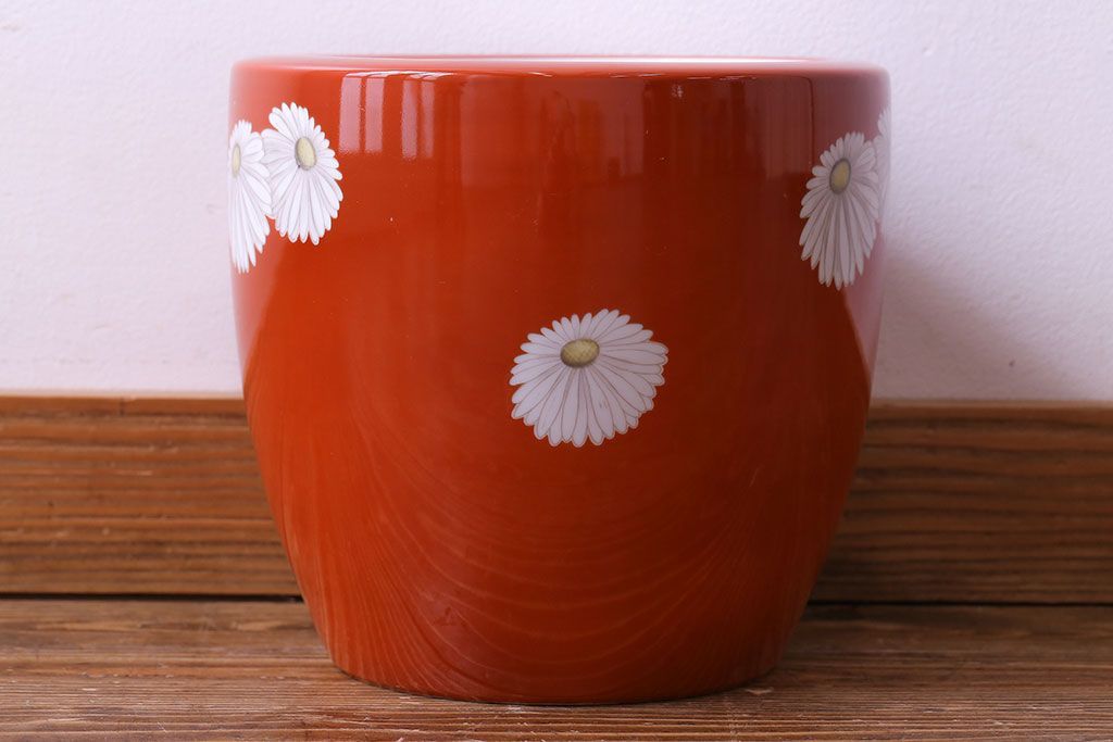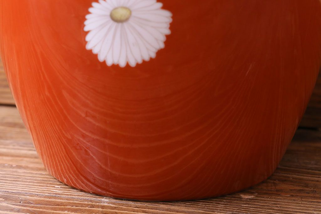 火鉢> 瀬戸火鉢 > アンティーク雑貨 オールドノリタケ(日陶) 朱色地白菊文様 レトロな壱型火鉢(手あぶり、鉢カバー)(2)