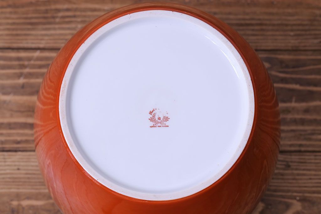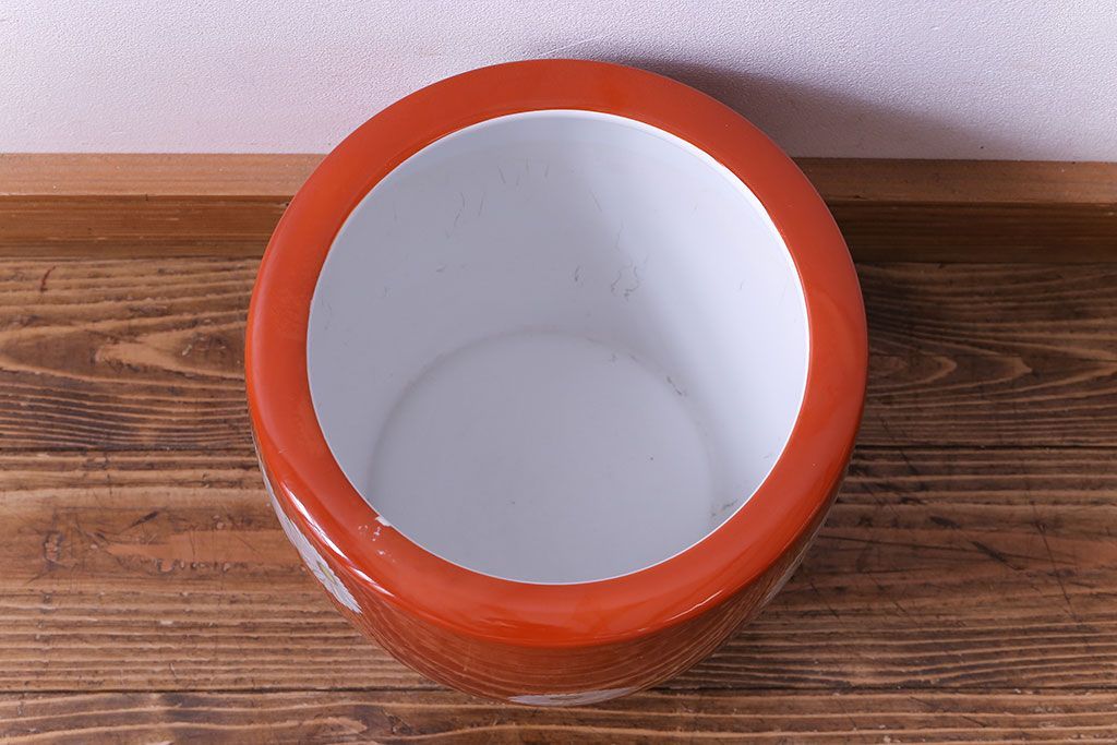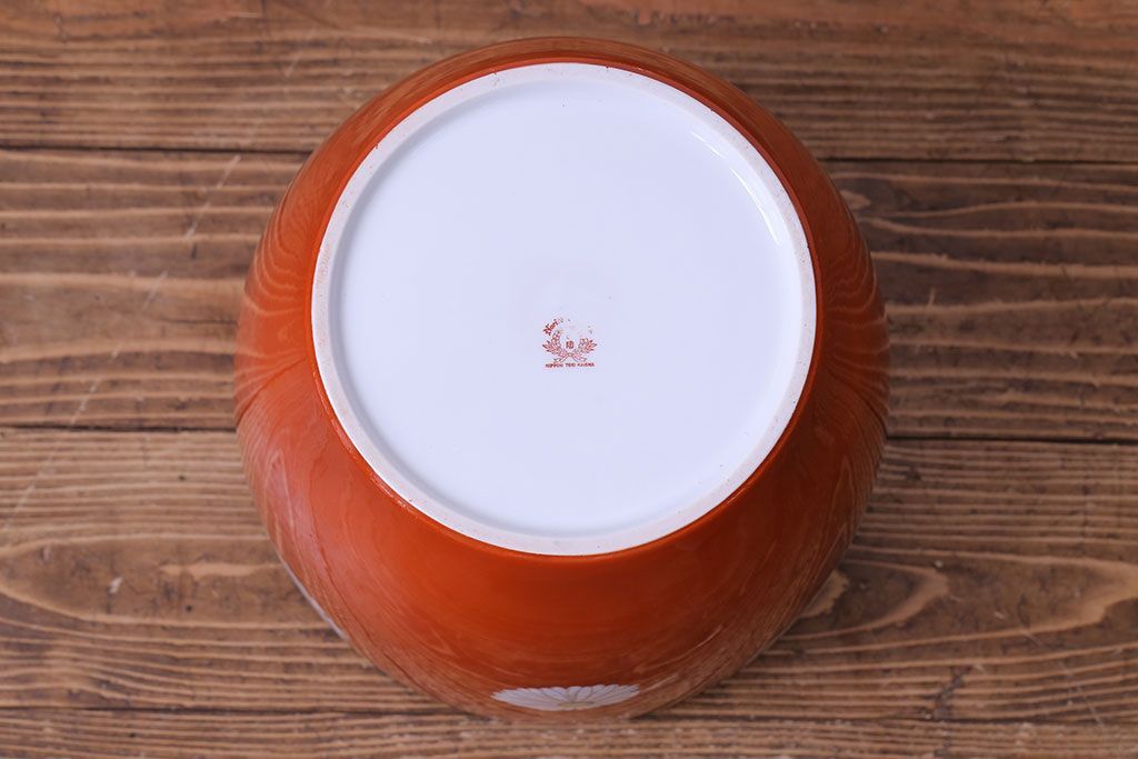 アンティーク雑貨 オールドノリタケ(日陶) 朱色地白菊文様 レトロな壱型火鉢(手あぶり、鉢カバー)(2)