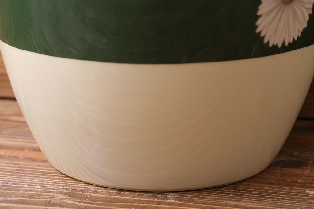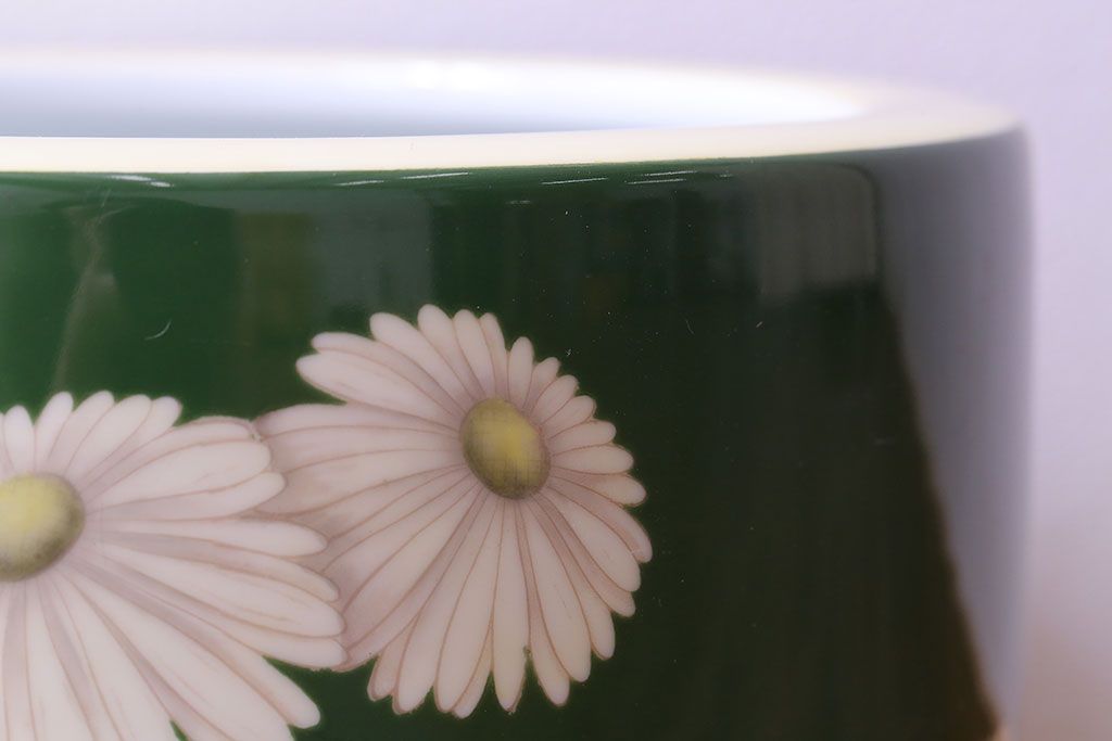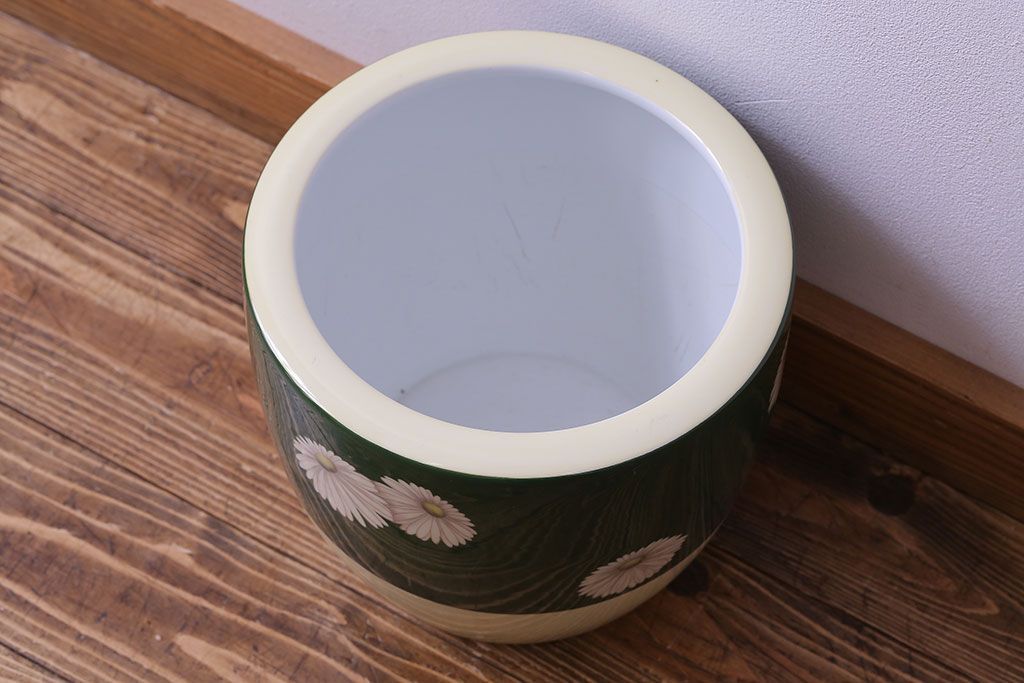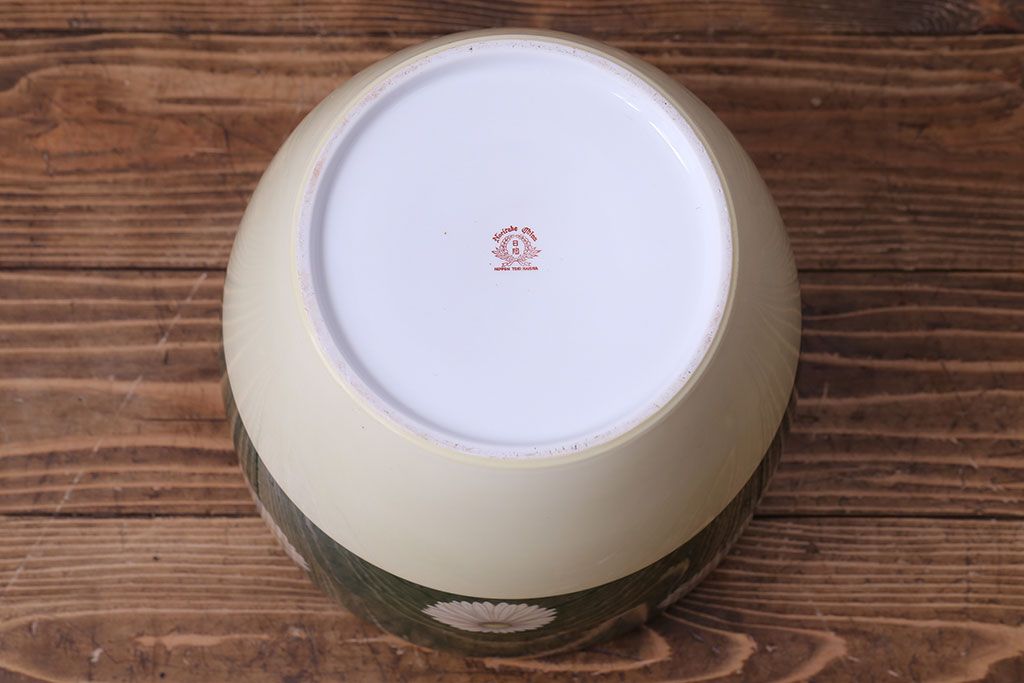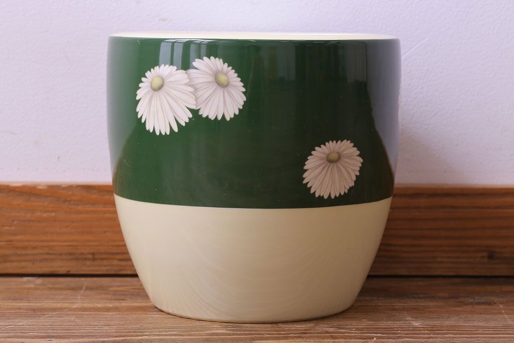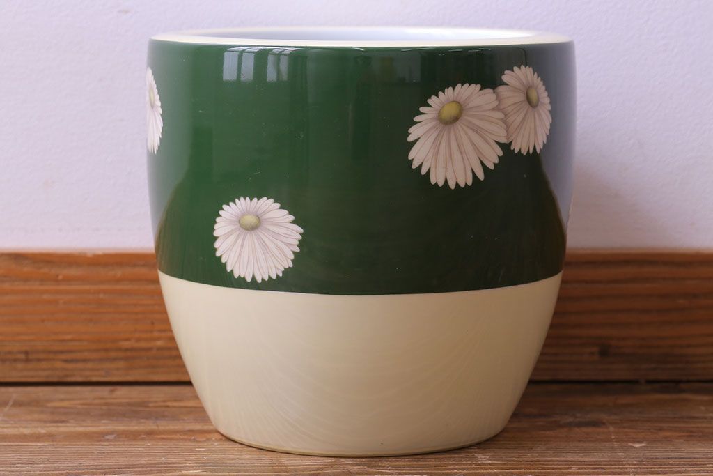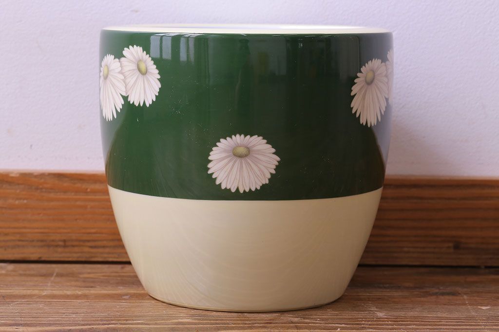 火鉢> 瀬戸火鉢 > アンティーク雑貨 オールドノリタケ(日陶) 緑地 白菊文様 バイカラーがおしゃれな壱型火鉢(手あぶり、鉢カバー)