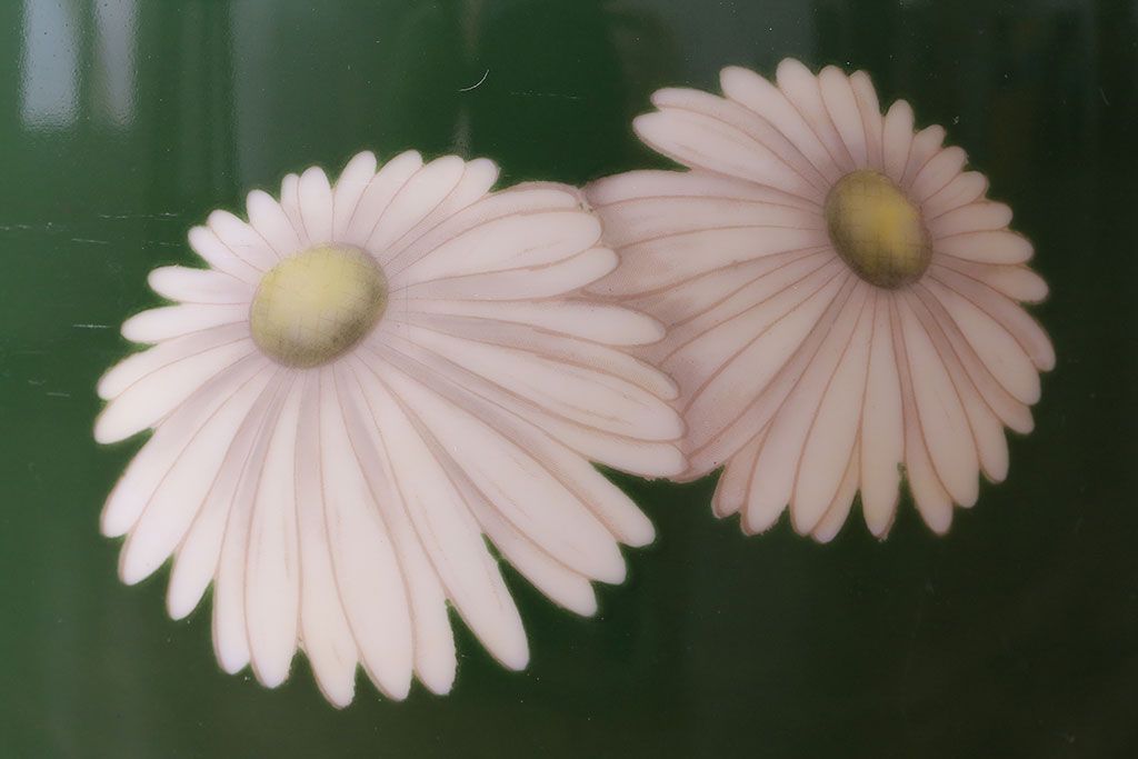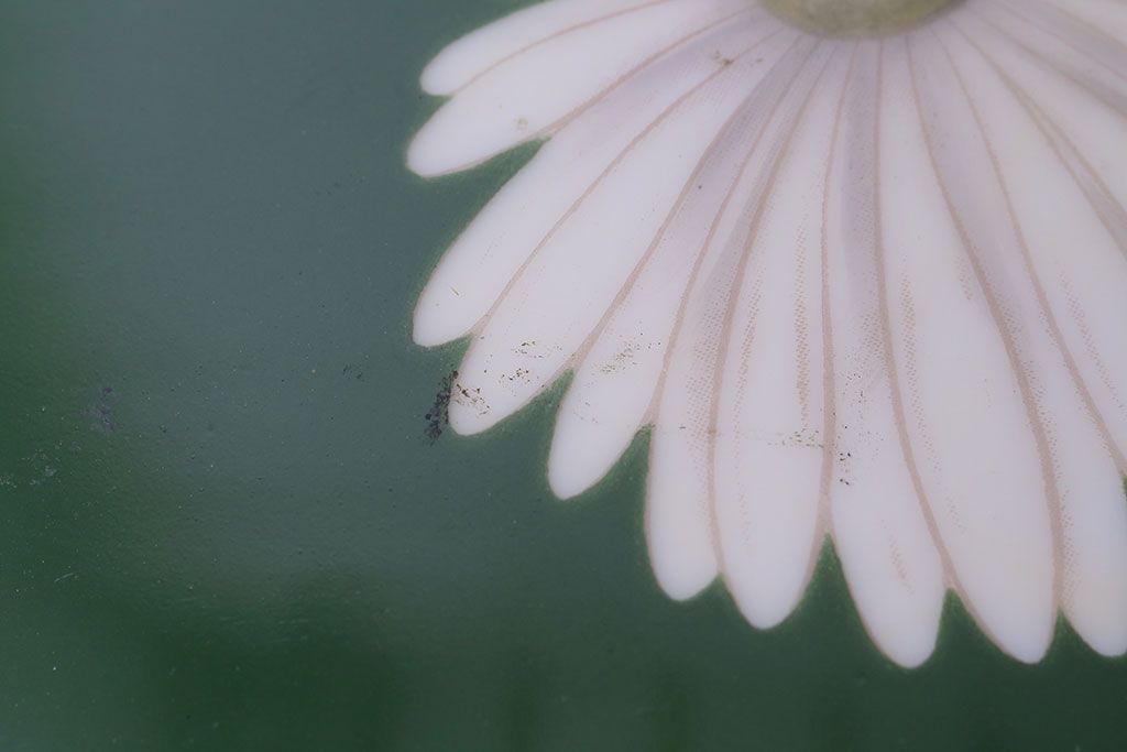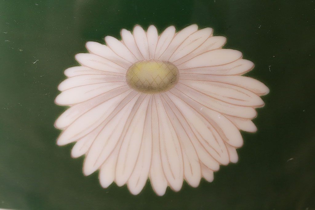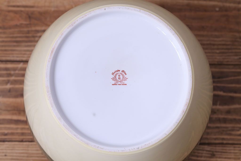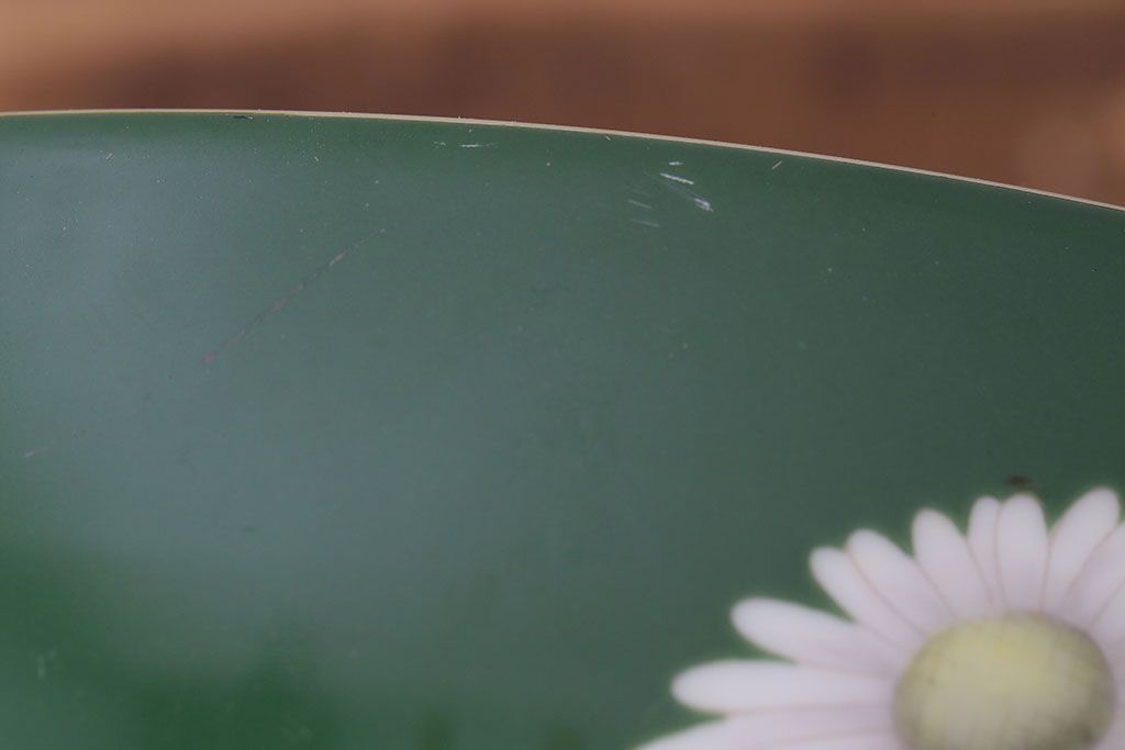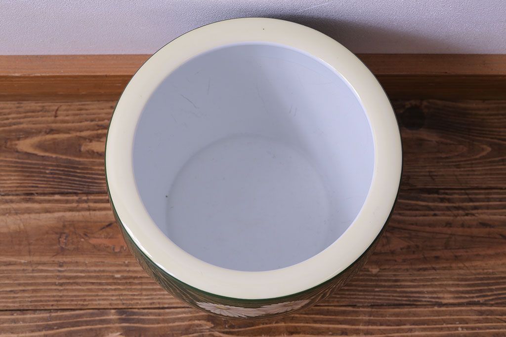 火鉢> 瀬戸火鉢 > アンティーク雑貨 オールドノリタケ(日陶) 緑地 白菊文様 バイカラーがおしゃれな壱型火鉢(手あぶり、鉢カバー)