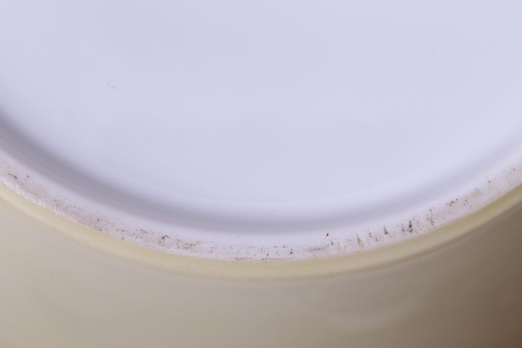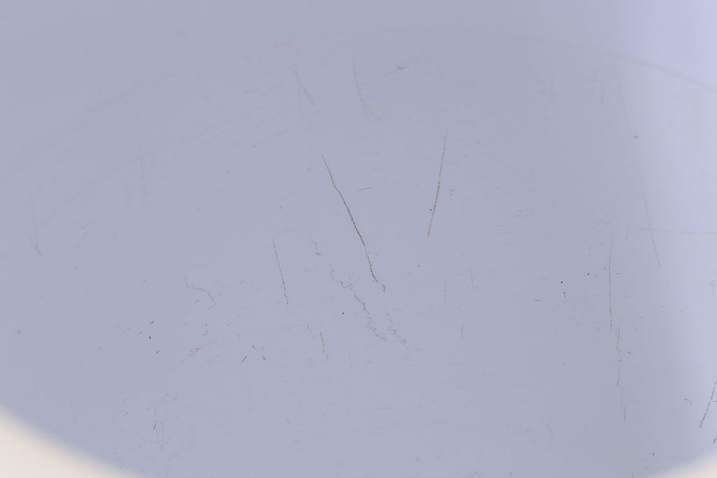 画像にありますように、内側に汚れのようなもの、高台に汚れ、側面に多少の汚れや細かな傷がありますが、ニュウ(ひび)、ホツ(欠け)等の大きなダメージはなく状態良好です。