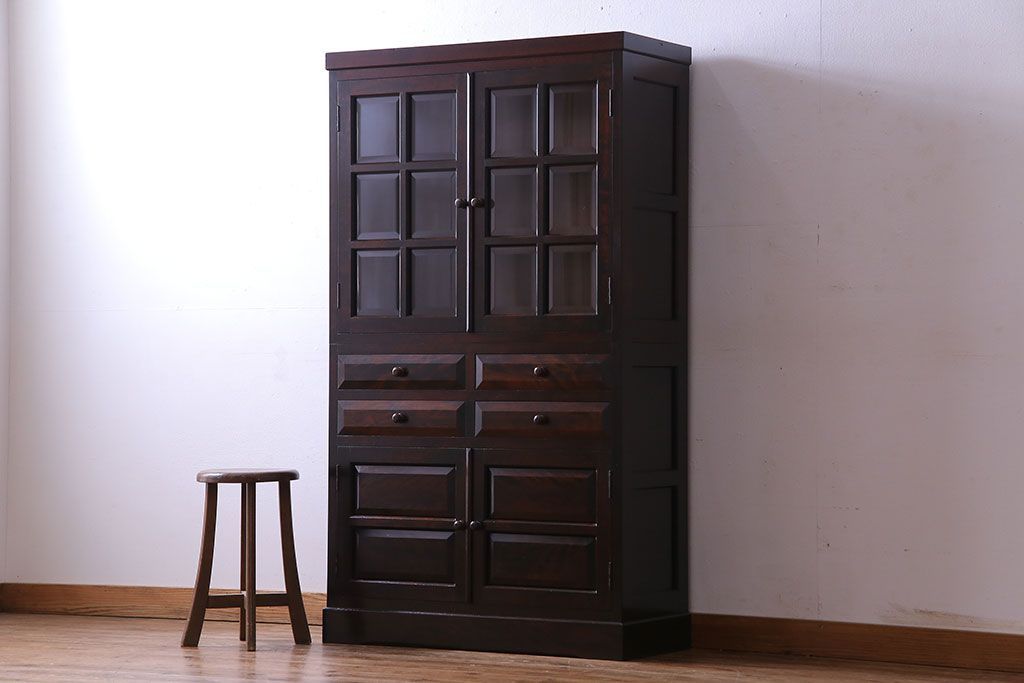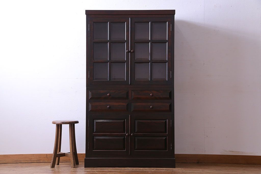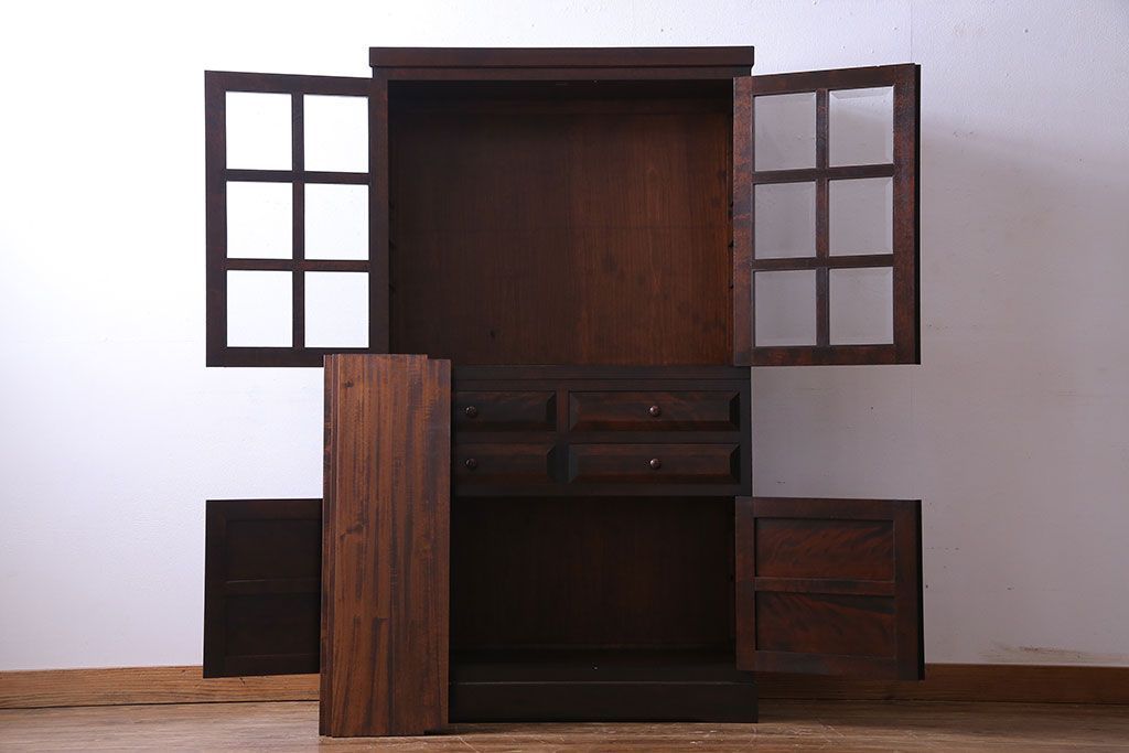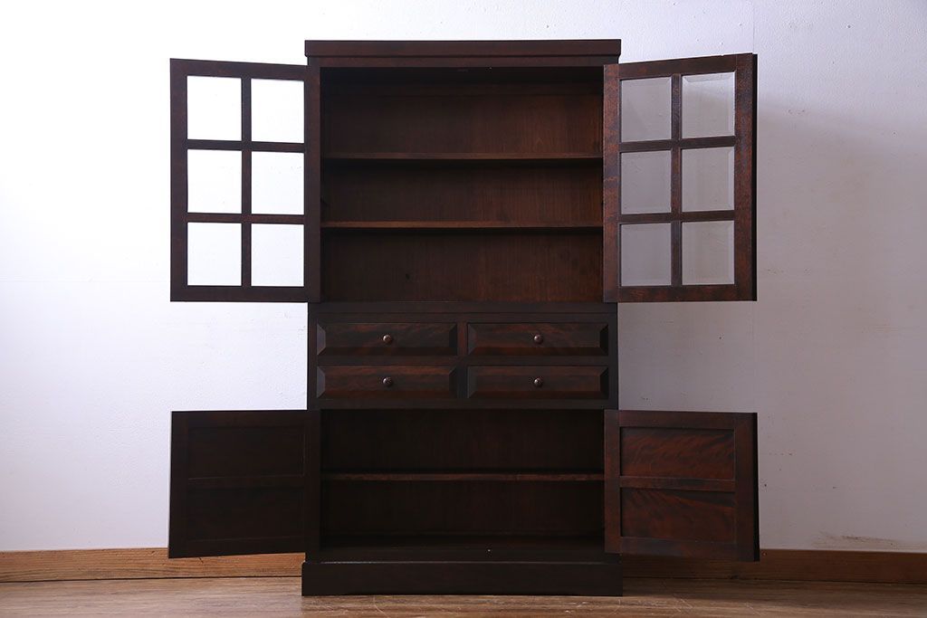 中古 松本民芸家具 G-1型 面取りカップボード(食器棚、本棚)(定価約41万4千円)(3)