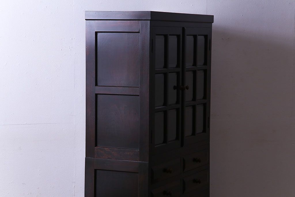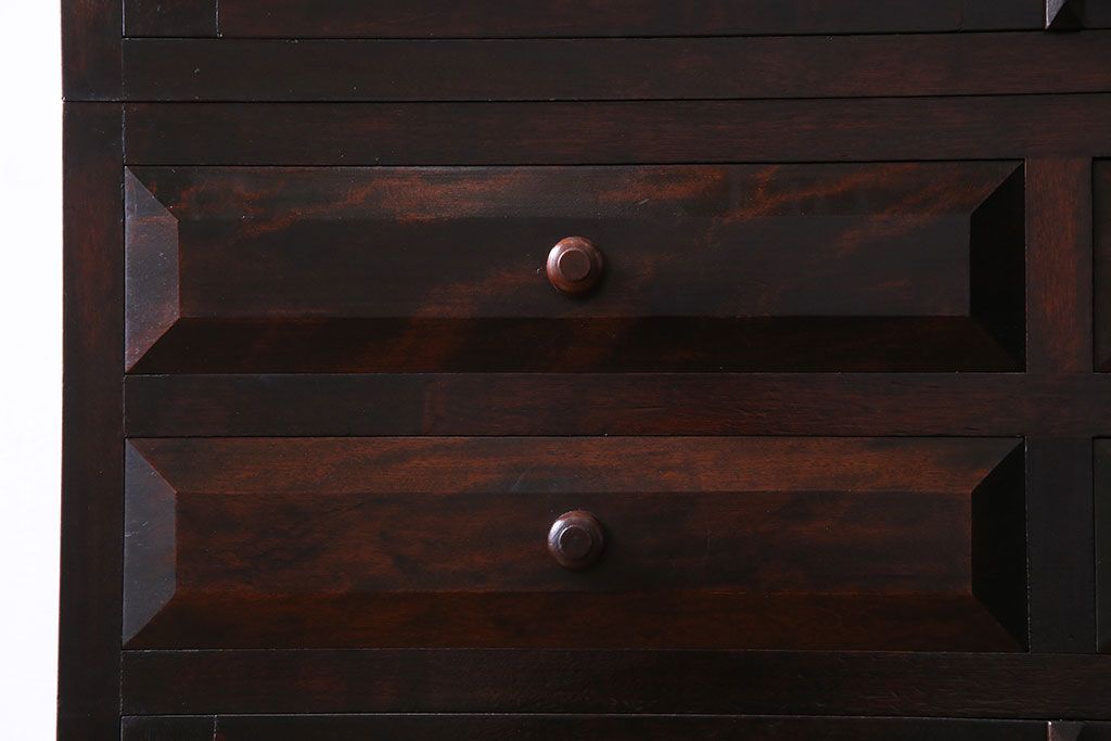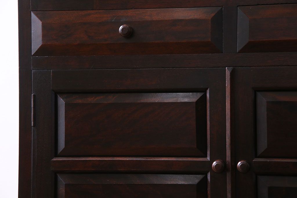 引き出しやガラスの面取りのデザインがシックな雰囲気漂い、