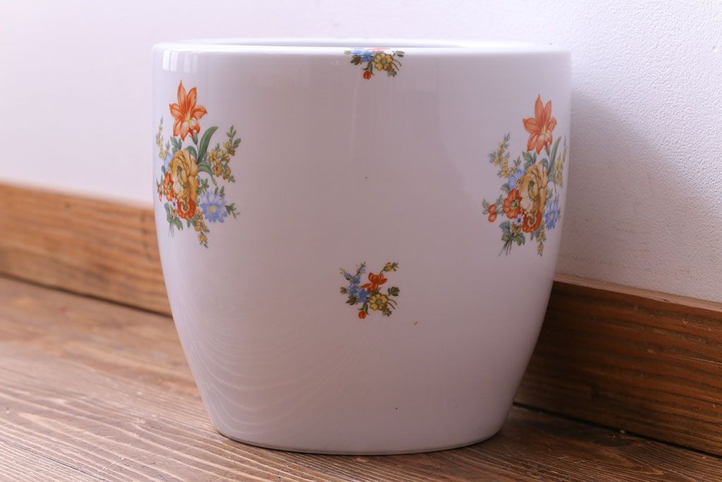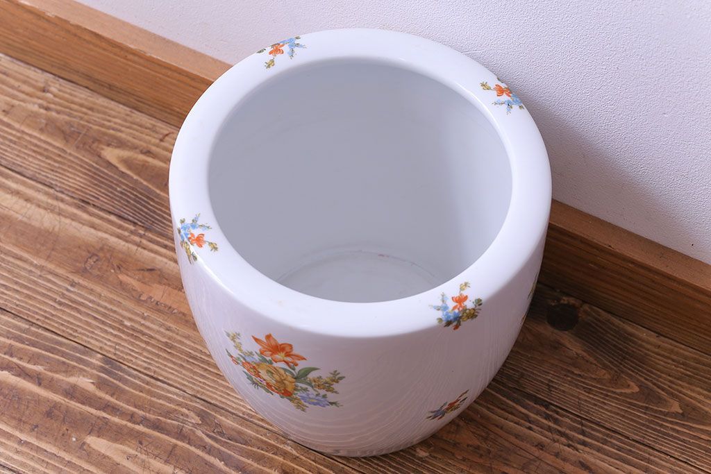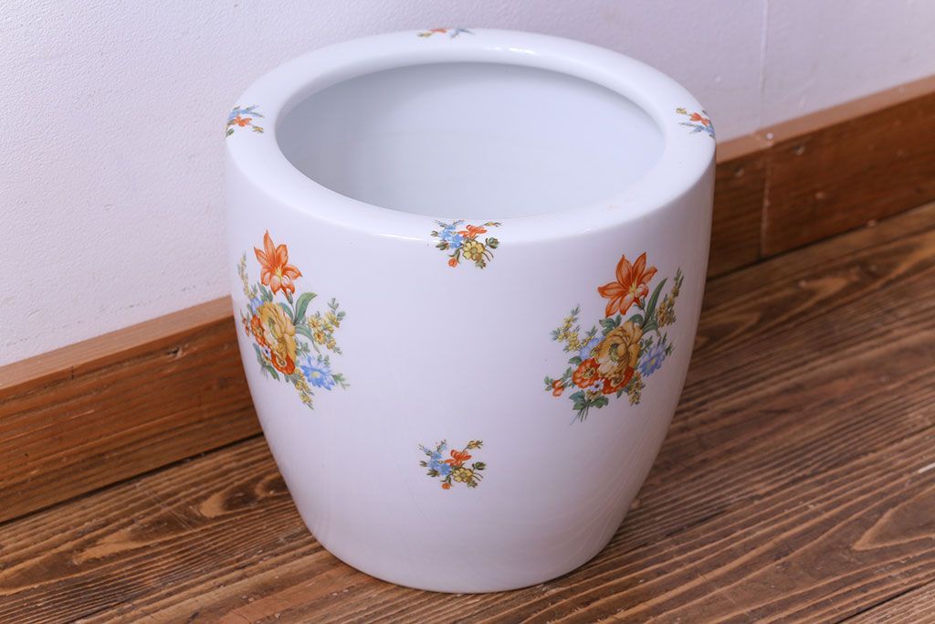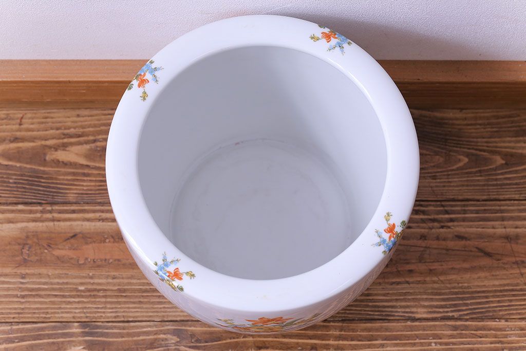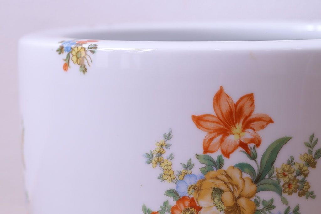 火鉢> 瀬戸火鉢 > アンティーク雑貨 【F様ご成約済み・ご決済用】オールドノリタケ(日陶) 色絵 草花 上品な雰囲気漂う壱型火鉢(手あぶり、鉢カバー)