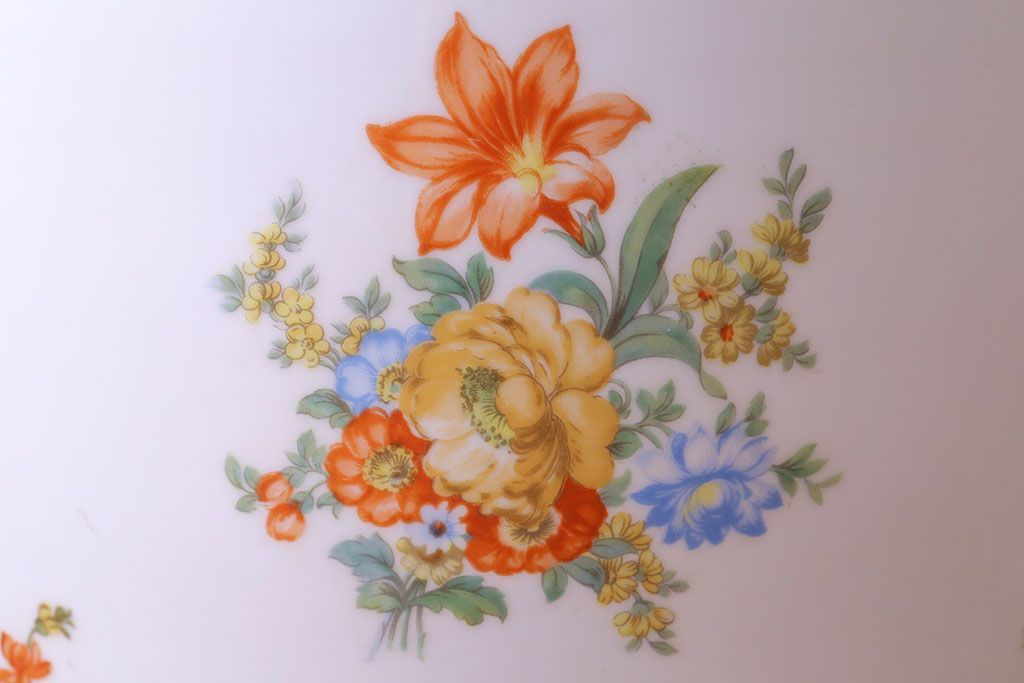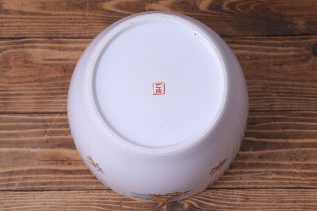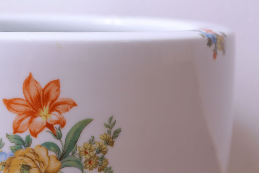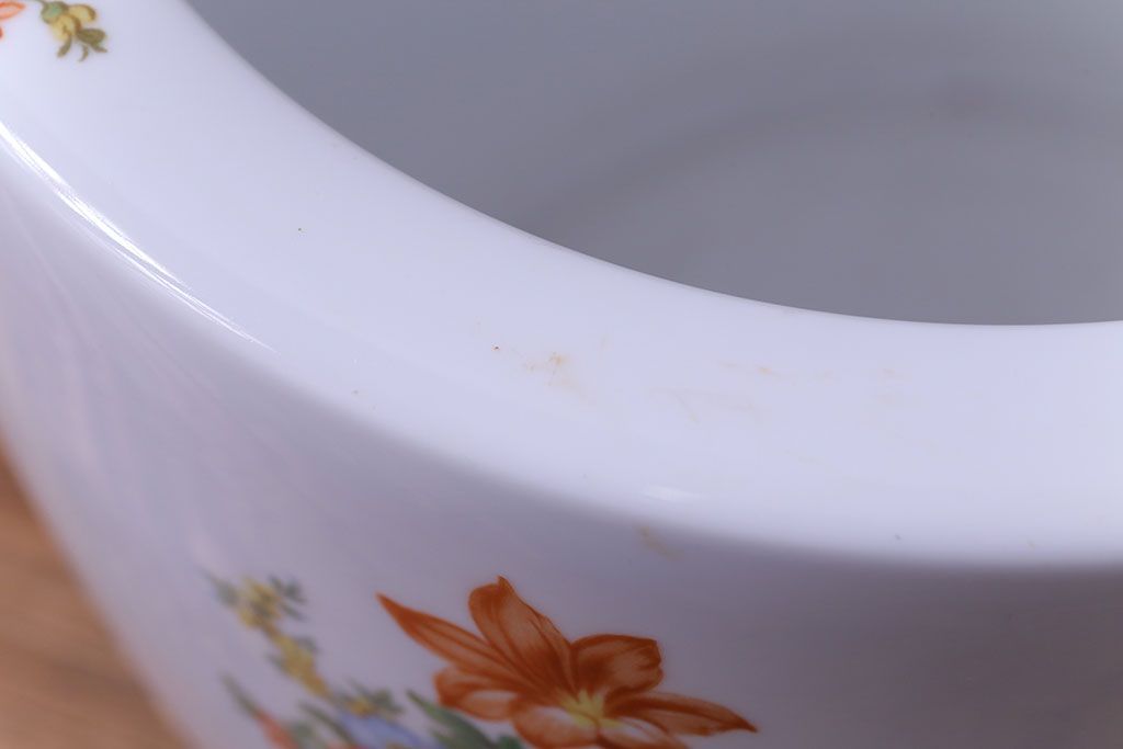 アンティーク雑貨 【F様ご成約済み・ご決済用】オールドノリタケ(日陶) 色絵 草花 上品な雰囲気漂う壱型火鉢(手あぶり、鉢カバー)